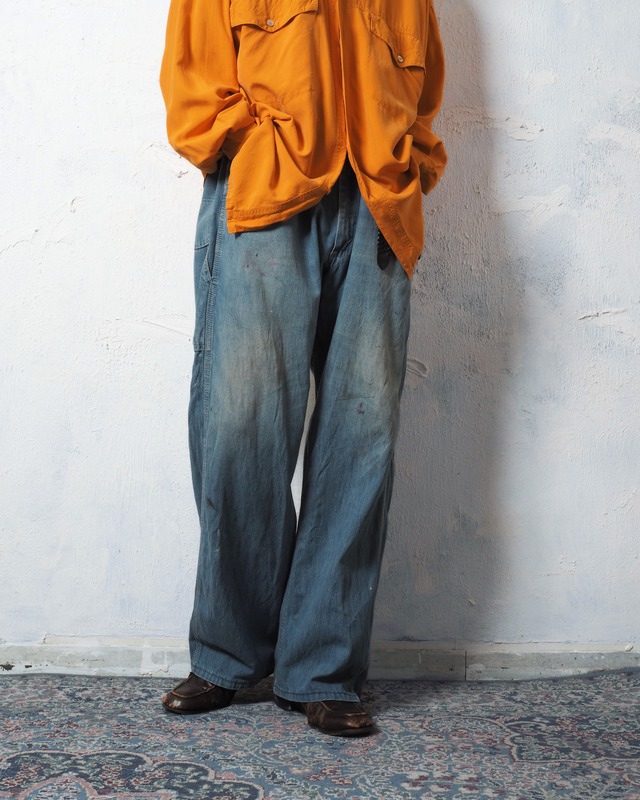 Text 》 年代とアイテム特有の雰囲気を感じるペインターパンツ この雰囲気をサンプリングするブランドが増えている中やはり本家には勝てないところ シルエット、サイズ、ブランド良しの汎用性の高い一本です Size 》 × ※表記なし (着用モデル:171cm) ウエスト平置き:50cm 股上:38cm 股下:78cm 裾幅:25cm ※多少の誤差はご了承下さい Material 》 × ※表記なし Condition 》 B S:新品または未使用(デッドストック) A:使用感がなく、ダメージのない美品 B:使用感ありだが、比較的綺麗な個体 C:着用に支障がない程度の個体(微細なヨゴレ等) D:使用感が強く、大きなダメージや汚れあり ※当店で扱っている商品はユ‐ズドアイテムになり、古着の特性上、わずかな汚れやシミ等による返品、返金、交換は受け付けておりません。 必ず写真と詳細欄をご確認の上ご購入お願いいたします。
