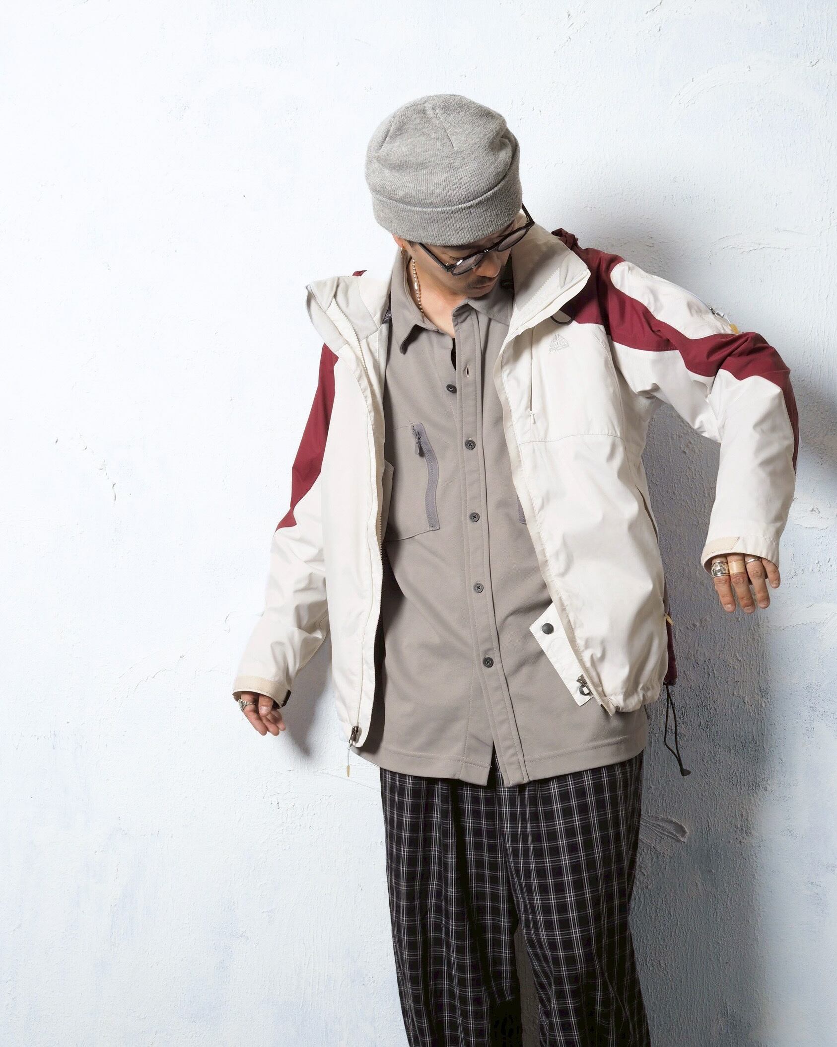 首元や裾のドローコード、ギミックやディティールでその他テックブランドとの違いを見せて来る一着