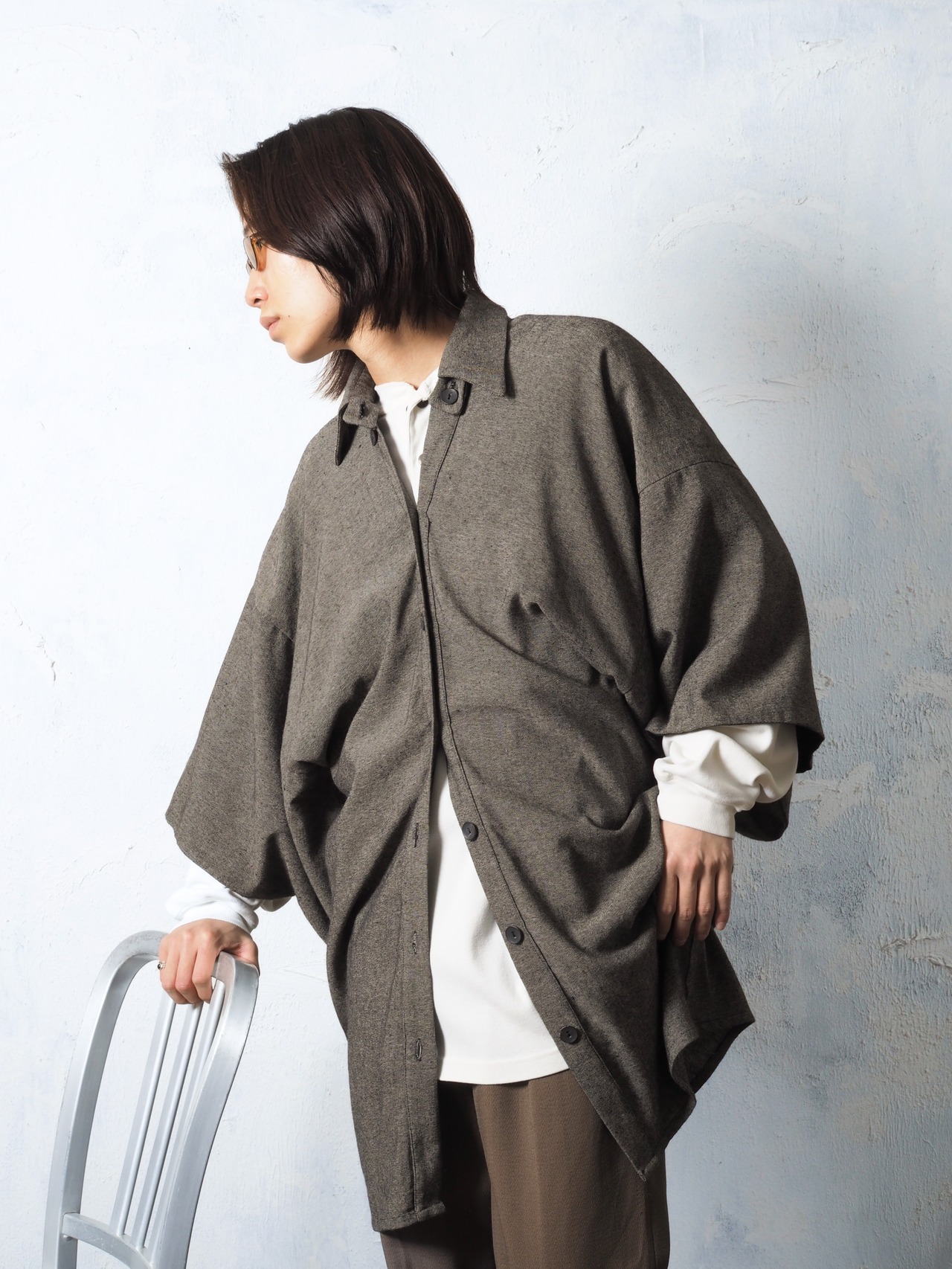 着用時のシルエットはポンチョのようでディティールが面白く、イタリアメイドの一着