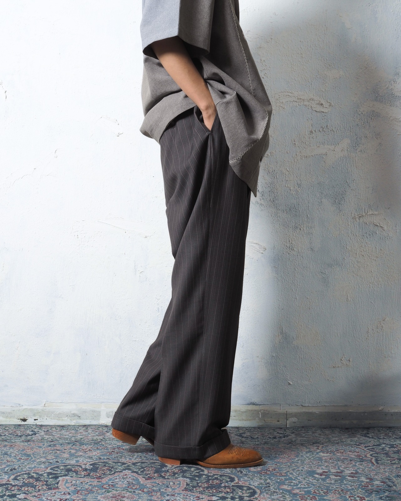 ウエスト大きめ、股上深めのズドーン系スラックス