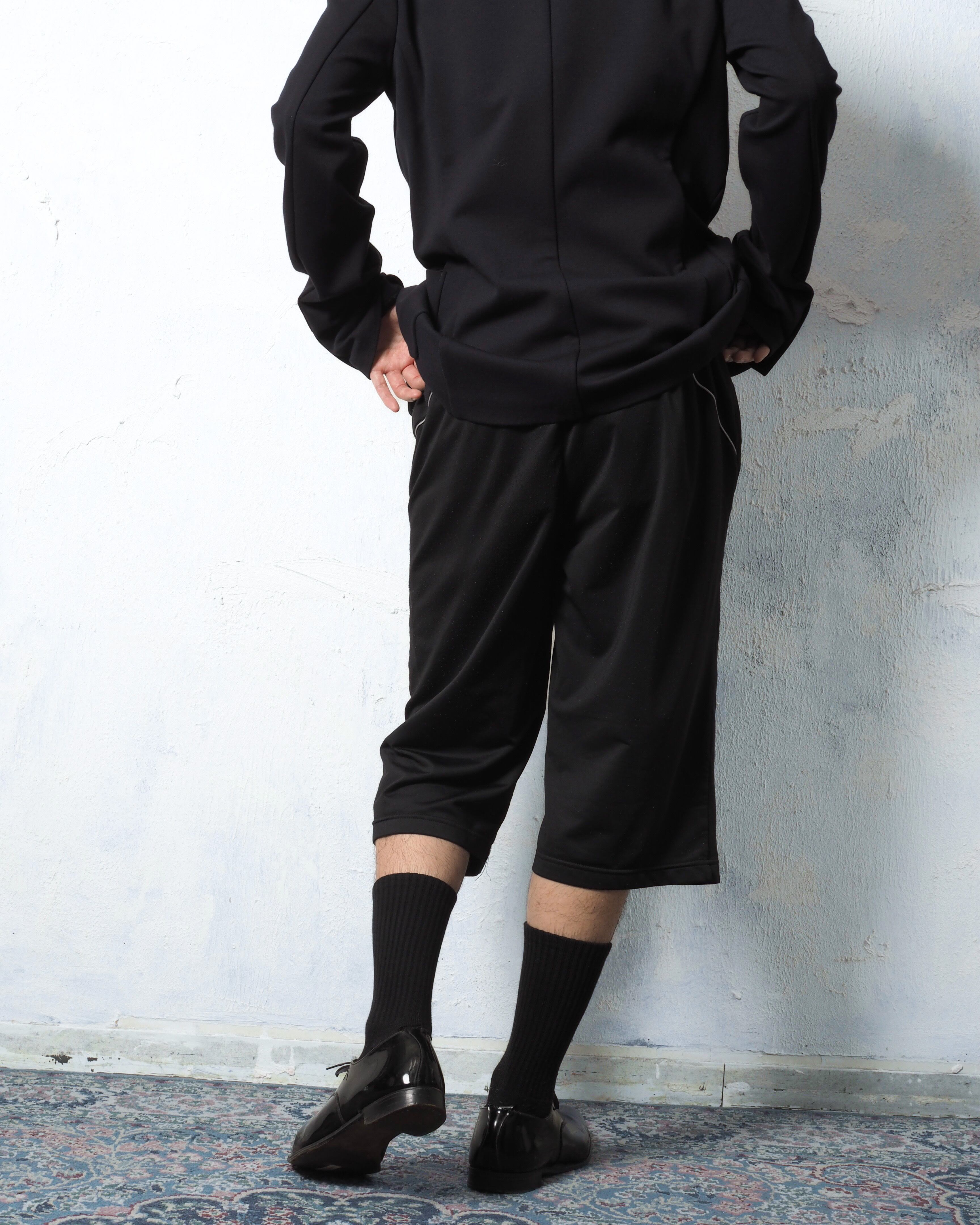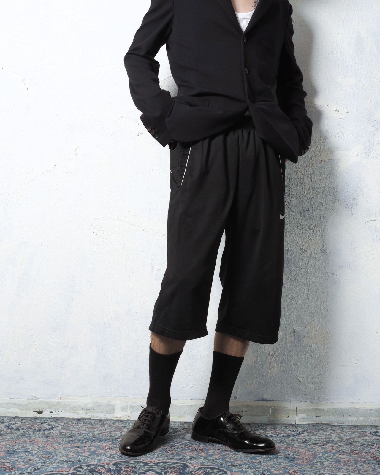 スポーツブランドでショーツ、スウェット素材という抜け感レベルマックスのアイテムをスタイリングに落とし込む提案