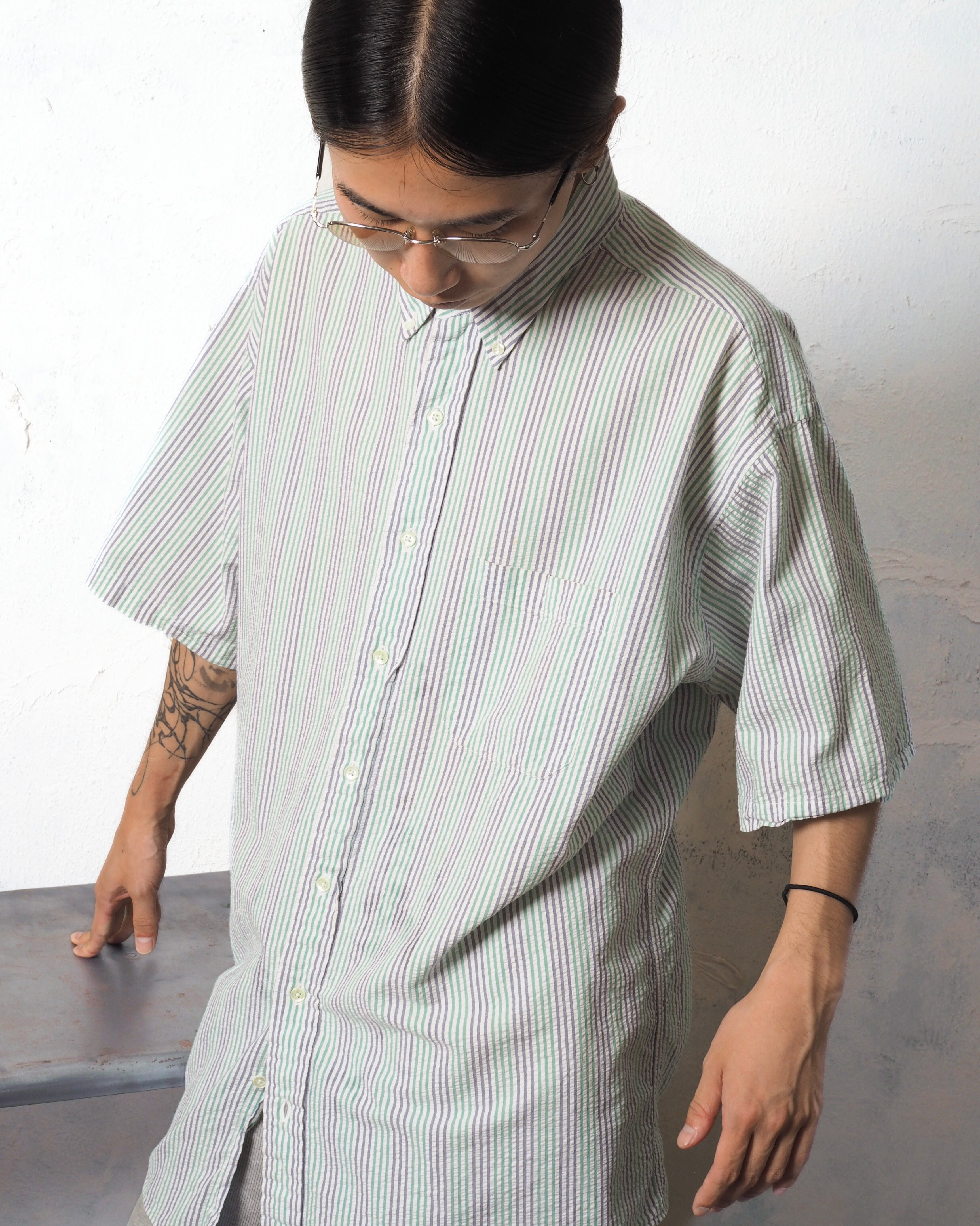 XLというサイズ感でのご用意で、ナードな印象のあるボタンダウンのアイテムを敢えてのサイズ感でチョイスすることによりいつもとは違った見え方がするかと