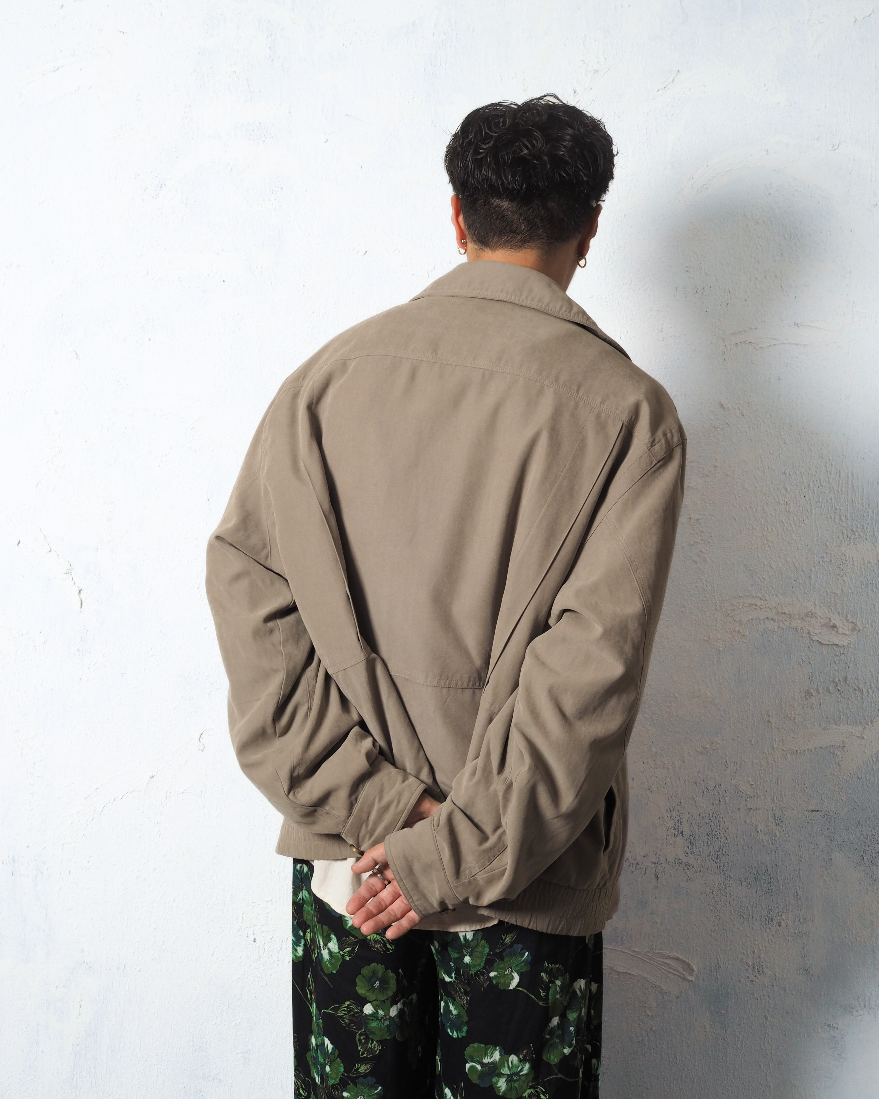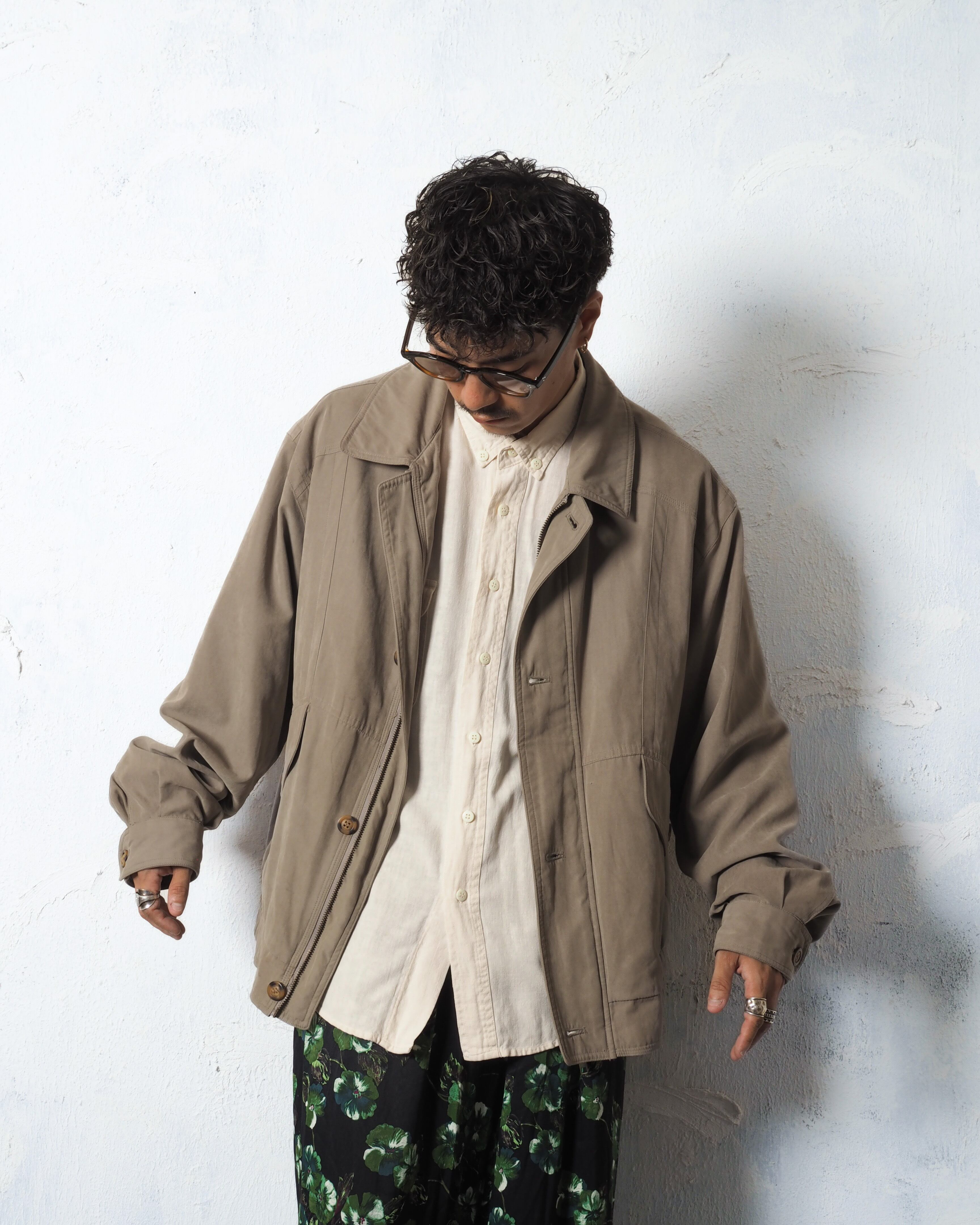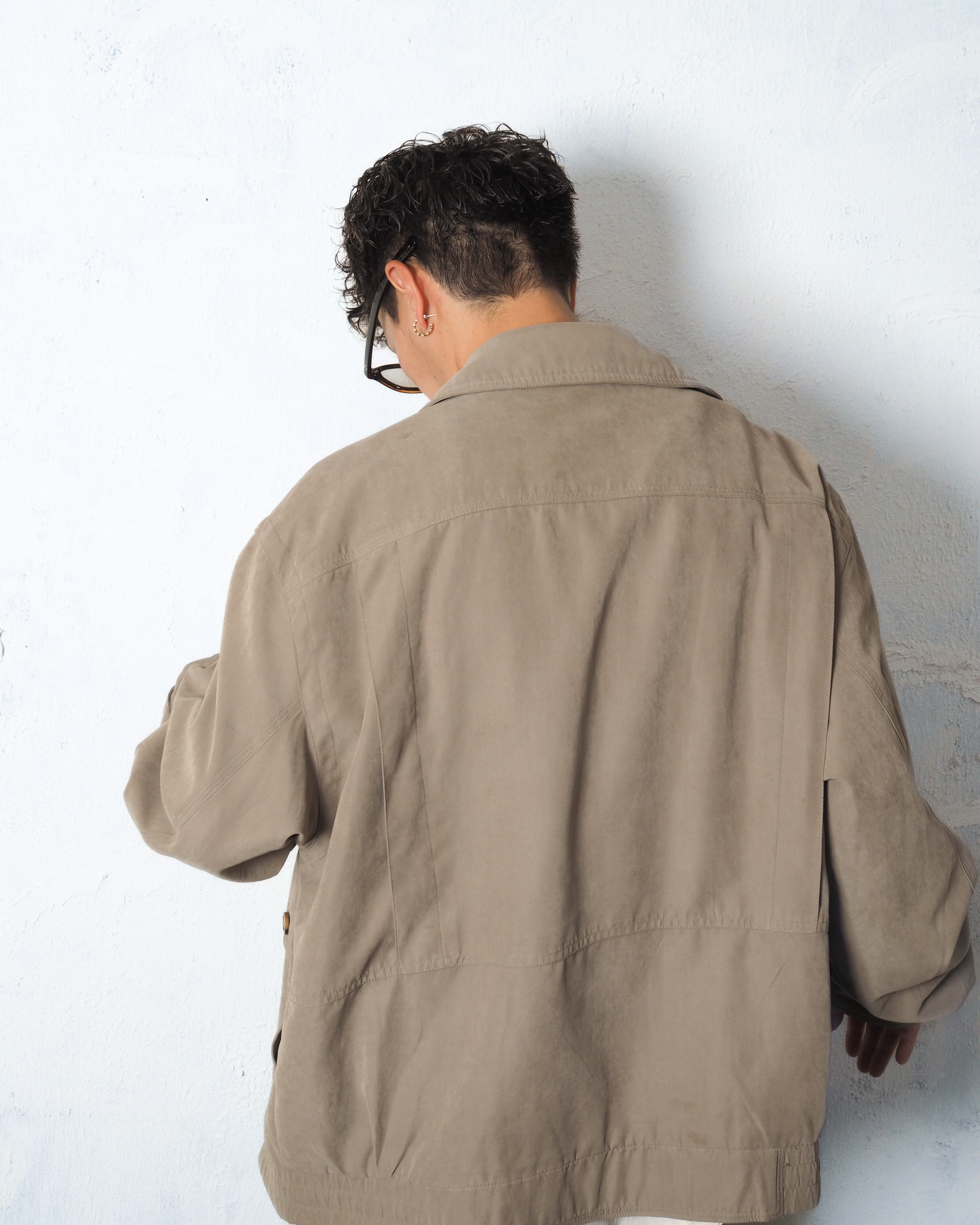 ギャバジン織の滑らかな素材感で大ぶりのフラップ付きしたポケット+横からのハンドウォーマーというフィールドジャケットディティール