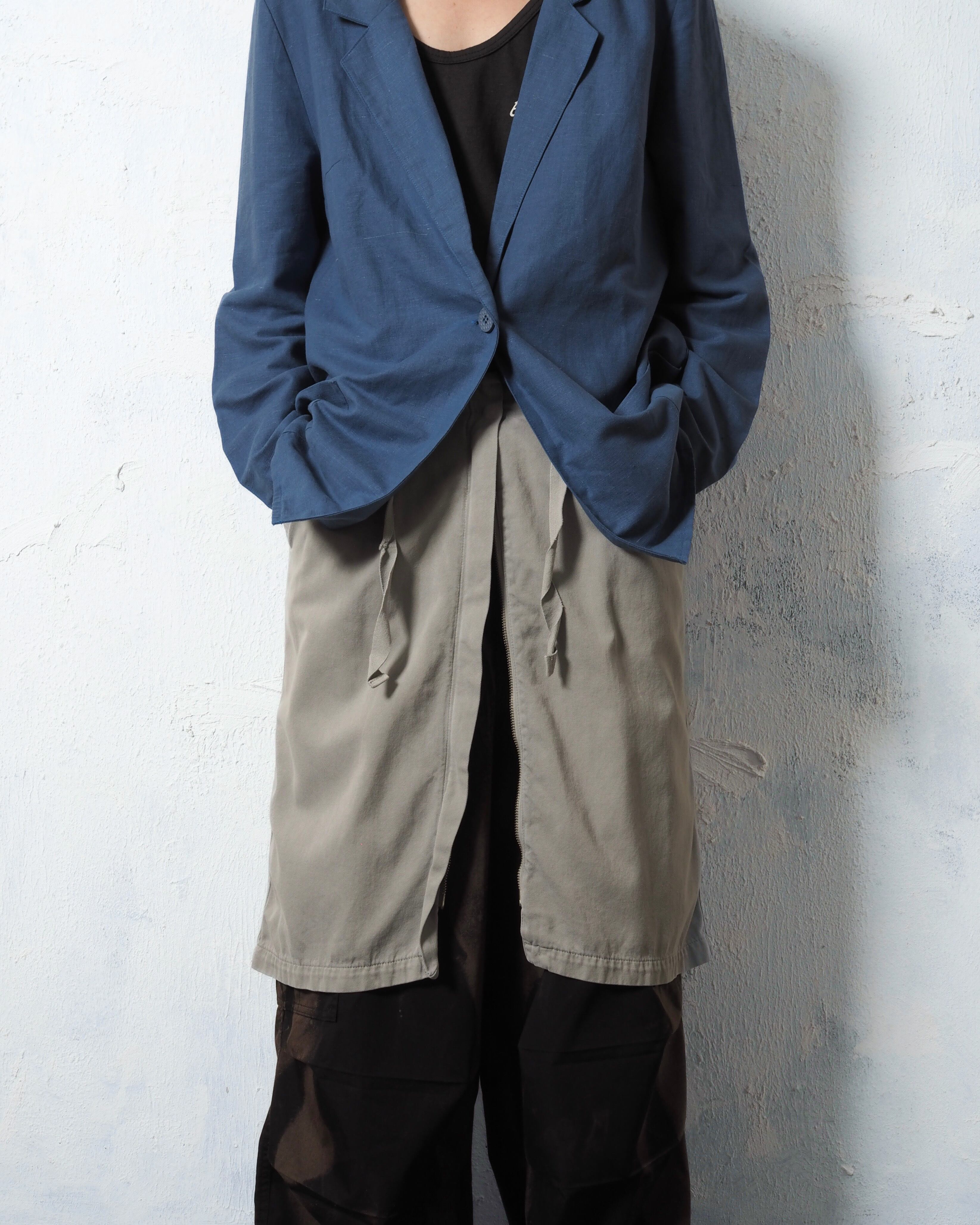 ベルトループに紐が通っており取り外し可能、フロントのダブルジップで変えられるシルエット、カラーリングやディティールはy2k感がありながらも流石マルジェラって感じで、スタイリングによっては一気にデザイナーズ味が出る一着