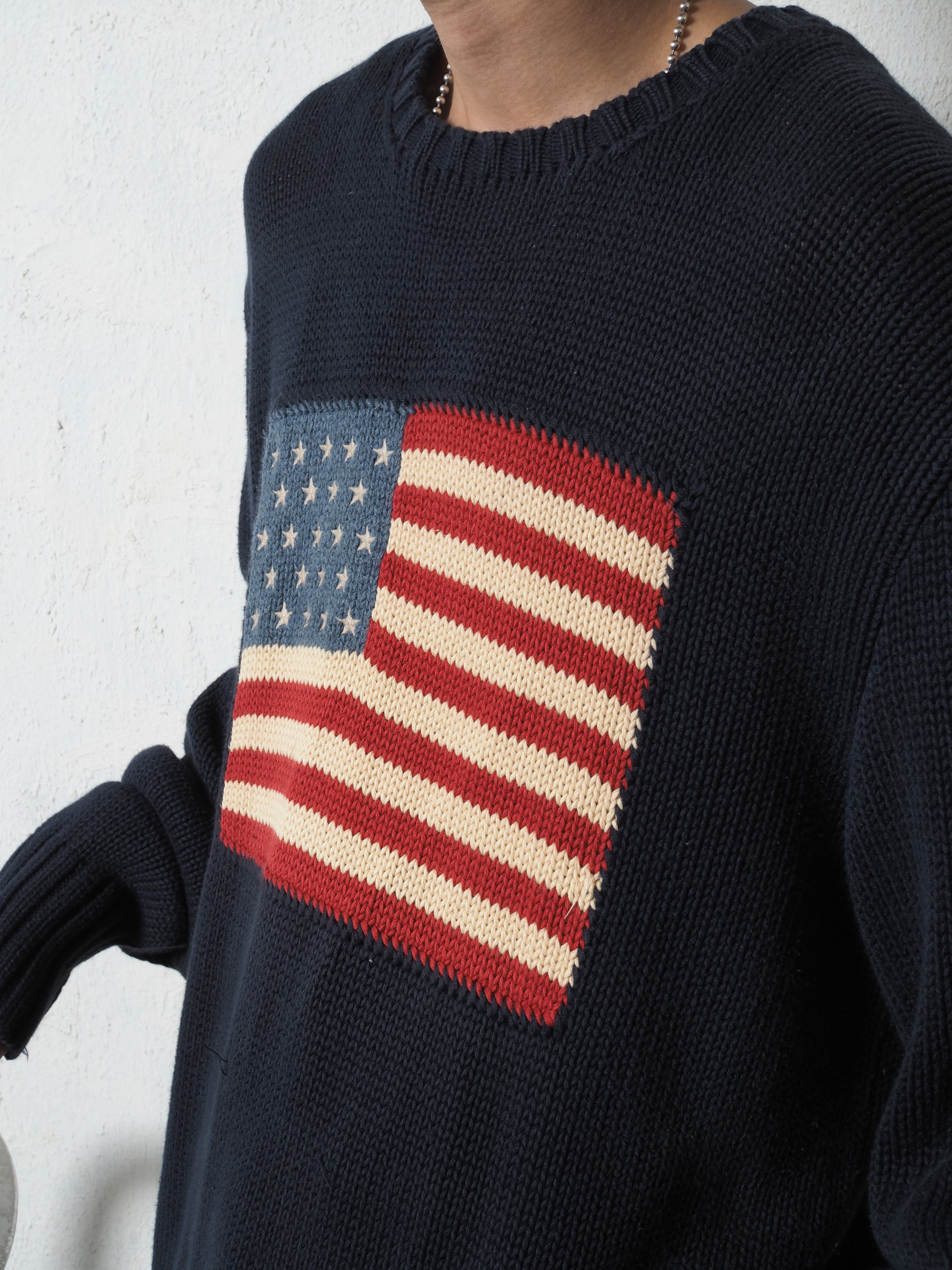 当店ではちょくちょく入荷するラルフ名作である星条旗コットンニット