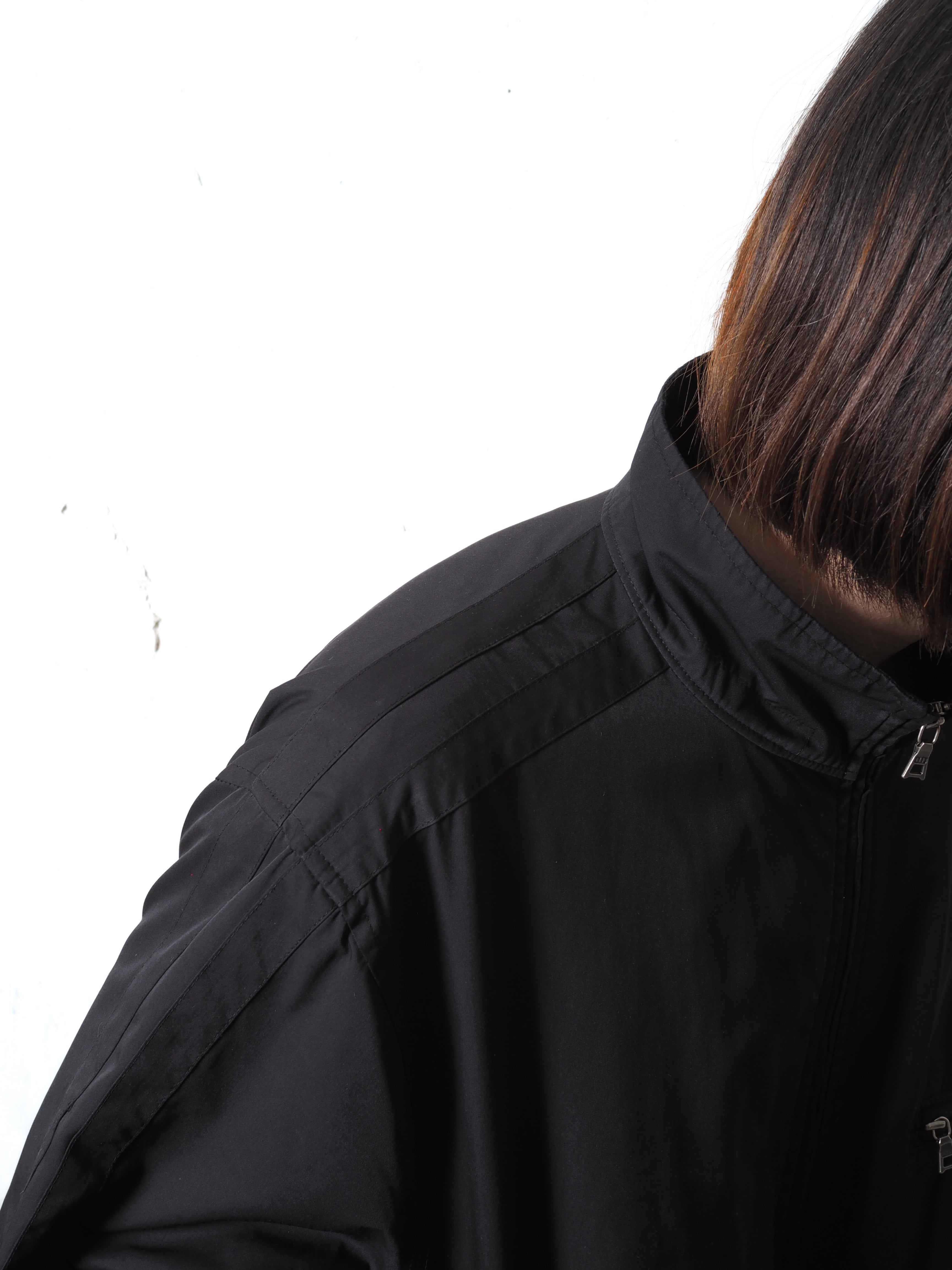 此方も型としてはシングルのライダースジャケットですが、異質なナイロンファブリックに