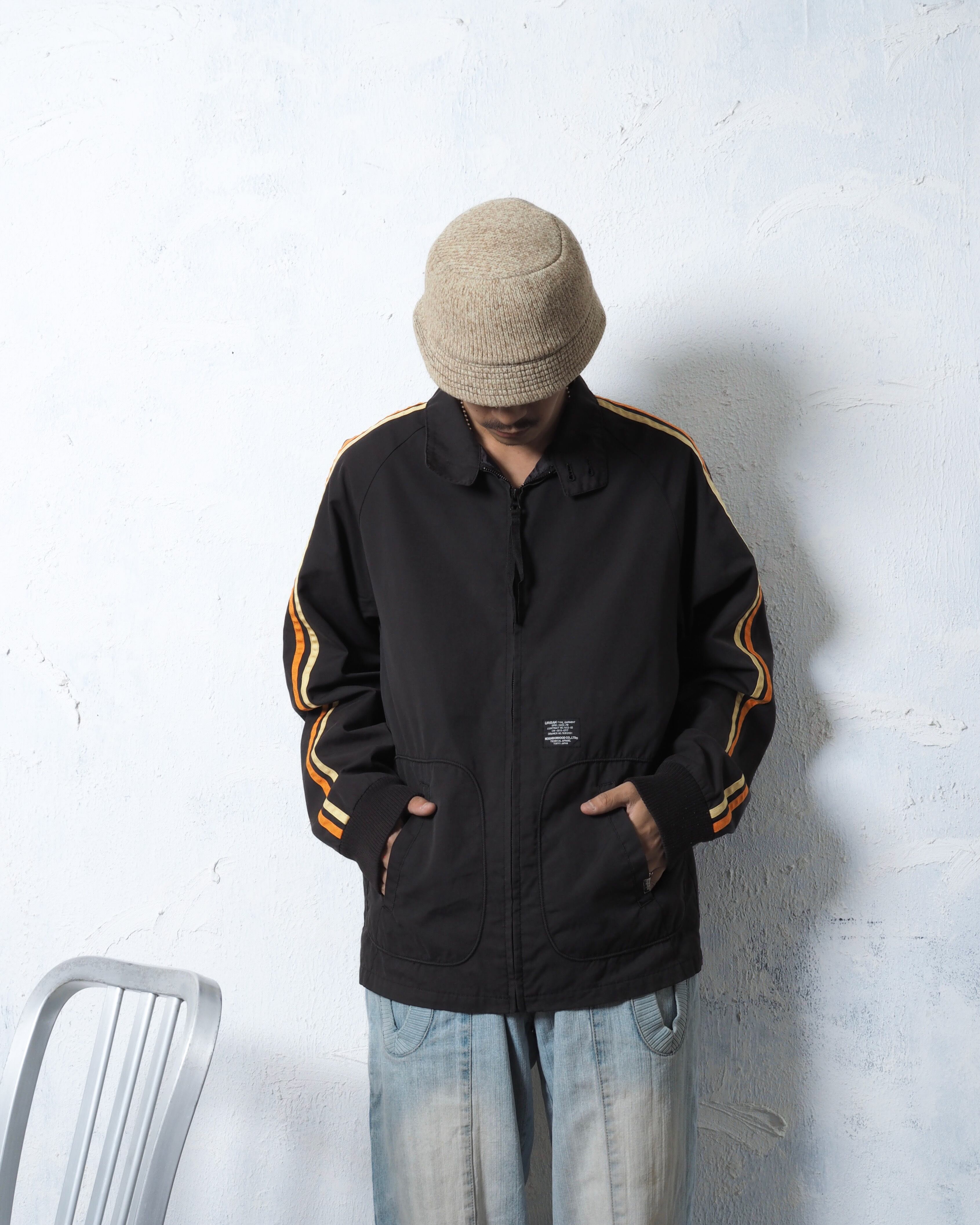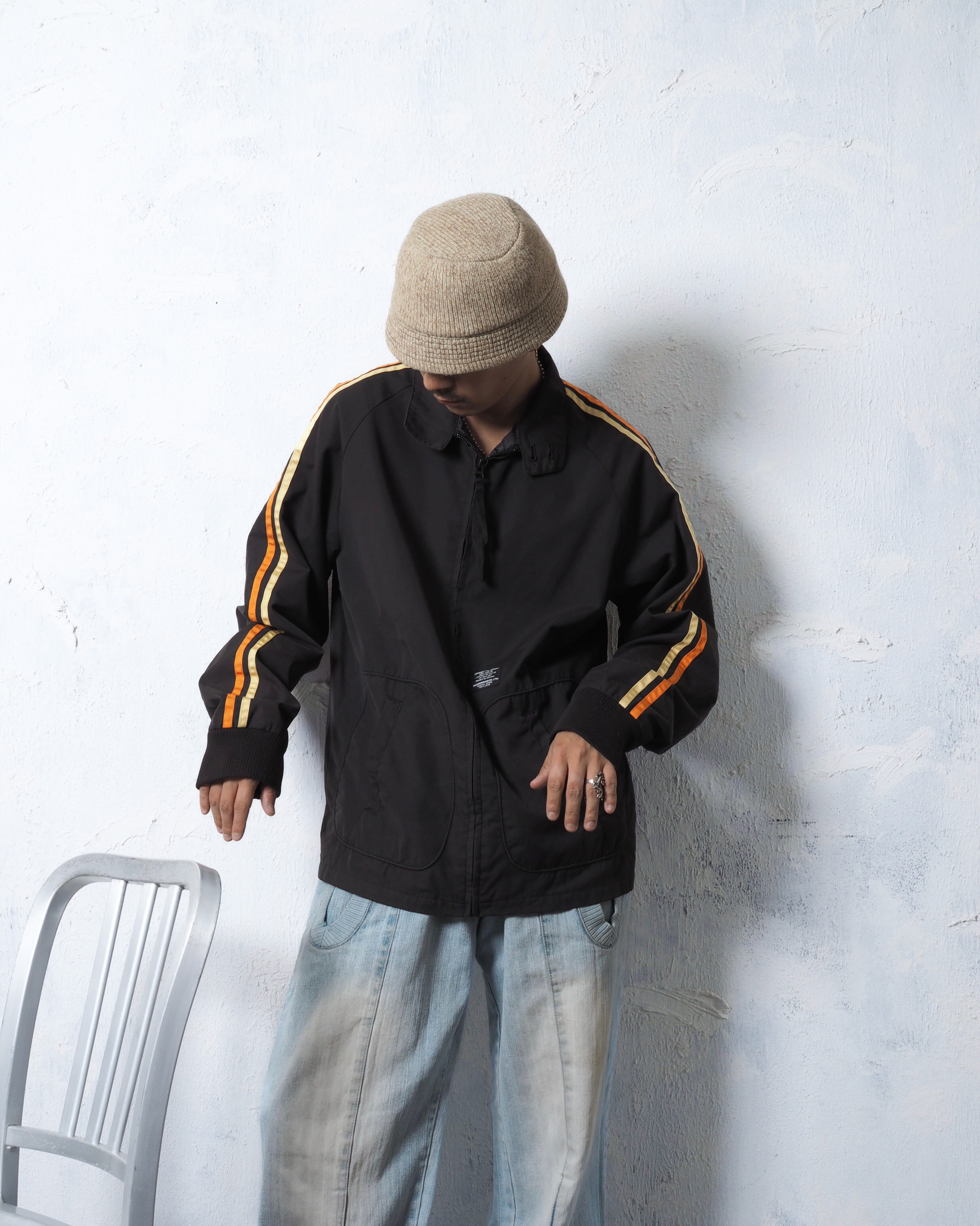 首元にはチンスト、ポケットがまさにのトラズラーディティールで、ブラックボディに差し色2本ライン
