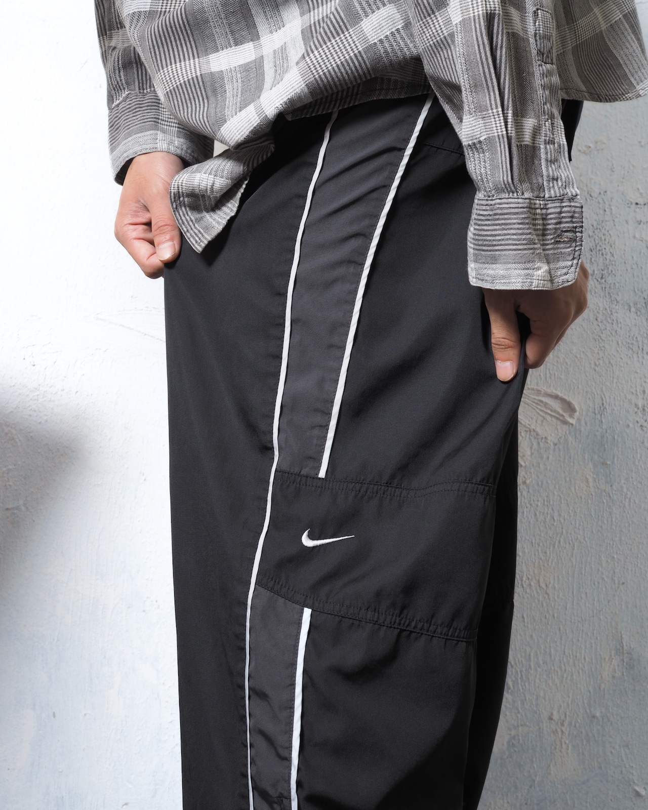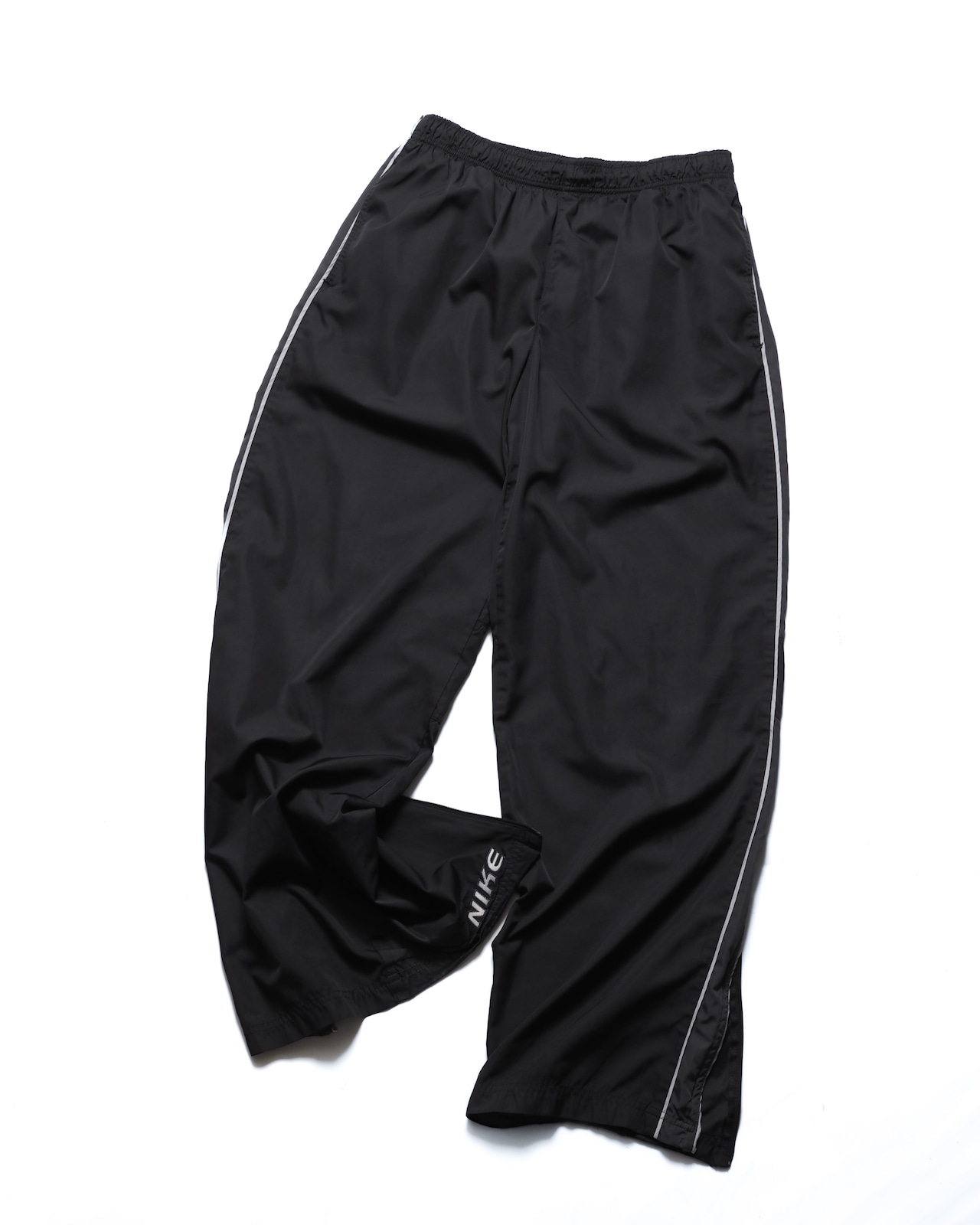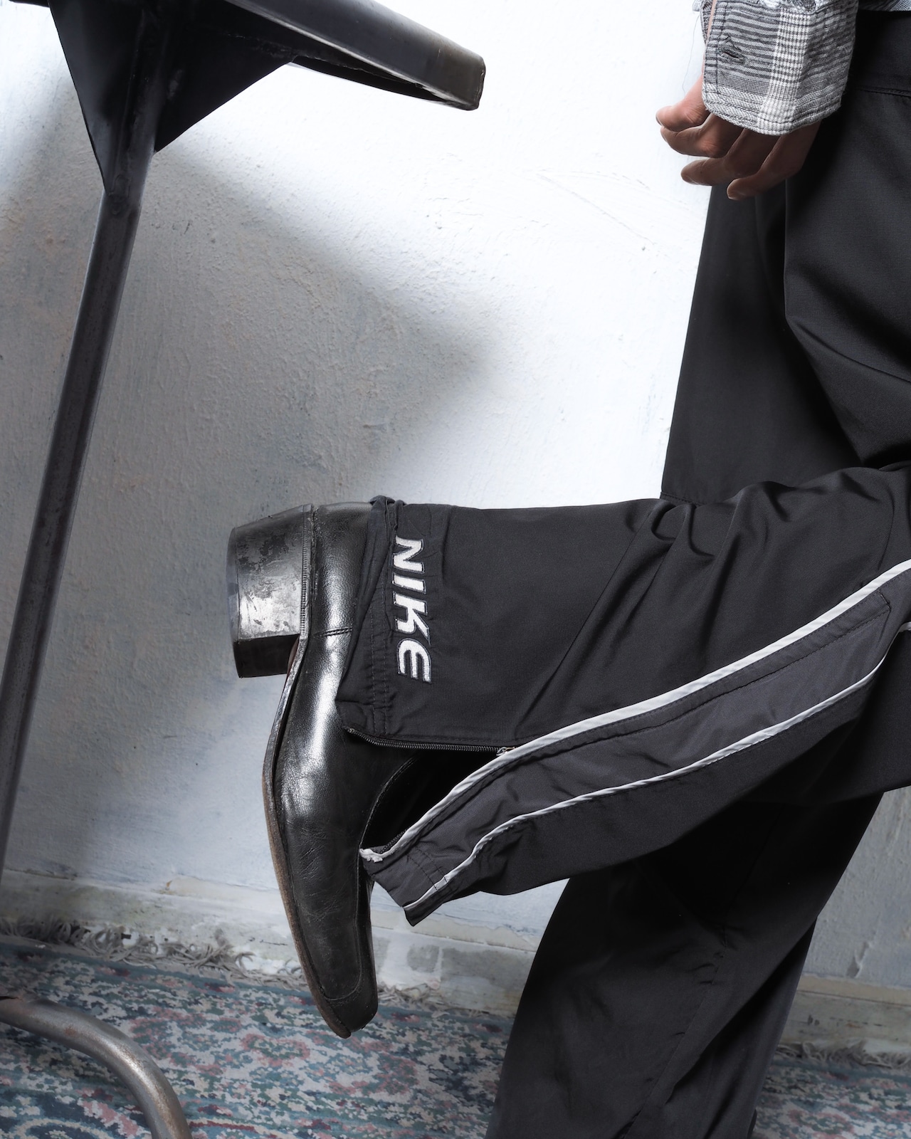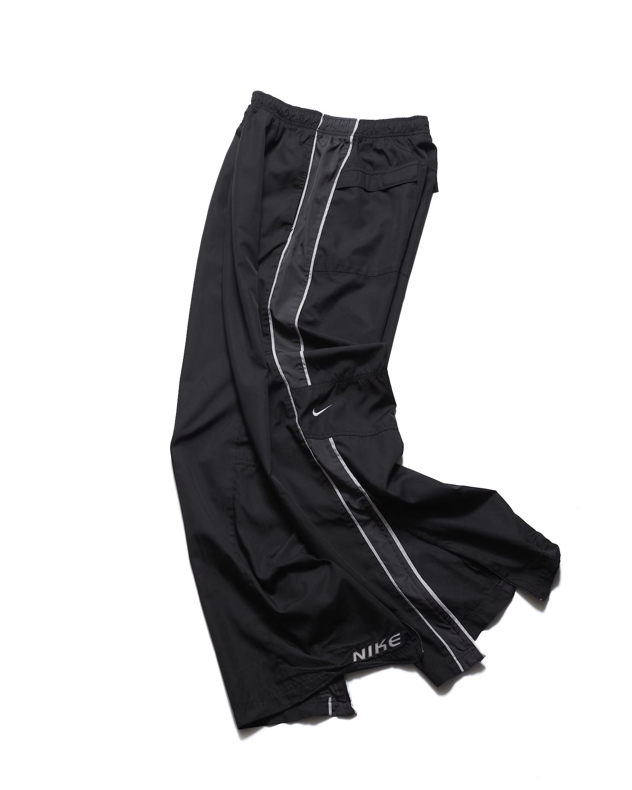 膝や裾のナイキワンポイント刺繍、合わせやすい2トーンでデザインも最低限、裾にはジップが付きシルエット調整可能で様々な楽しみ方ができる一本です