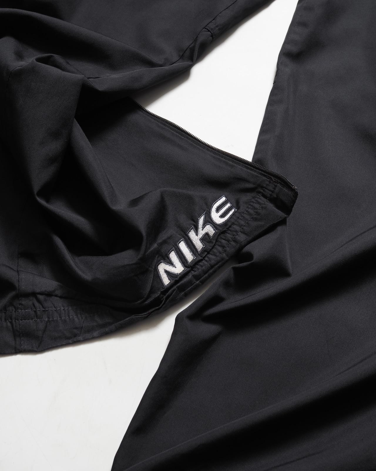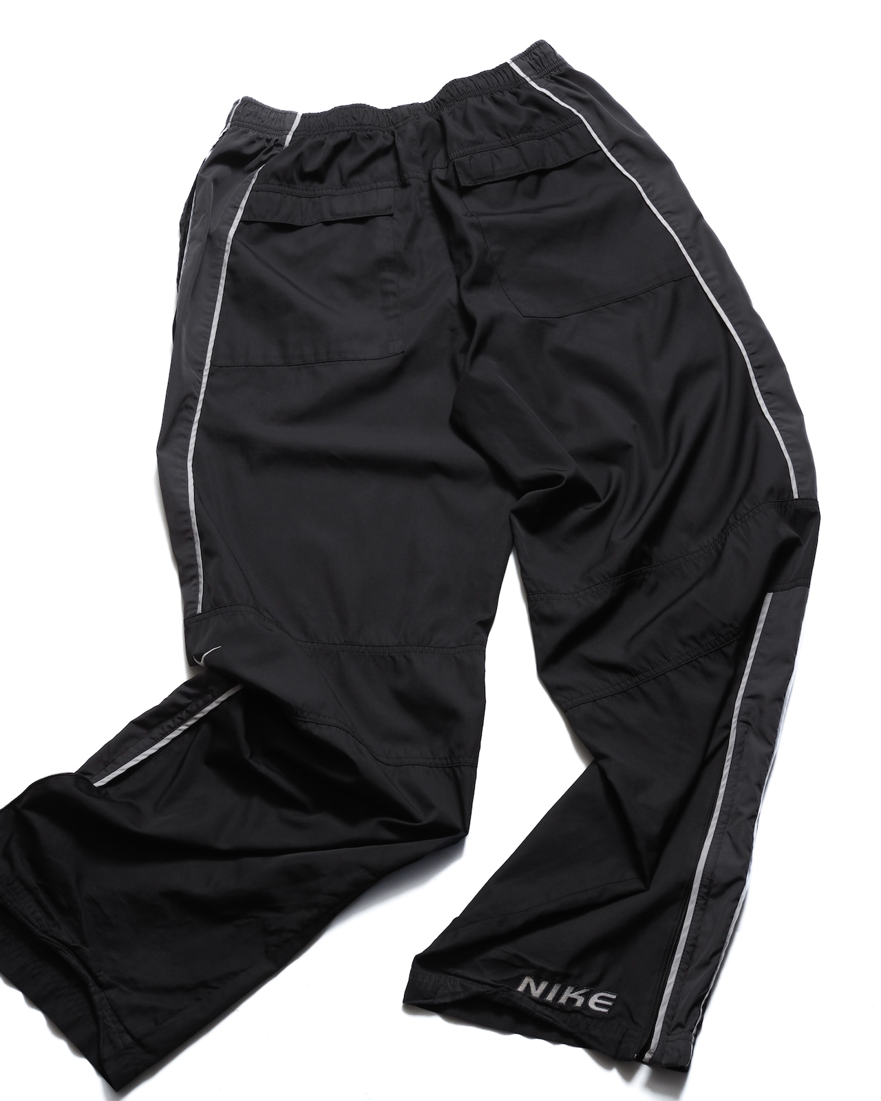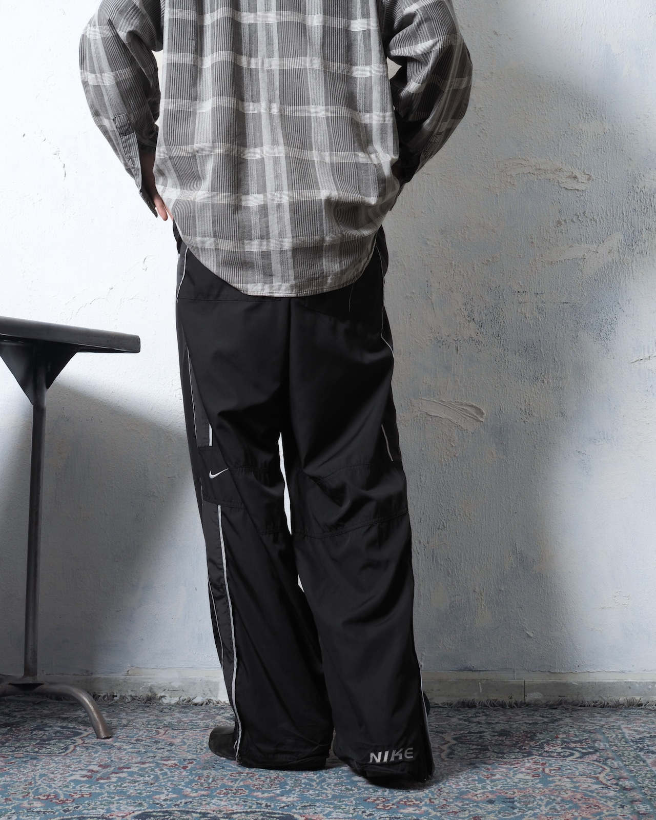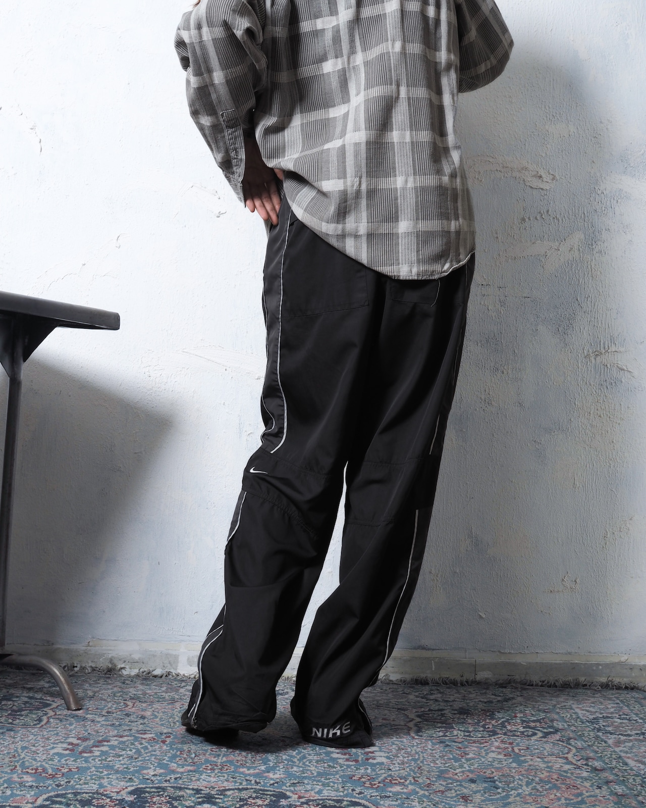 膝や裾のナイキワンポイント刺繍、合わせやすい2トーンでデザインも最低限、裾にはジップが付きシルエット調整可能で様々な楽しみ方ができる一本です