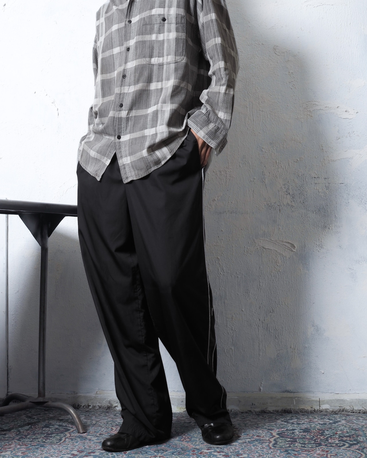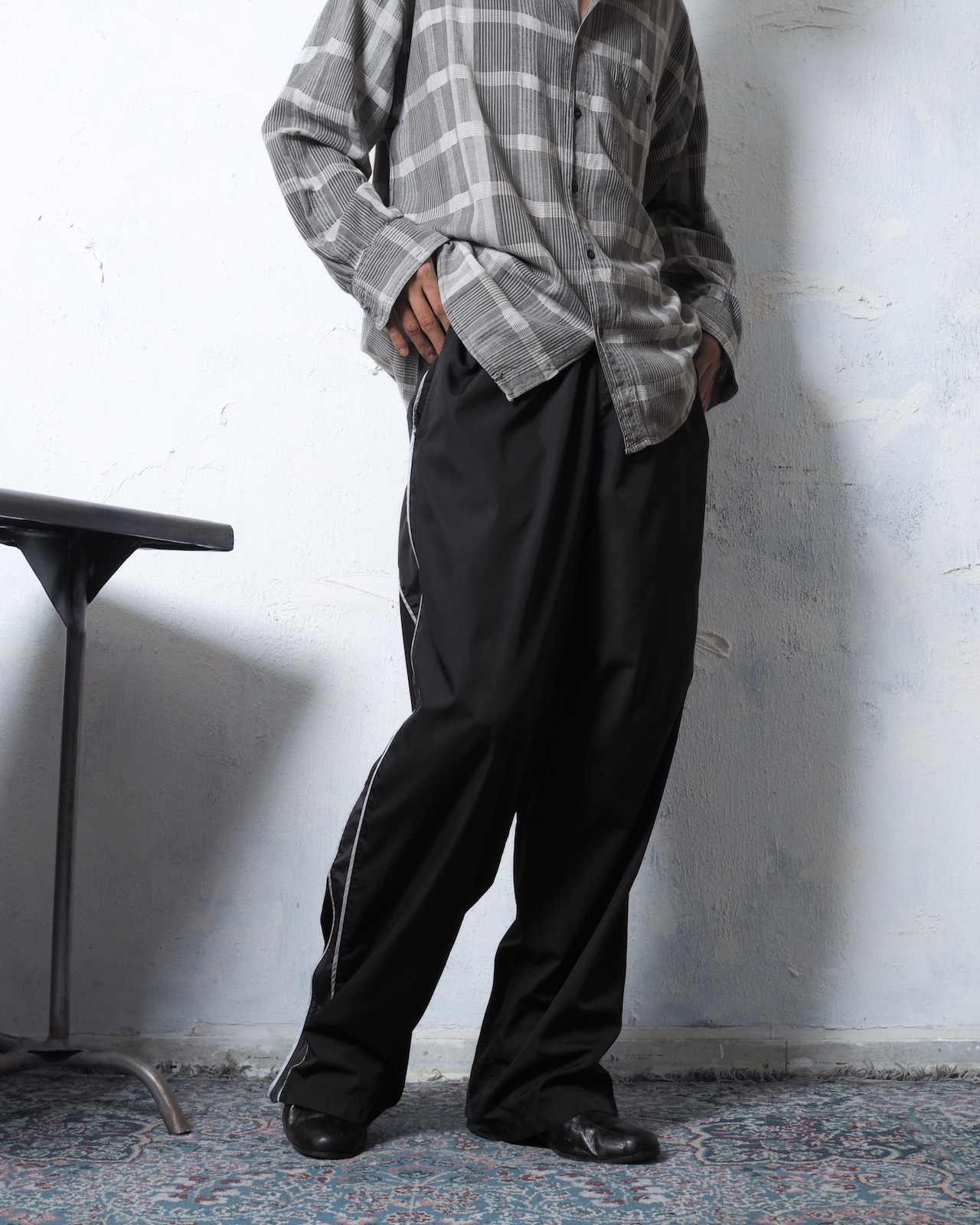 ナイロンですがそこまでギアが効いてなくファッショナブルに着こなせるナイロントラックパンツ