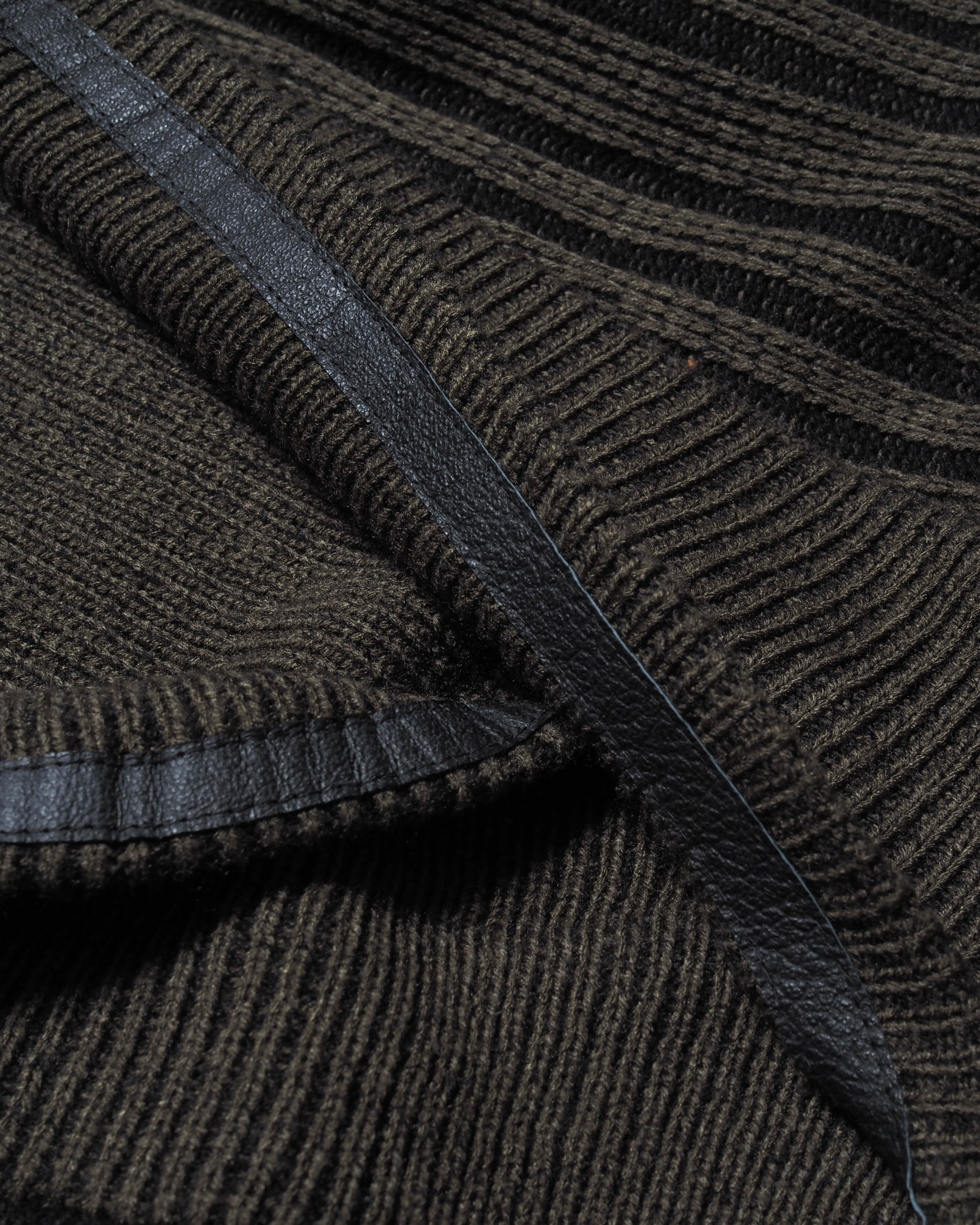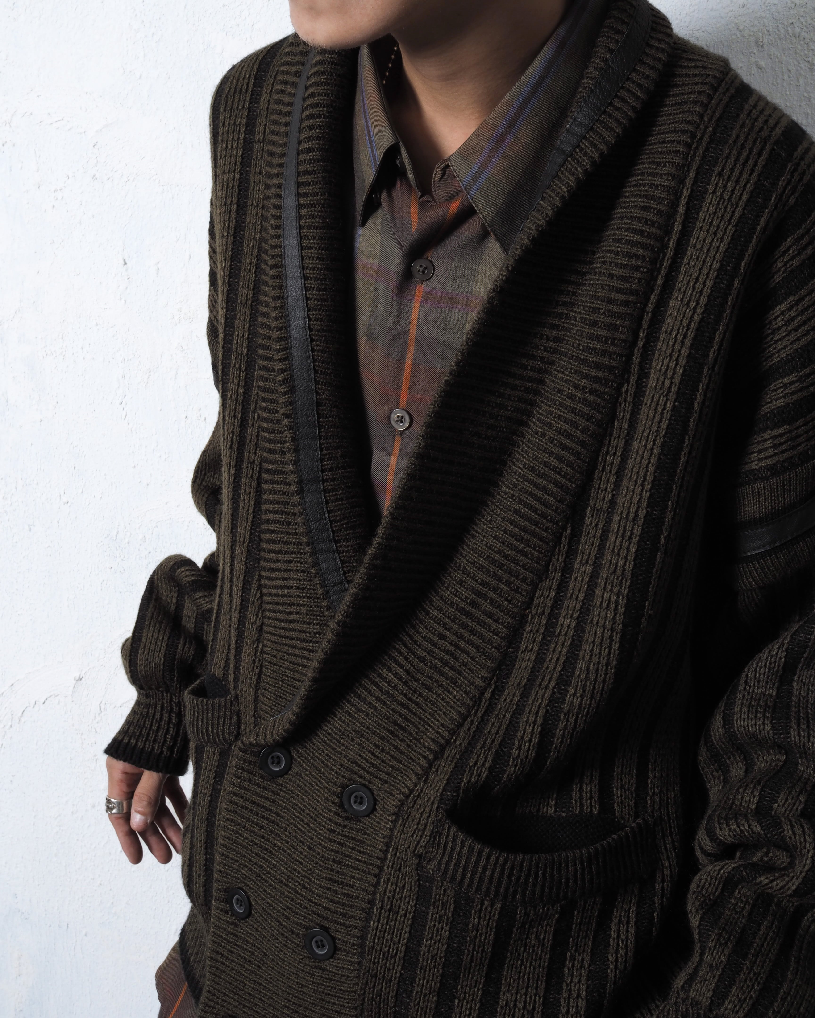 かなりデザイン性の効いている1着ですが、配色がカーキ×ブラックでこのデザイン性とのバランス感がかなりグッドなカーディガンです