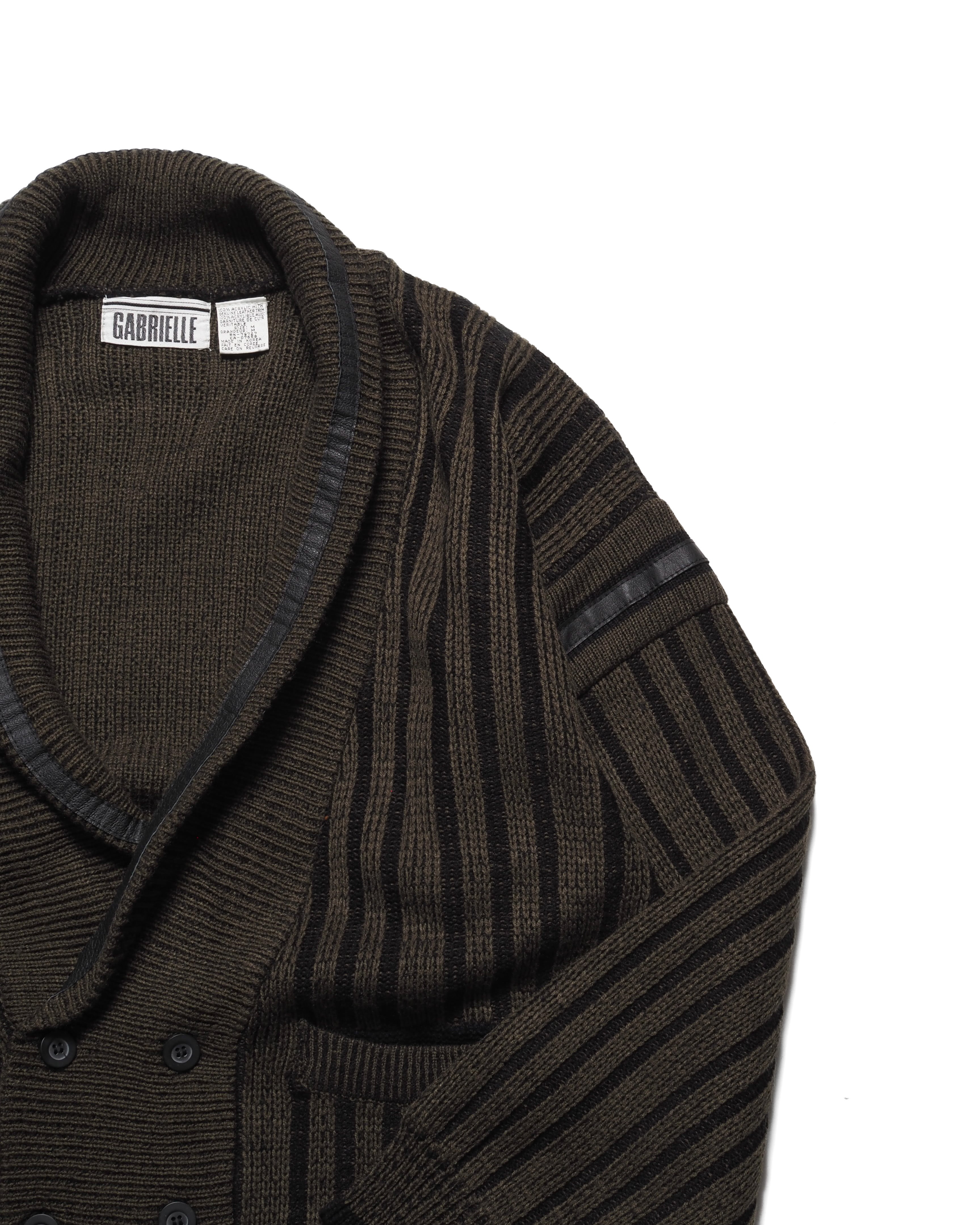 Gabrielle Leather Switching Shawl Collar Double Cardigan