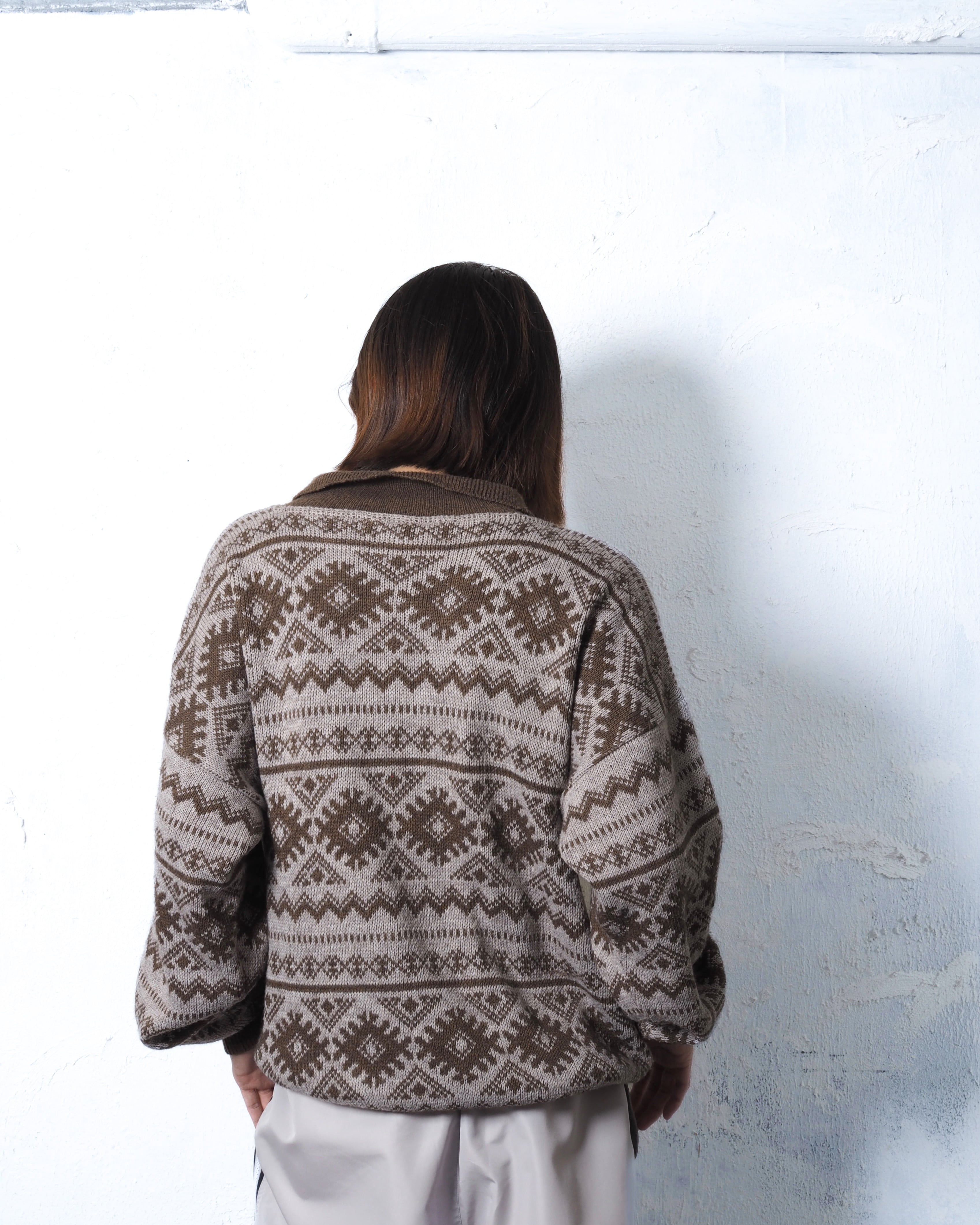 ノルディク柄のハーフジップニット