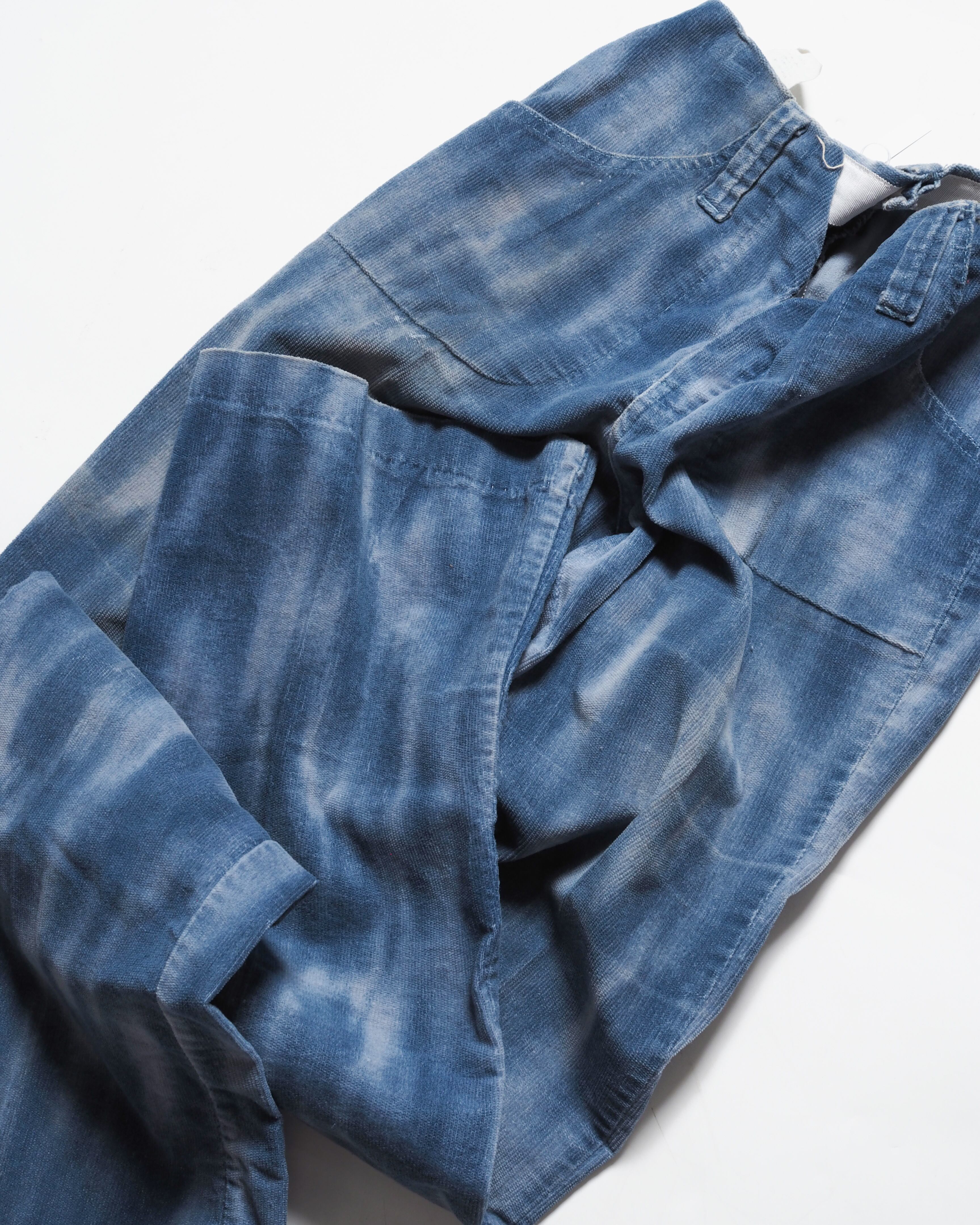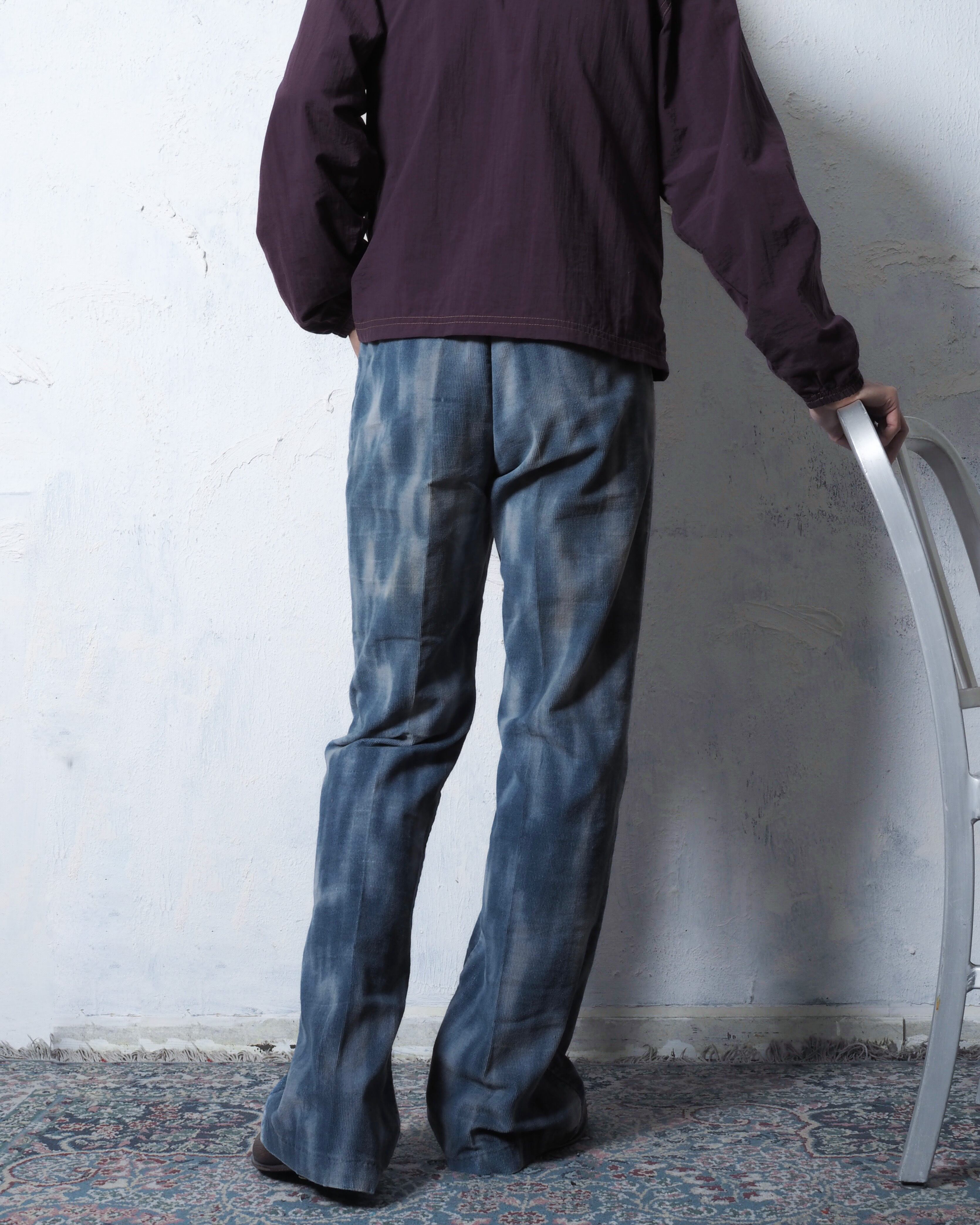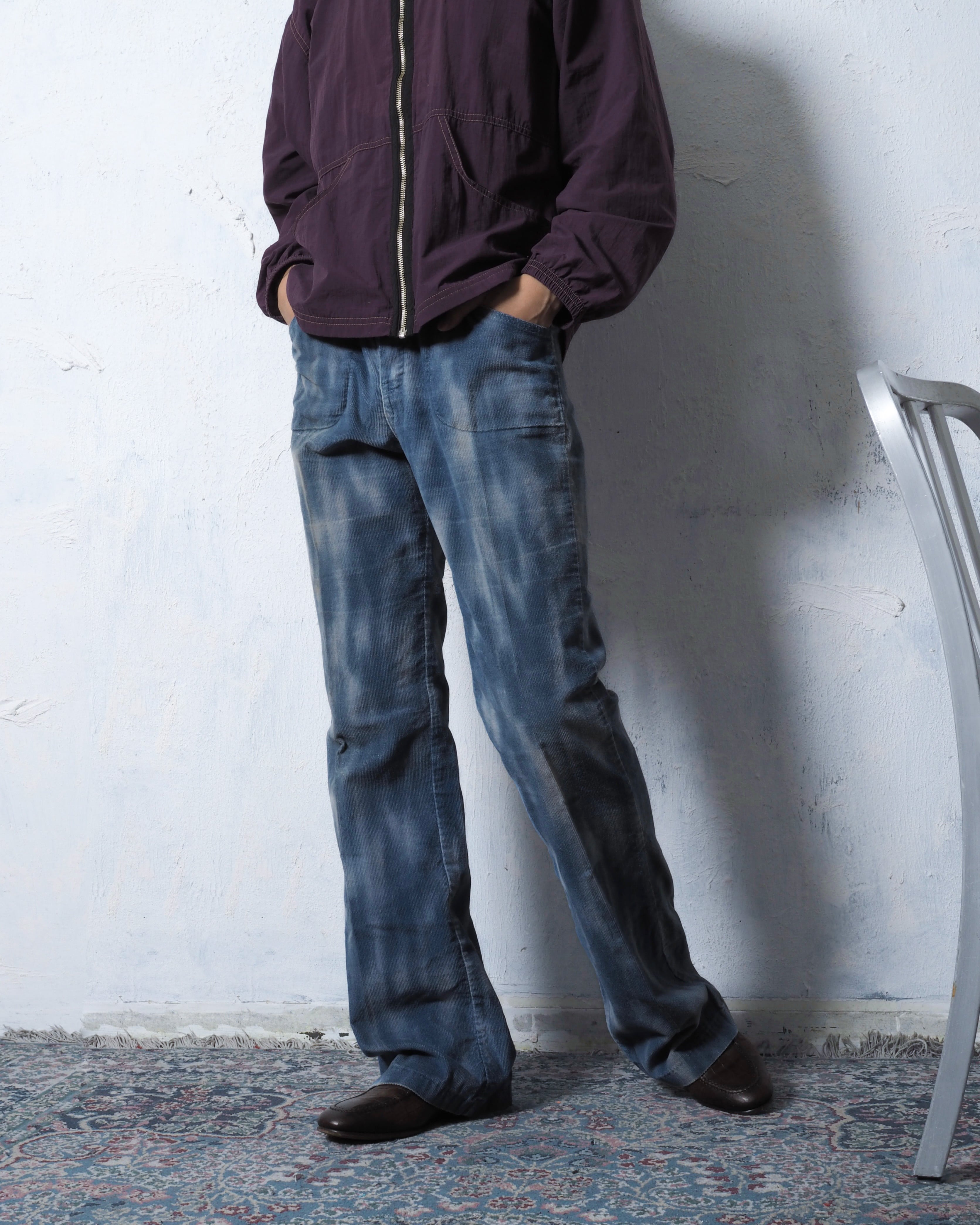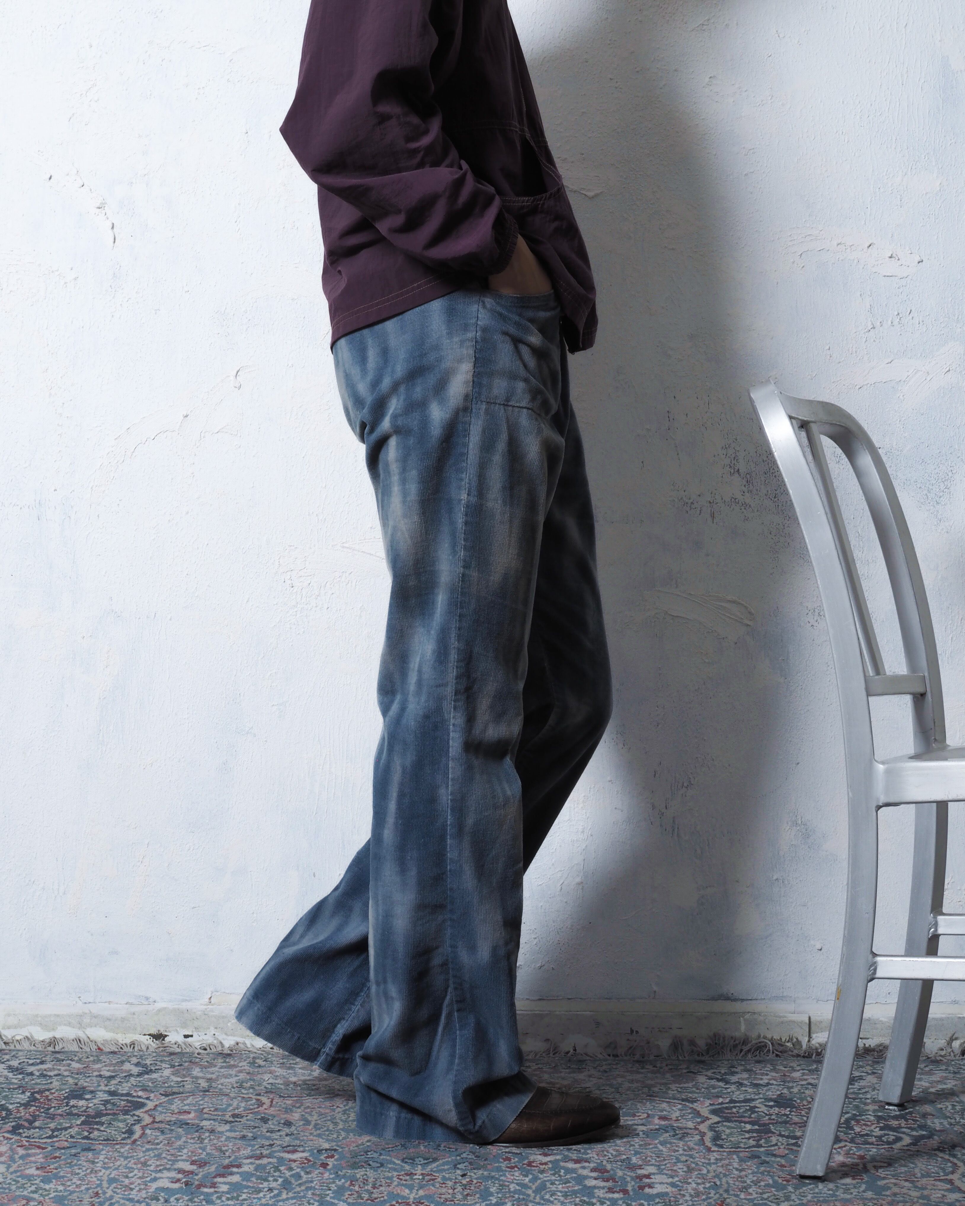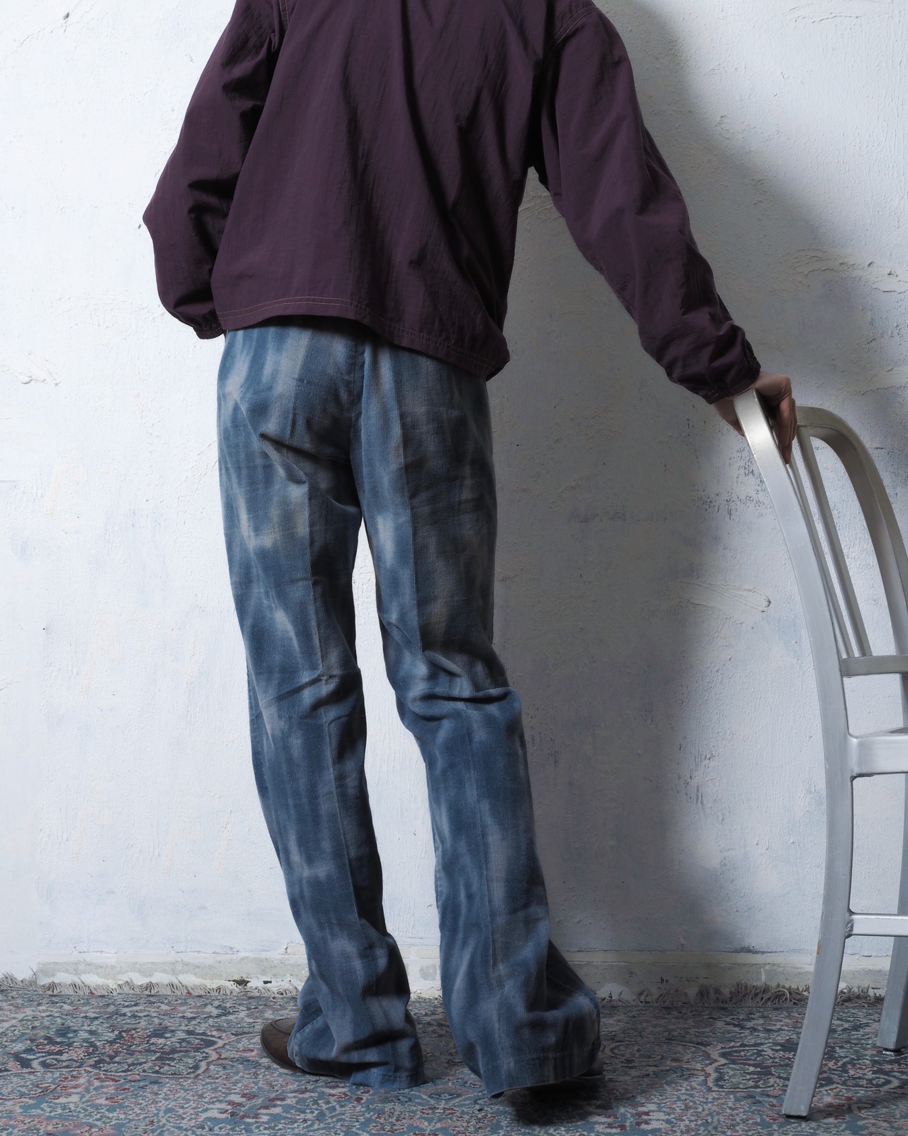 起毛の効いた素材感にプラス要素で働いているブリーチデザイン、70年代を感じるディテールとシルエット
