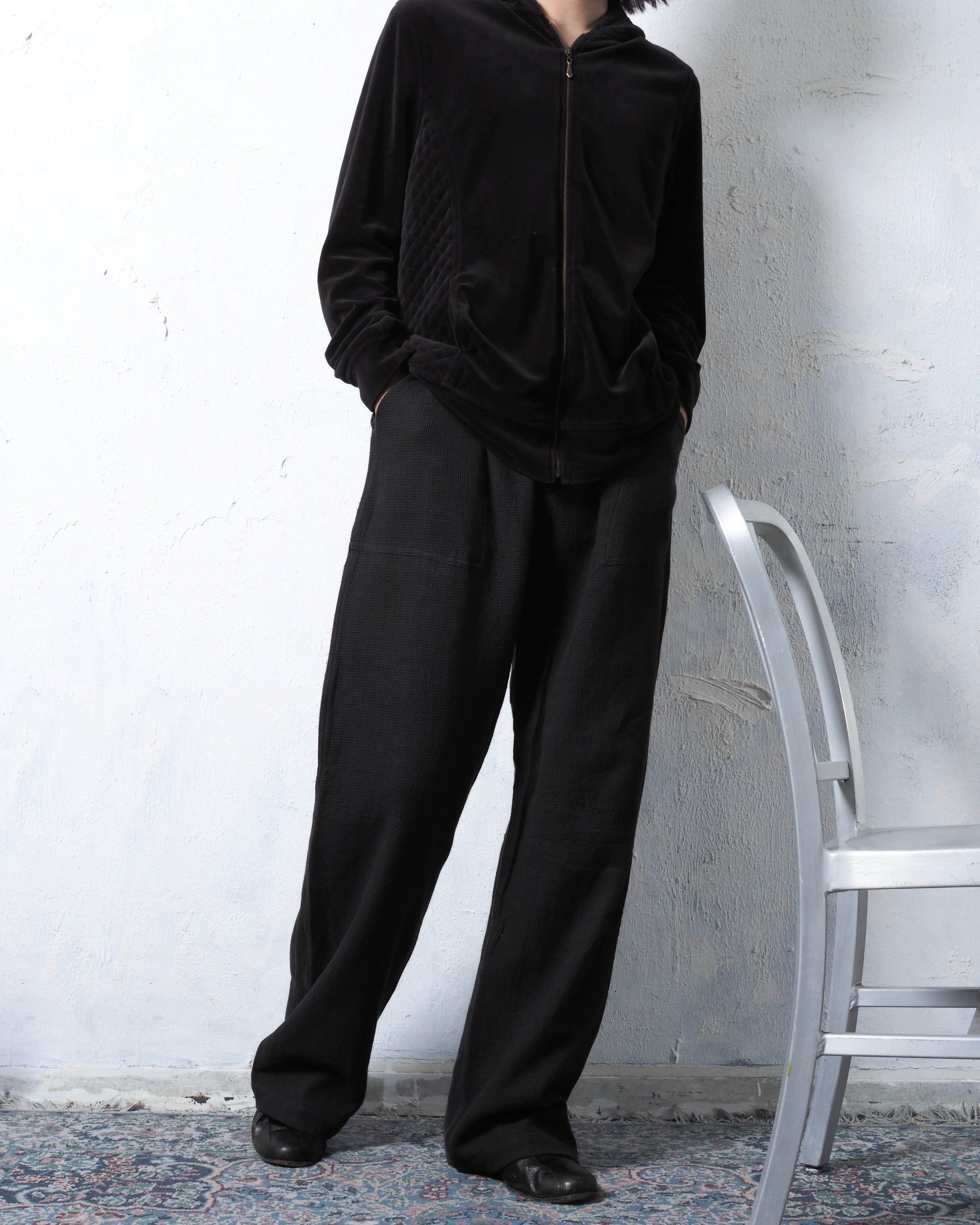 スミクロのボディで、下に落ちるようなシルエットが特徴的なこのパンツ