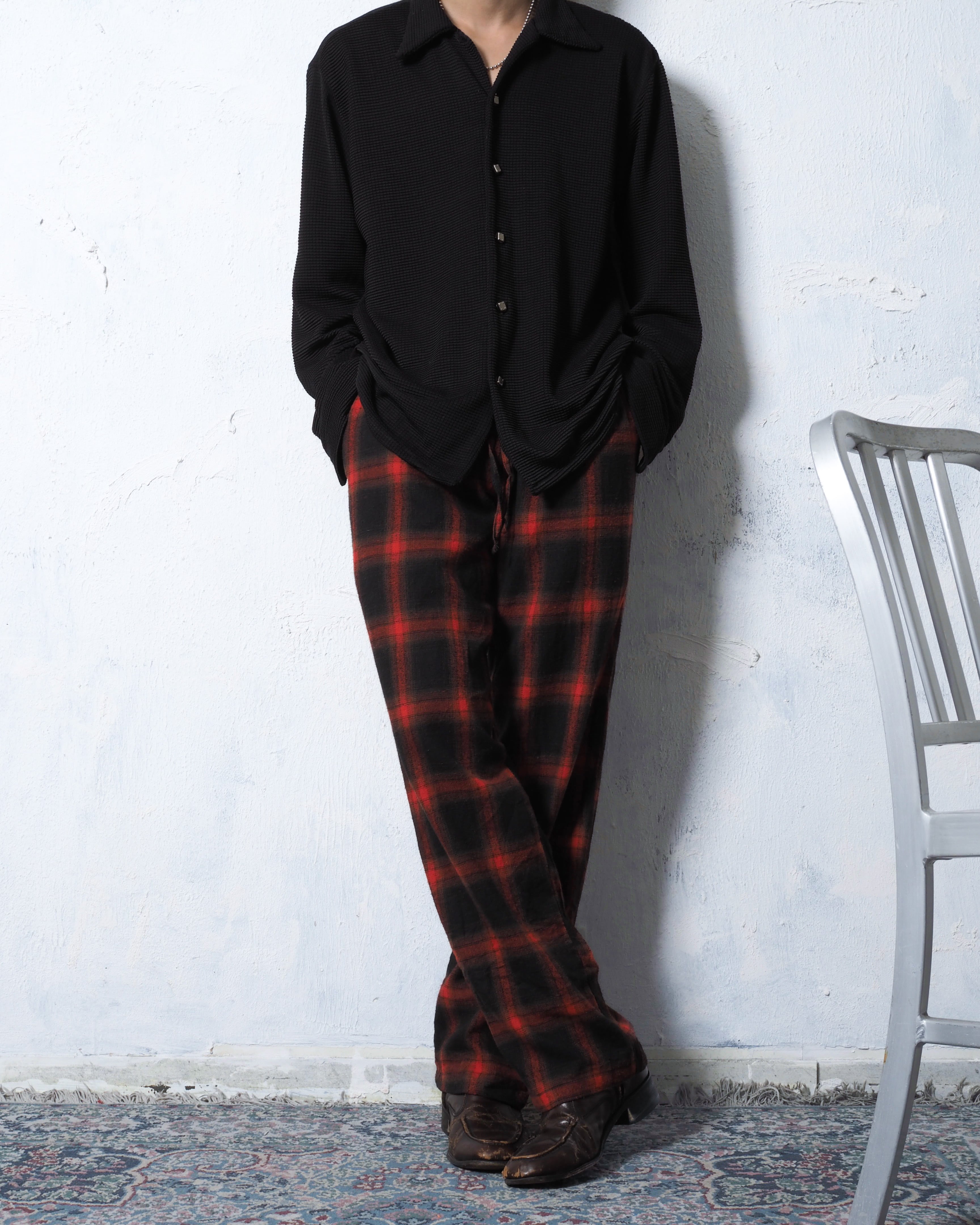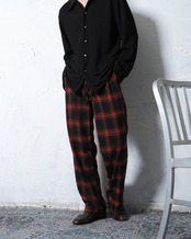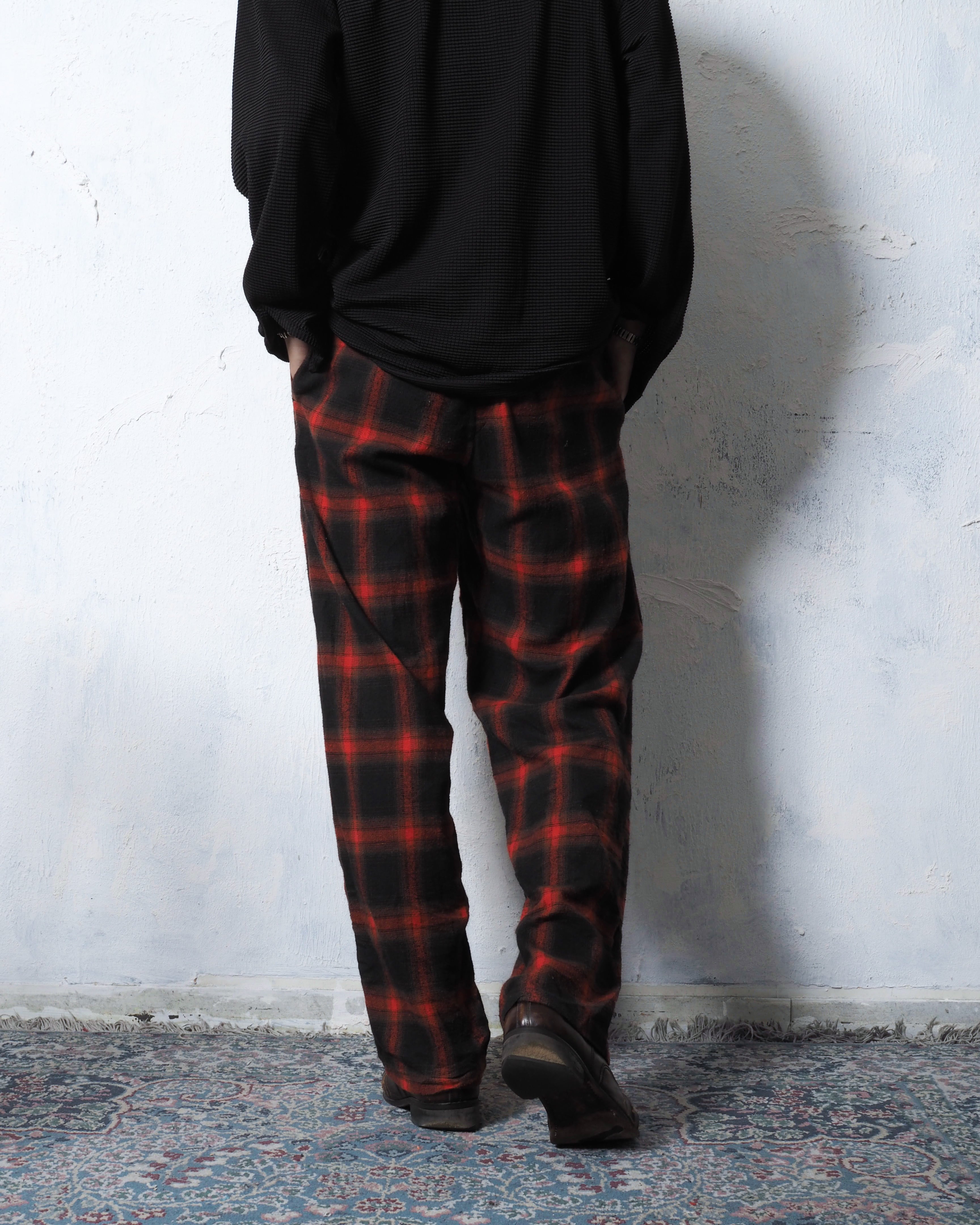赤黒のオンブレ調のチェックに、ウエストはドロスト、この手のアイテムはポケットが付いてないやつが多いですが、こちらは2ポケ仕様