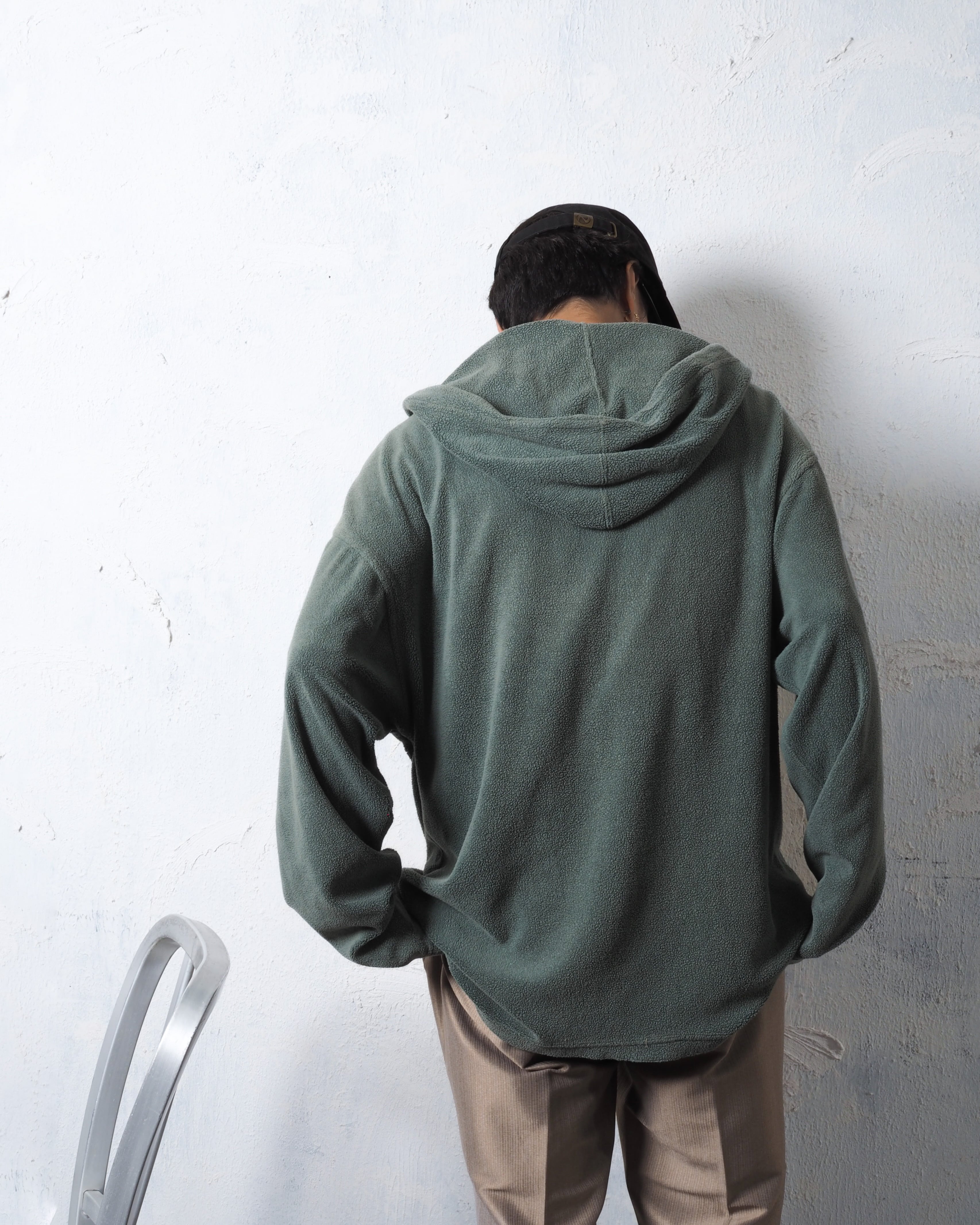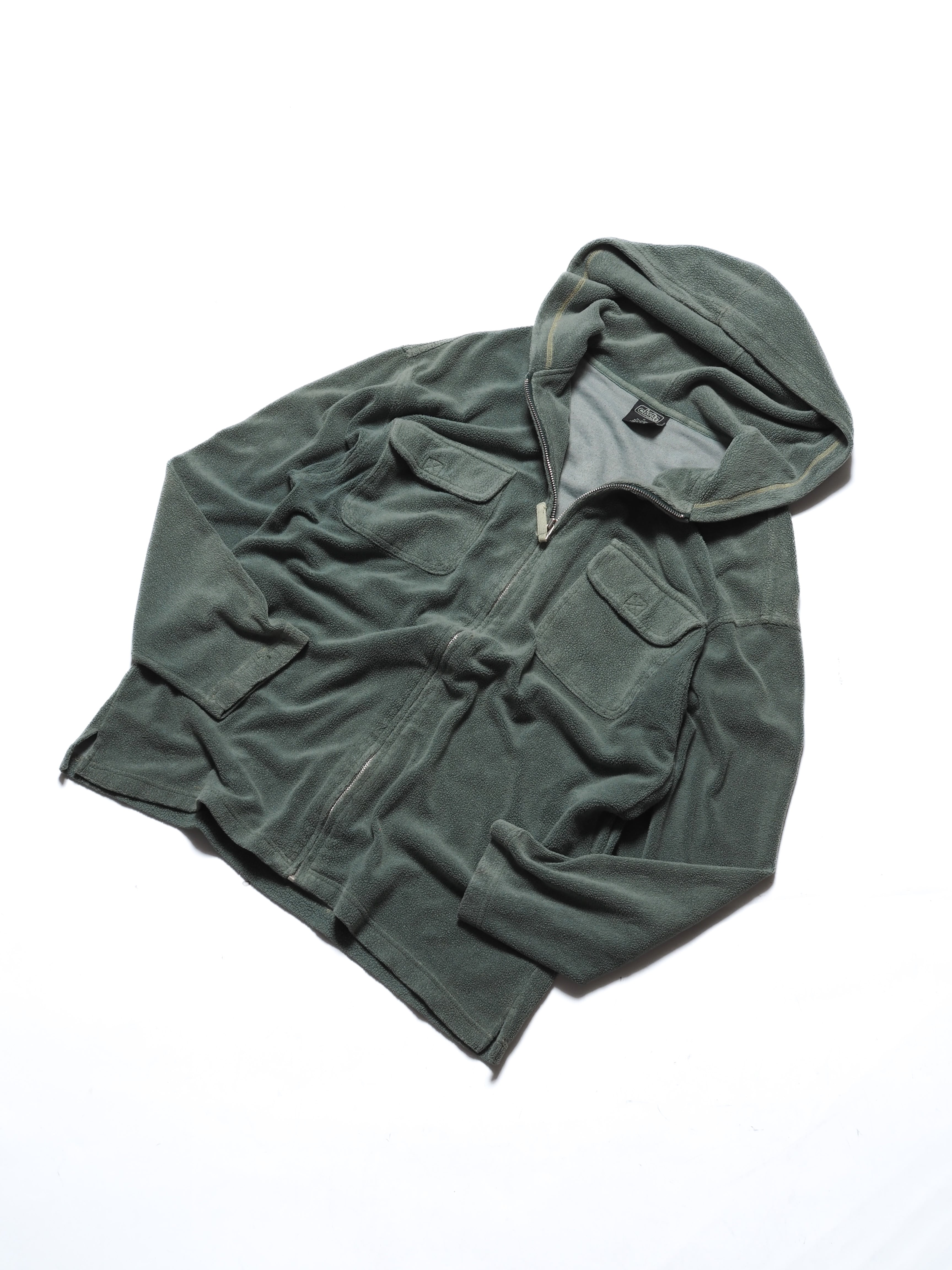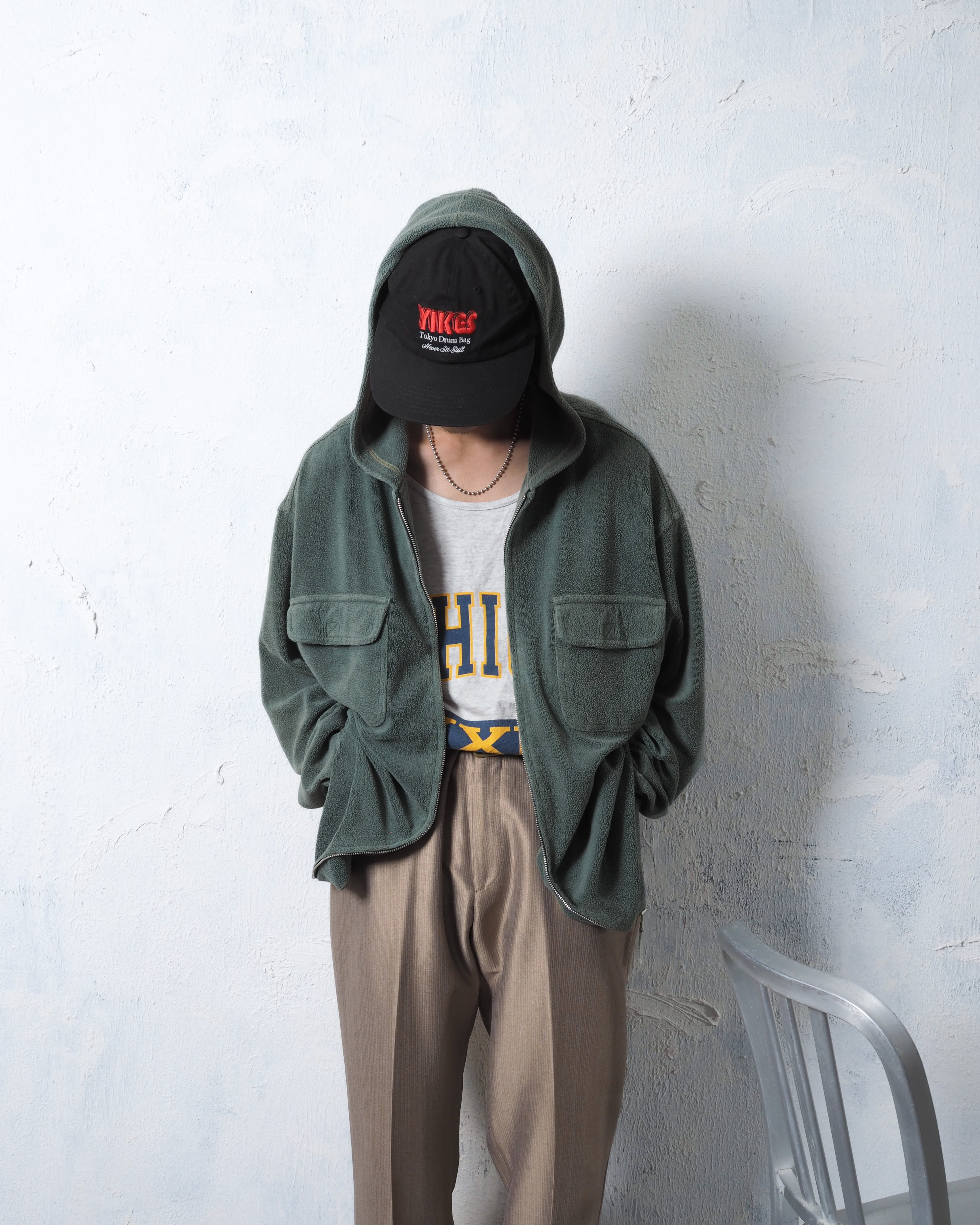 気持ち下めに付いたベルクロのダブルフラップポケット、大きめのフーディ、この感じでフルジップなのも良い