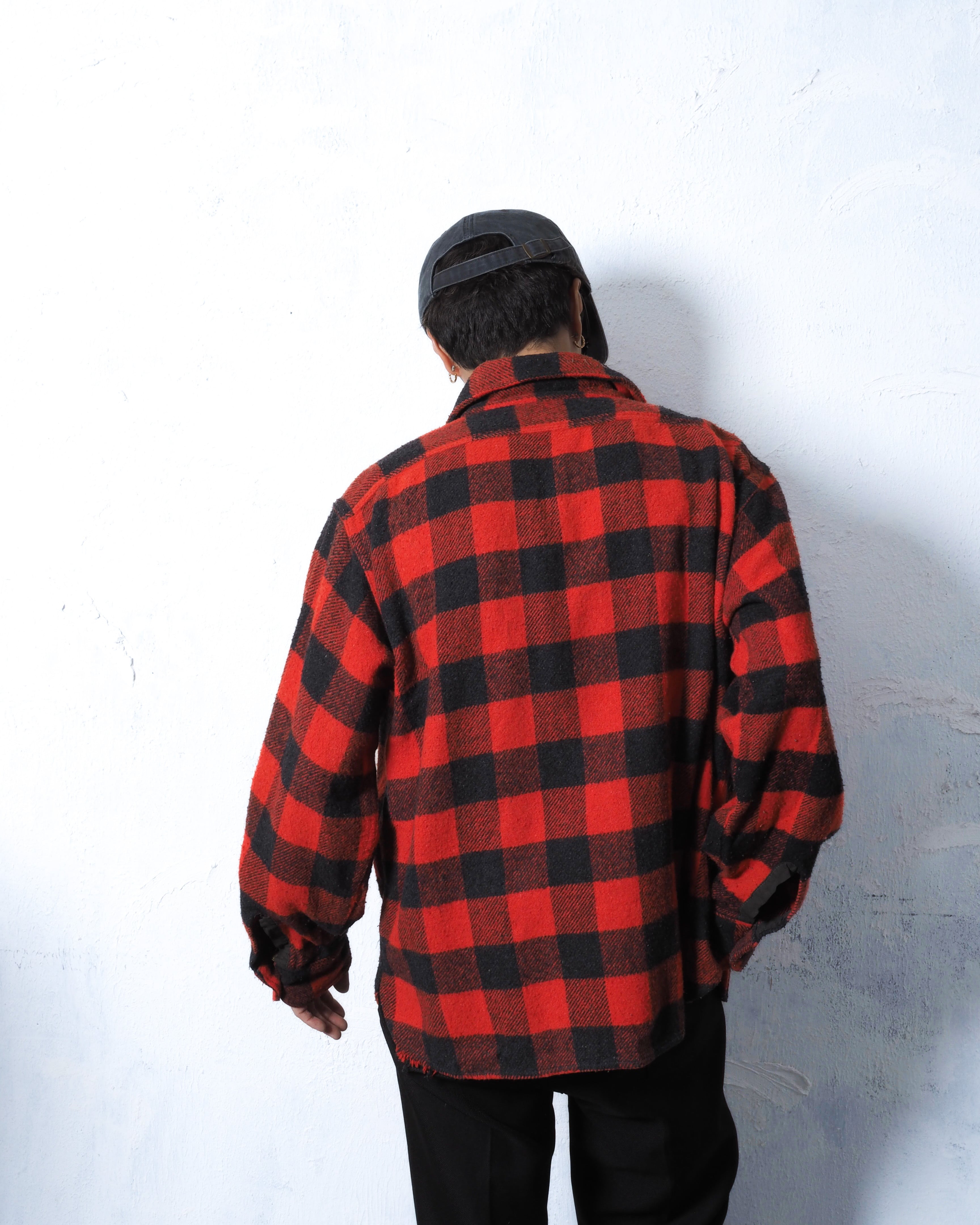 赤黒のバッファローチェックのシャツジャケット