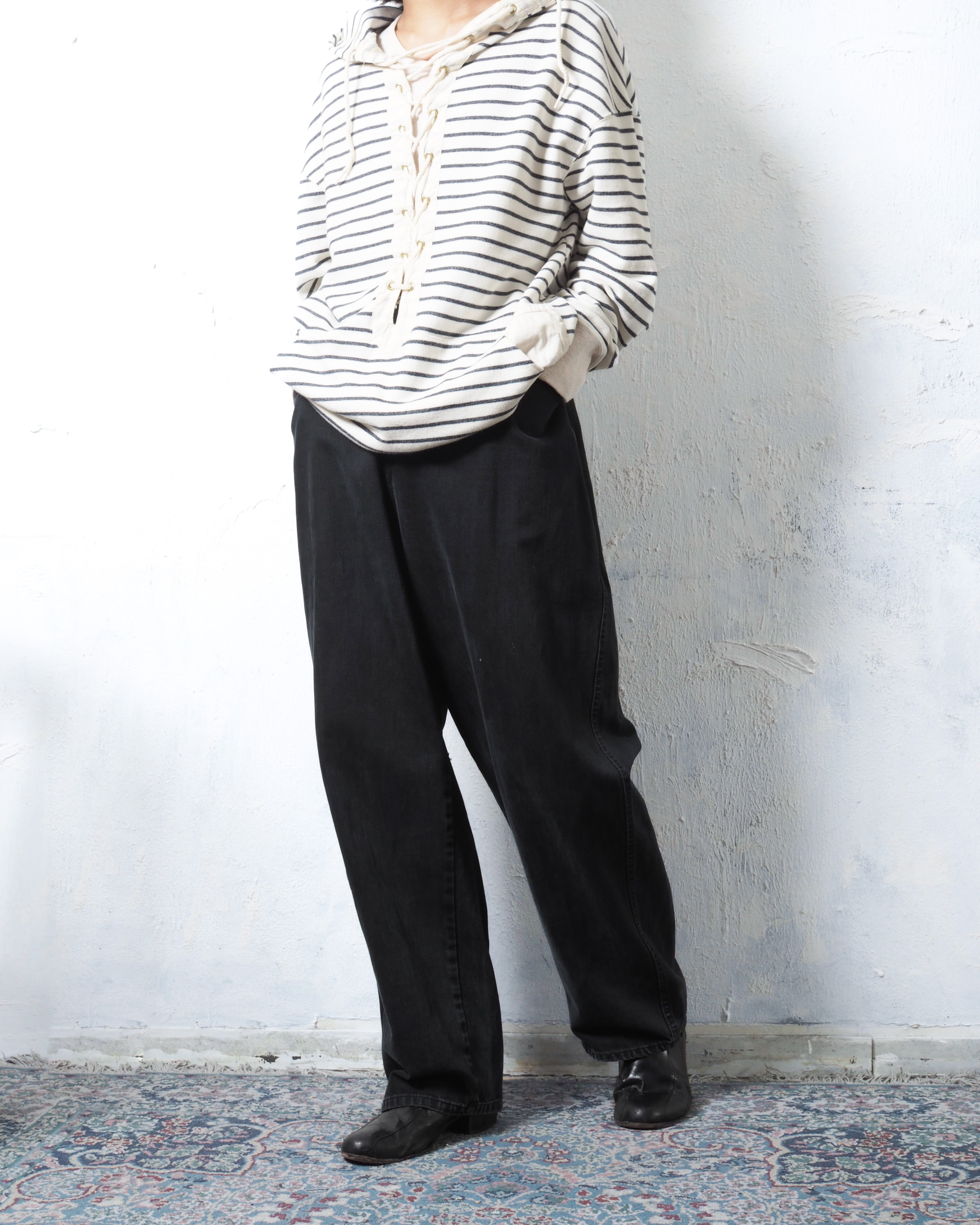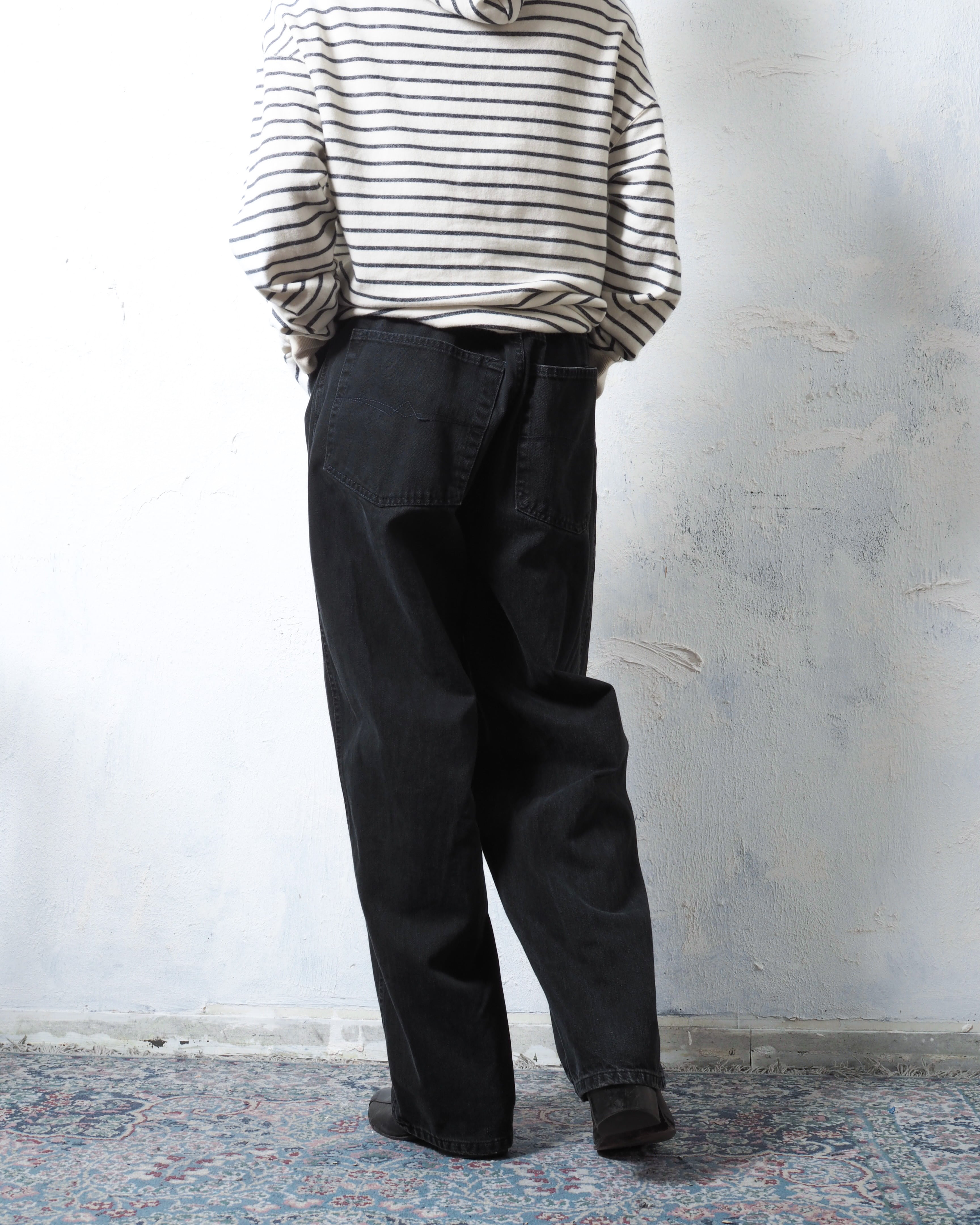 古着に留まらずパンツ類で安定需要を誇るブラックデニムより、良い太さのワタリ幅で美しいシルエットを奏でている一本