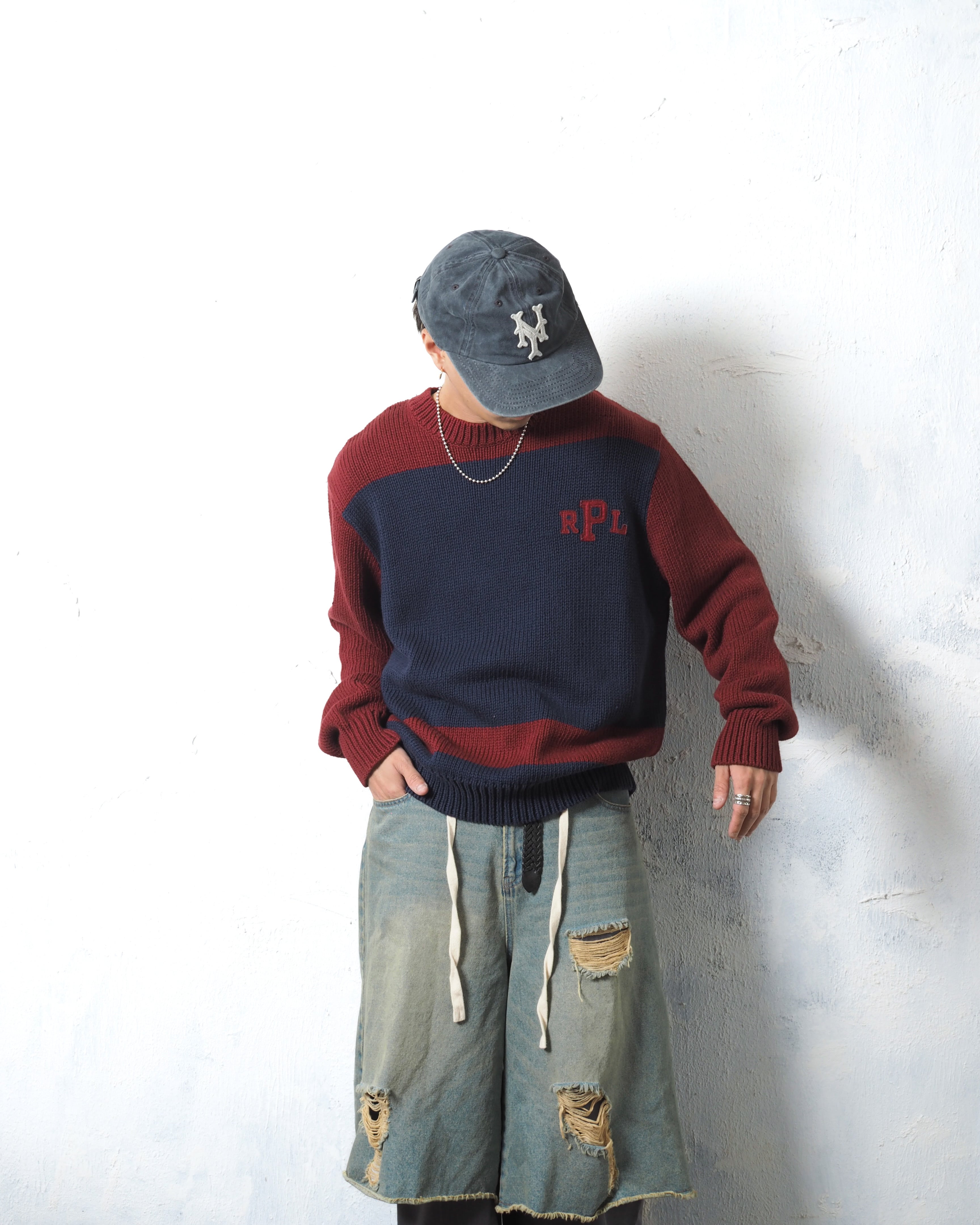 90s Ralph Lauren College 2Tone Cotton Knit