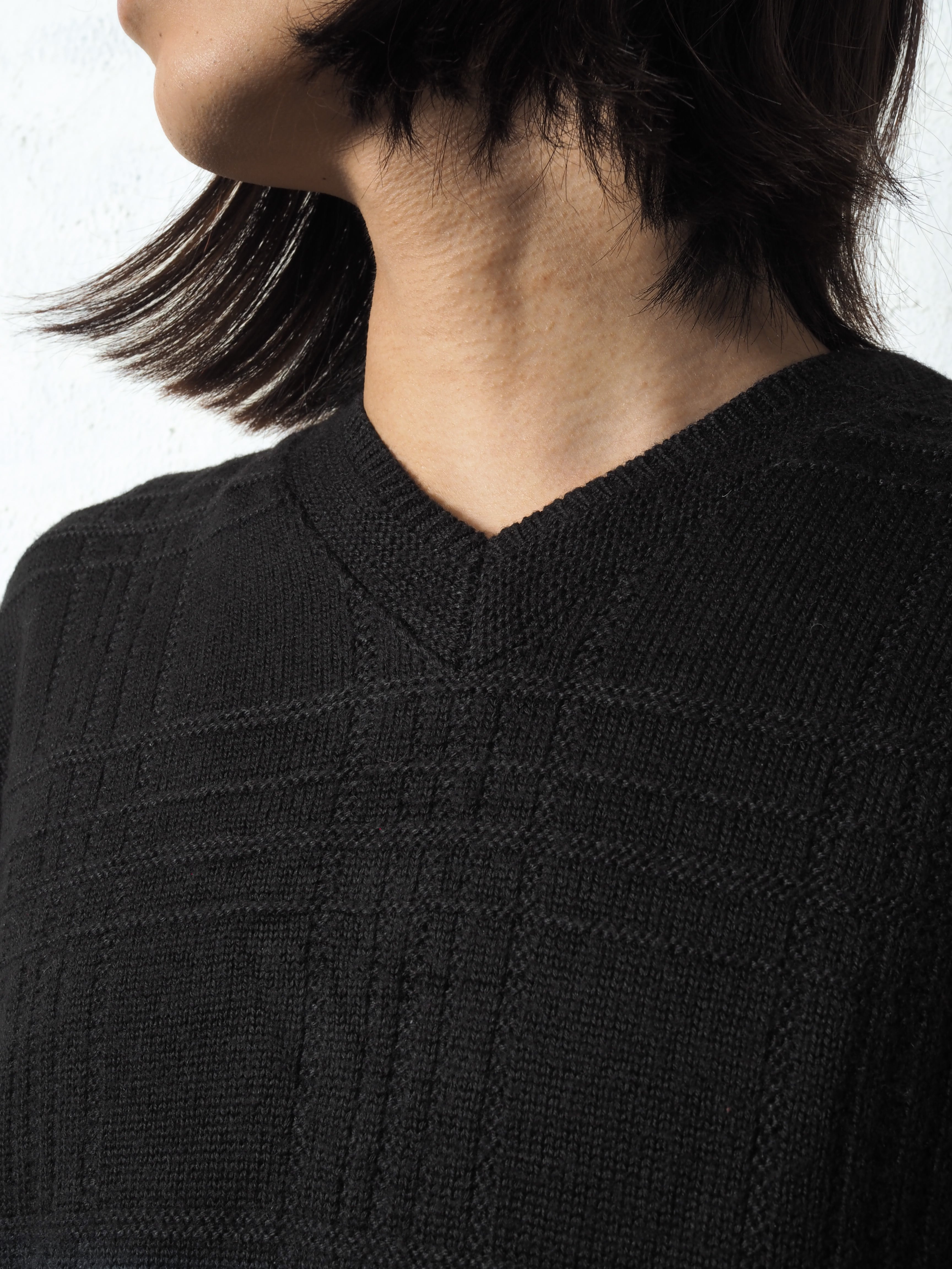 Vが苦手な人でも手に取りやすく挑戦しやすい黒ニットだと思います