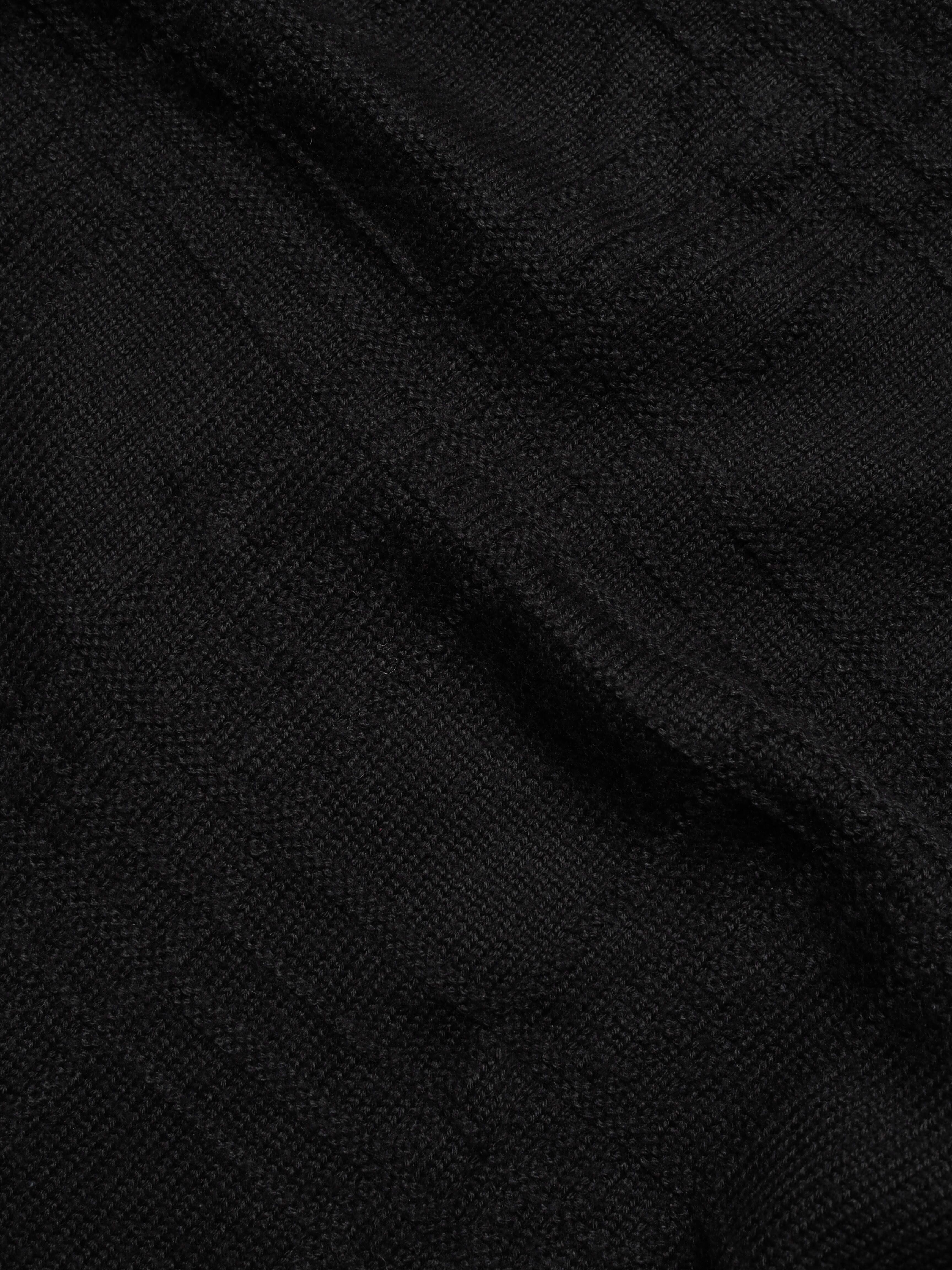 深すぎず程よく開いたVにフロントのデザイン編み込みチェックに拍手したい程素晴らしい丈感