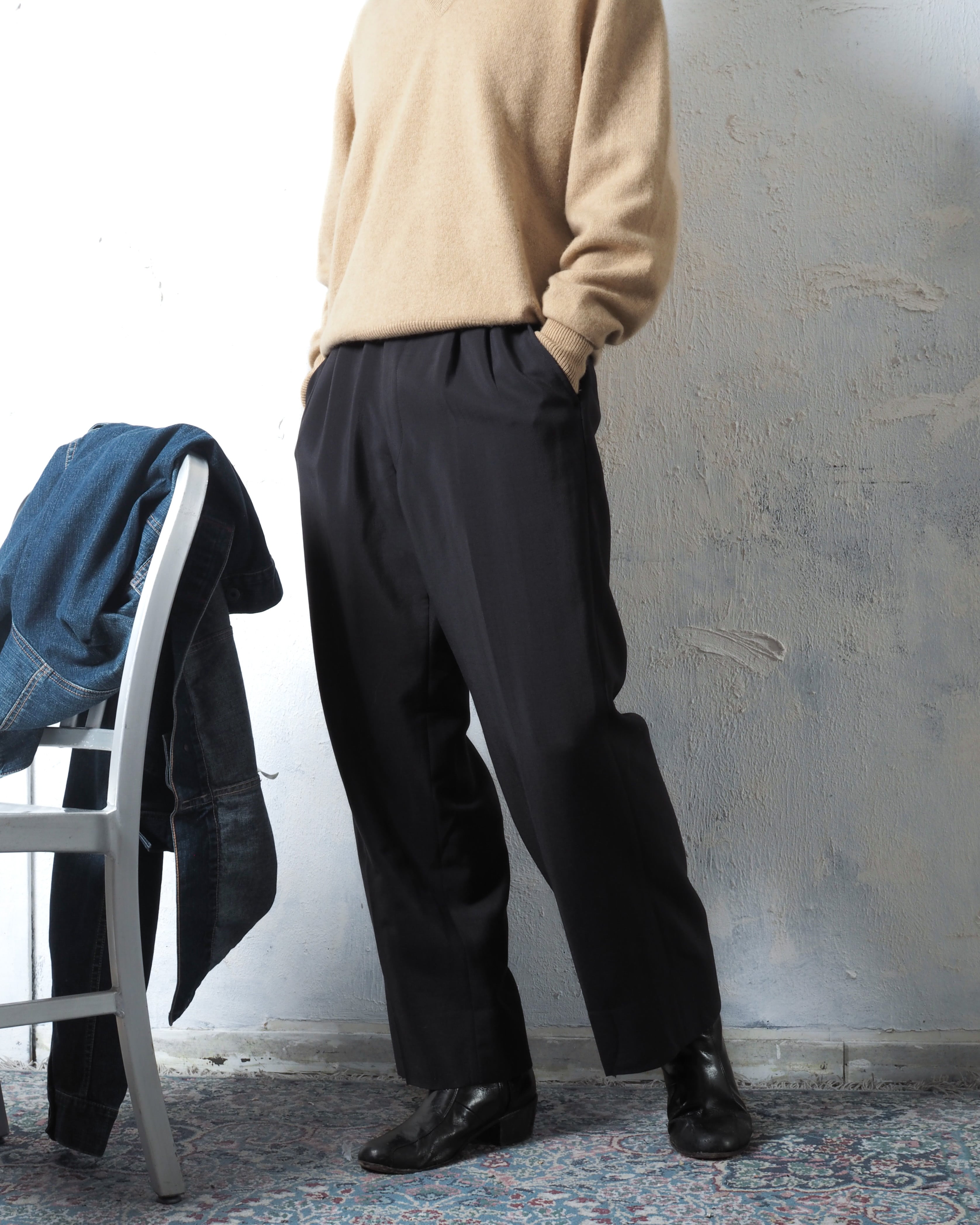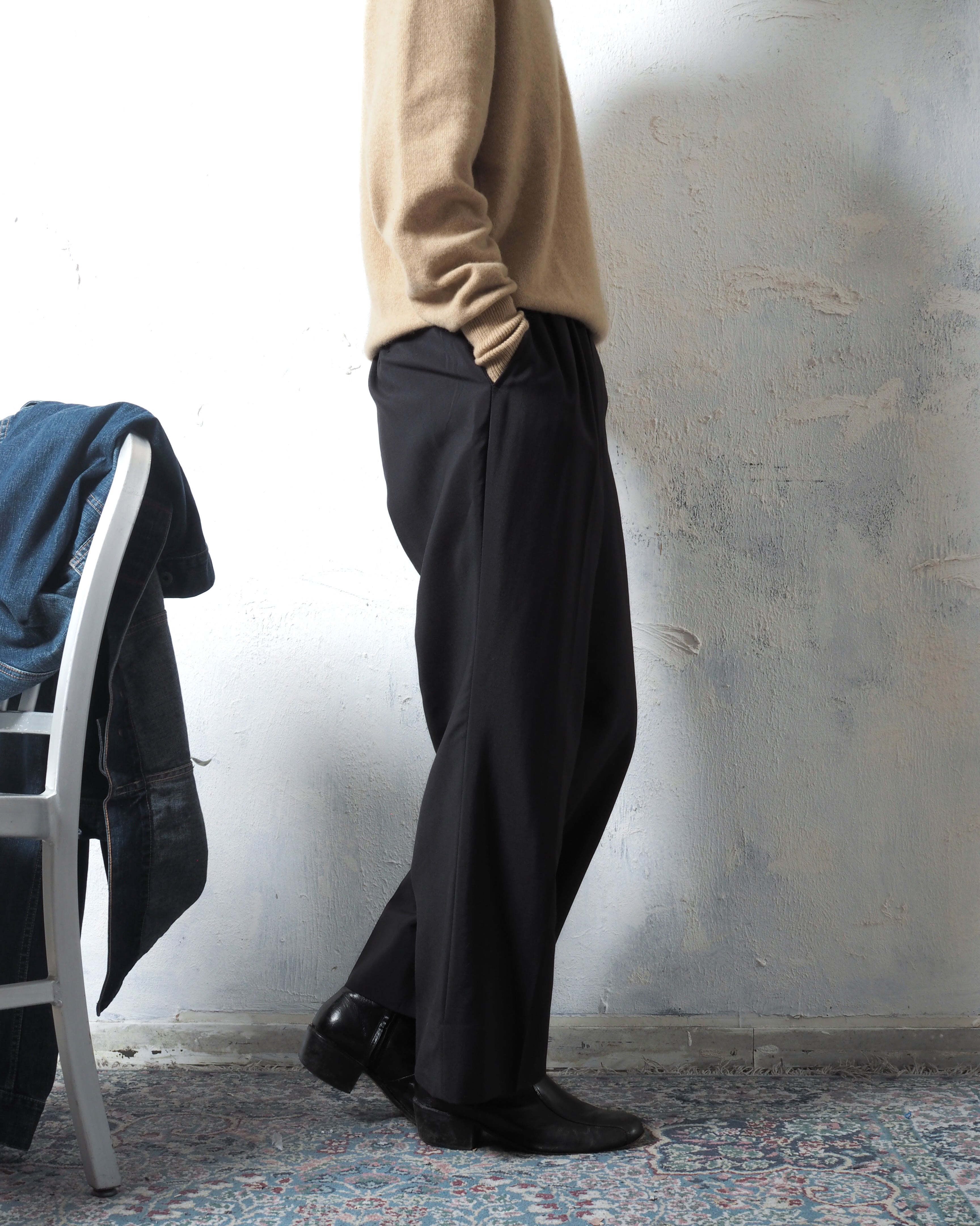 人によってはややクロップド丈になると思うのですが、この丈で穿けるスラックスが一本あってもスタイルの幅を広げてくれると思います