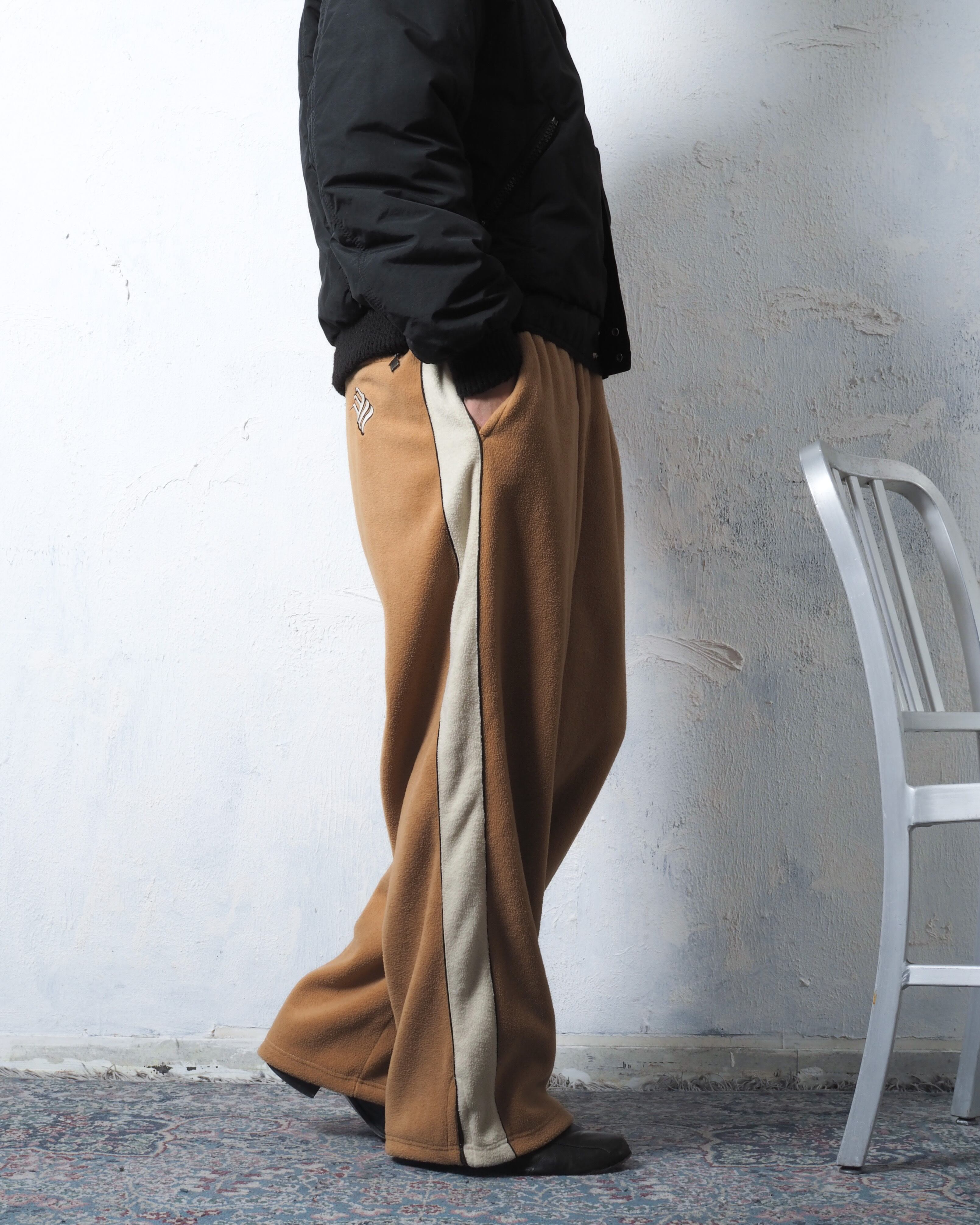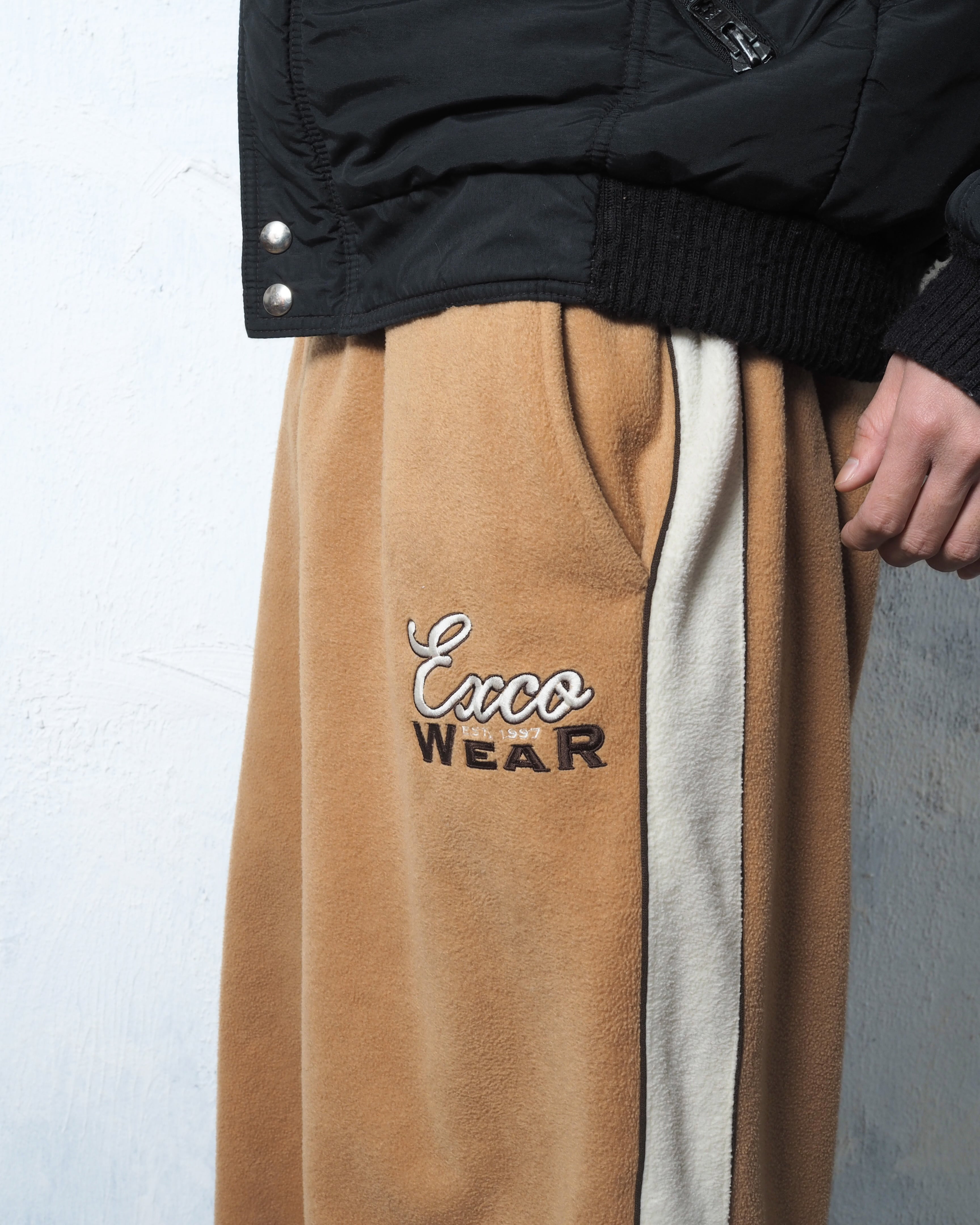 フリースのイージーパンツで、キャメルベースのカラーリング、ストリート味が強いこのアイテムをカジュアルに