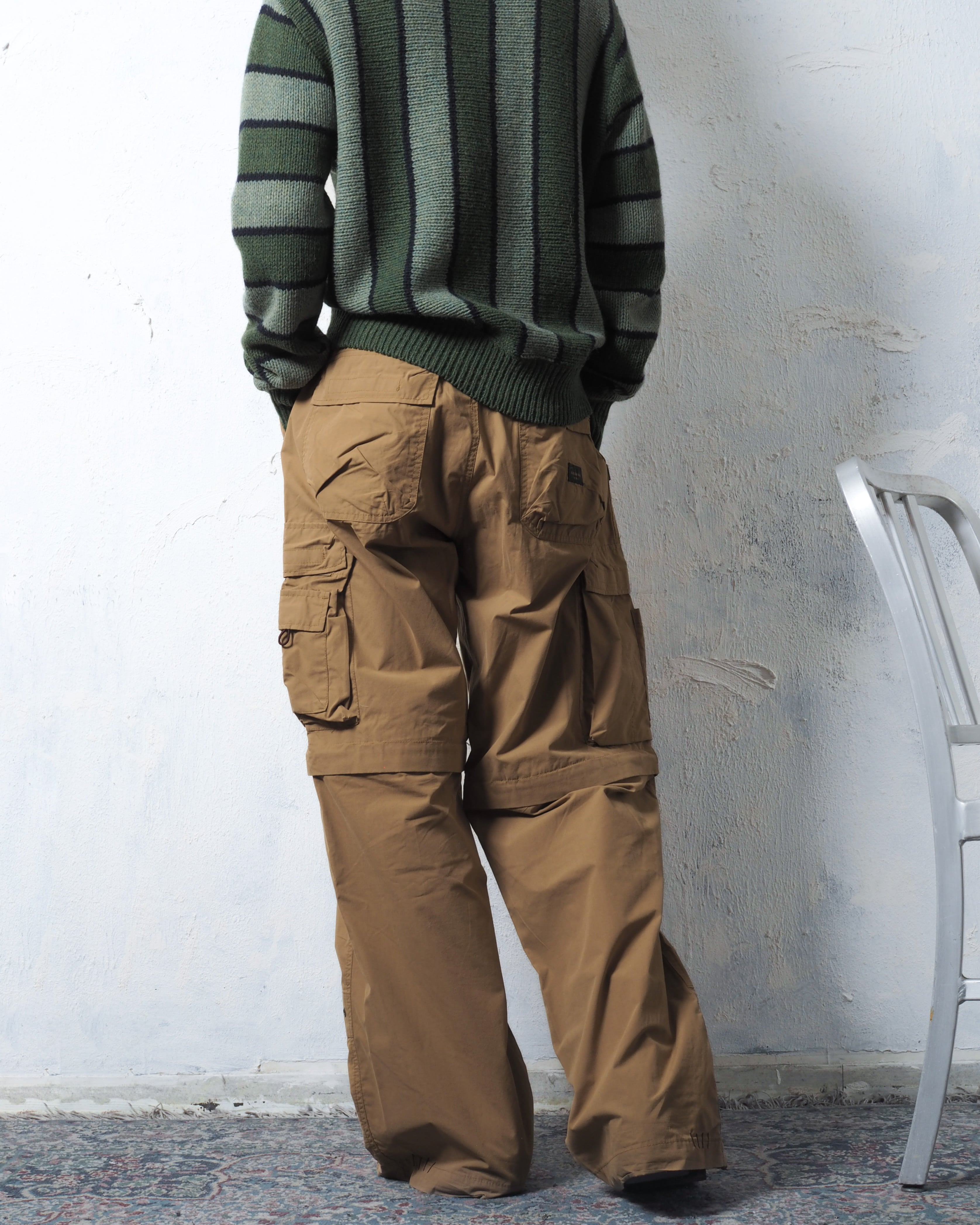 ギミックが各所に彩られた一本、カーゴポケットが付き、裾はジップで開閉式