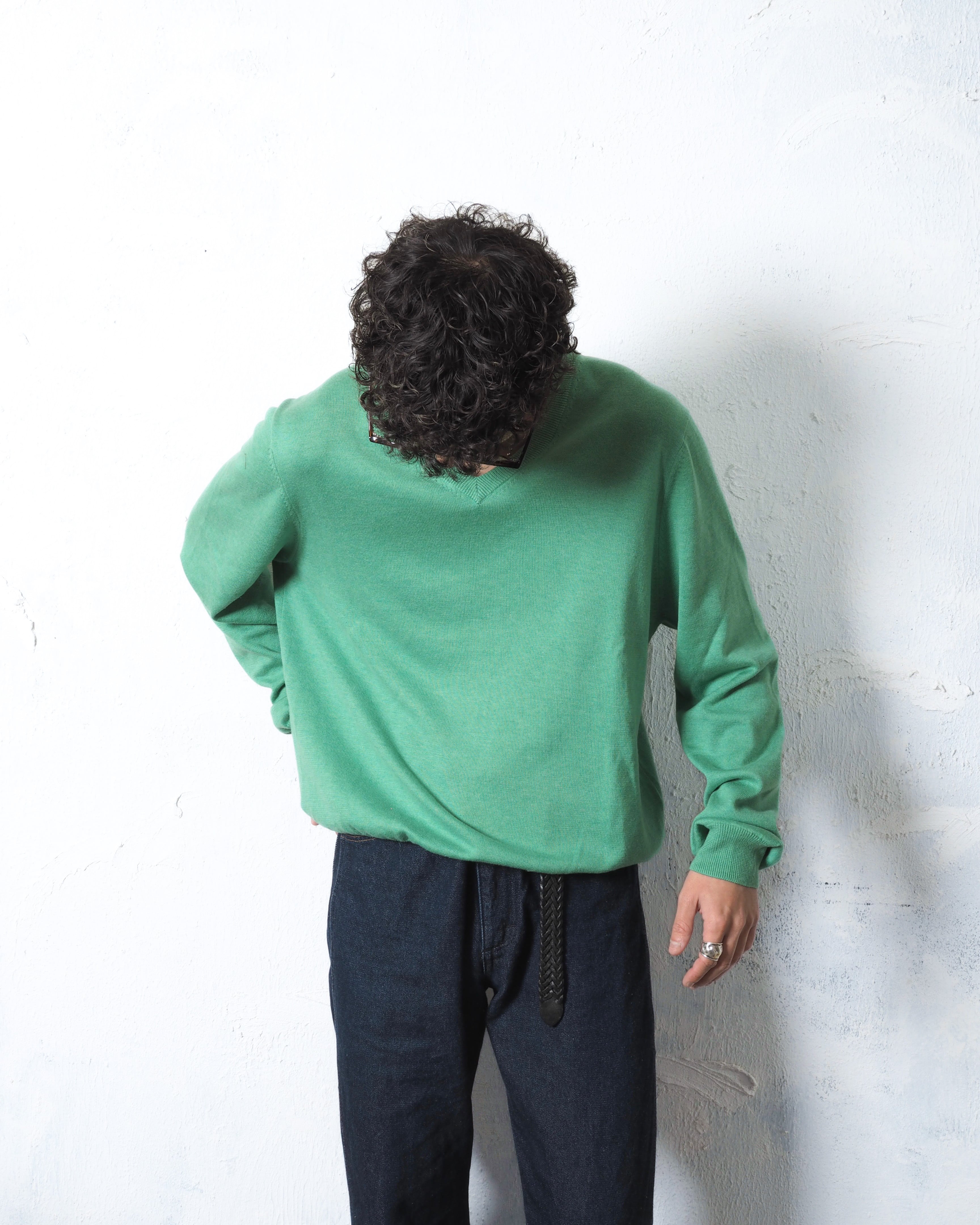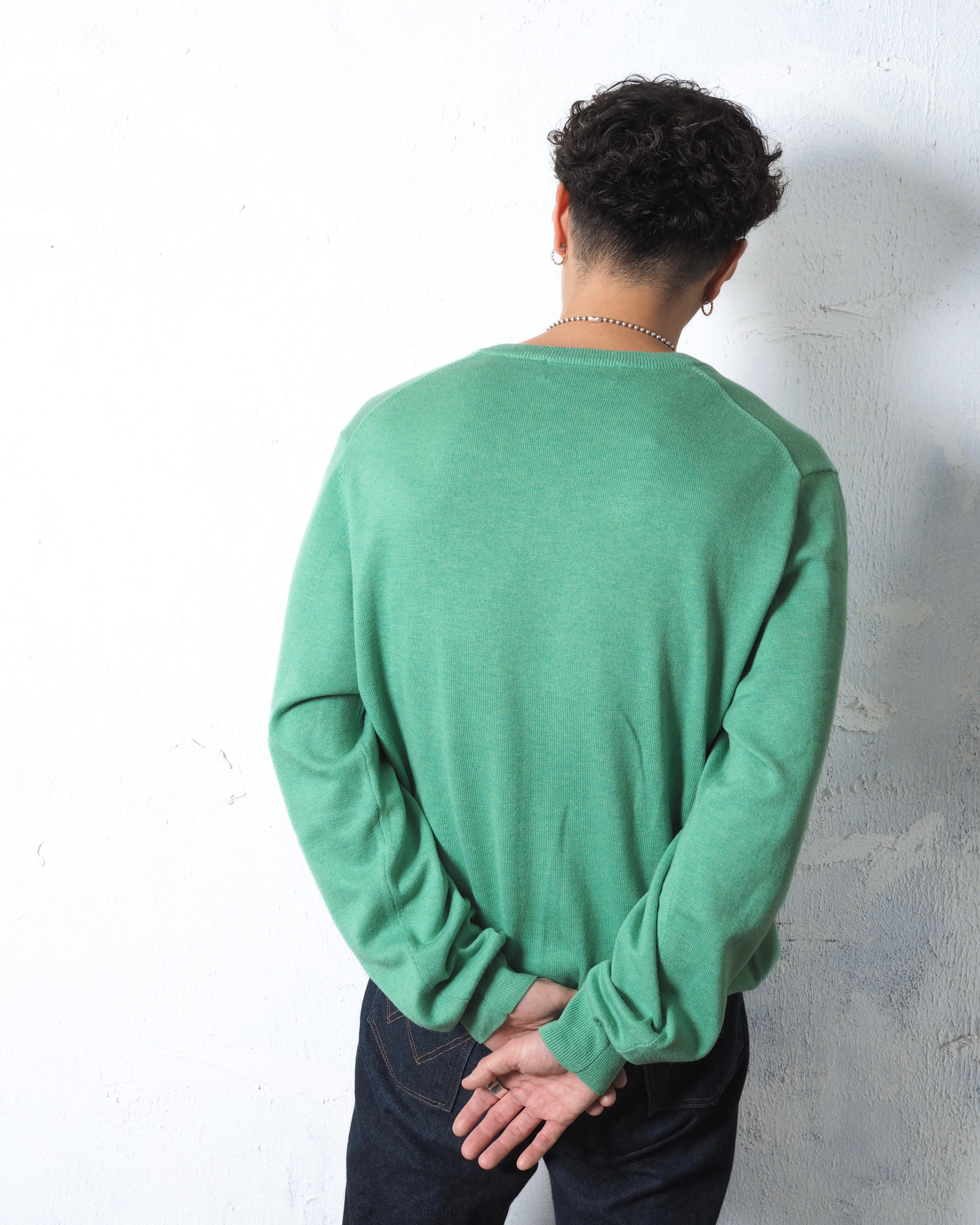 老舗ブランドより、ミントグリーンと一言で終わらせたくない程綺麗な色味のVネックニット