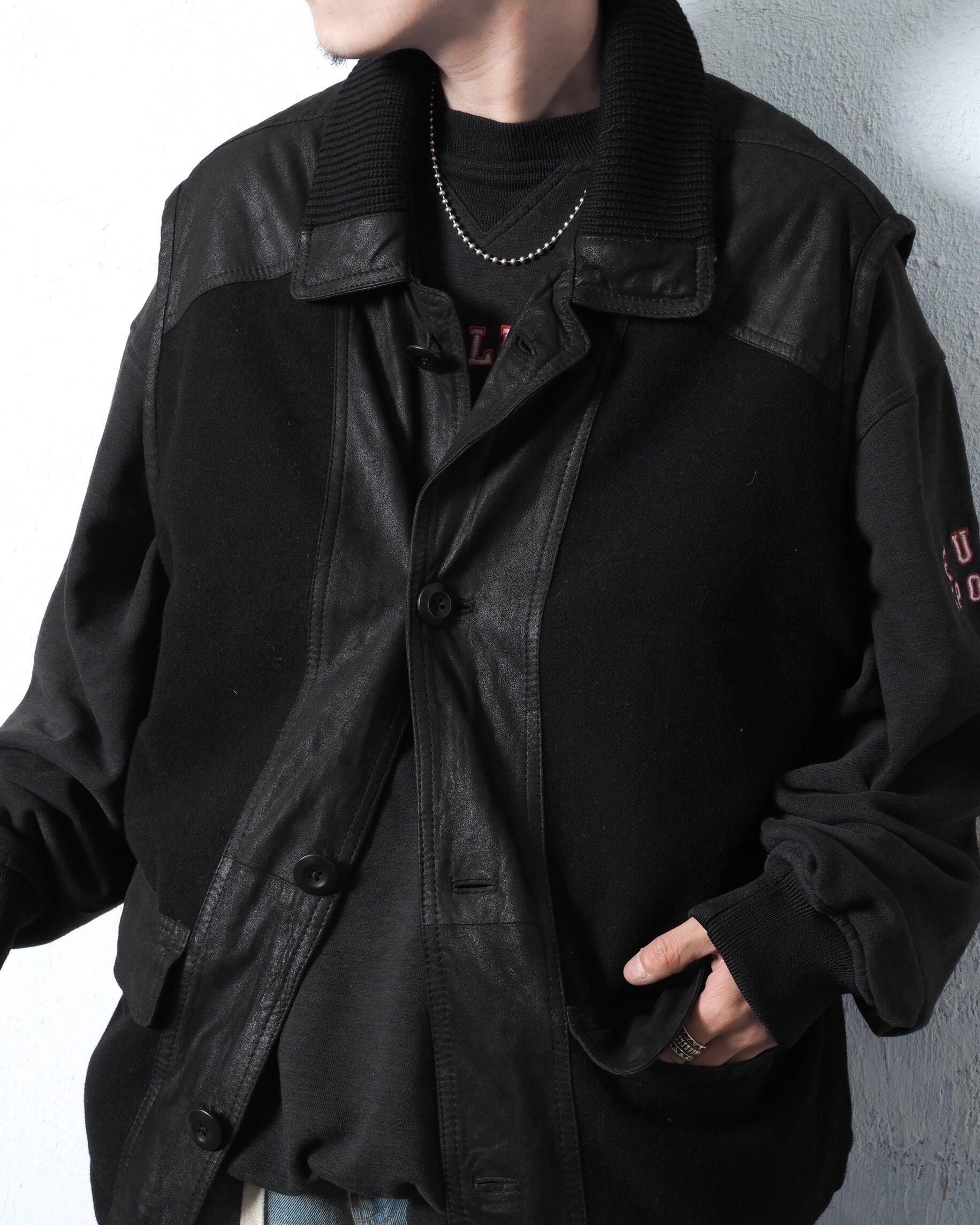 レザー、ニット、フリース、贅沢な同色切り替えでモードな仕上がりも窺える一着