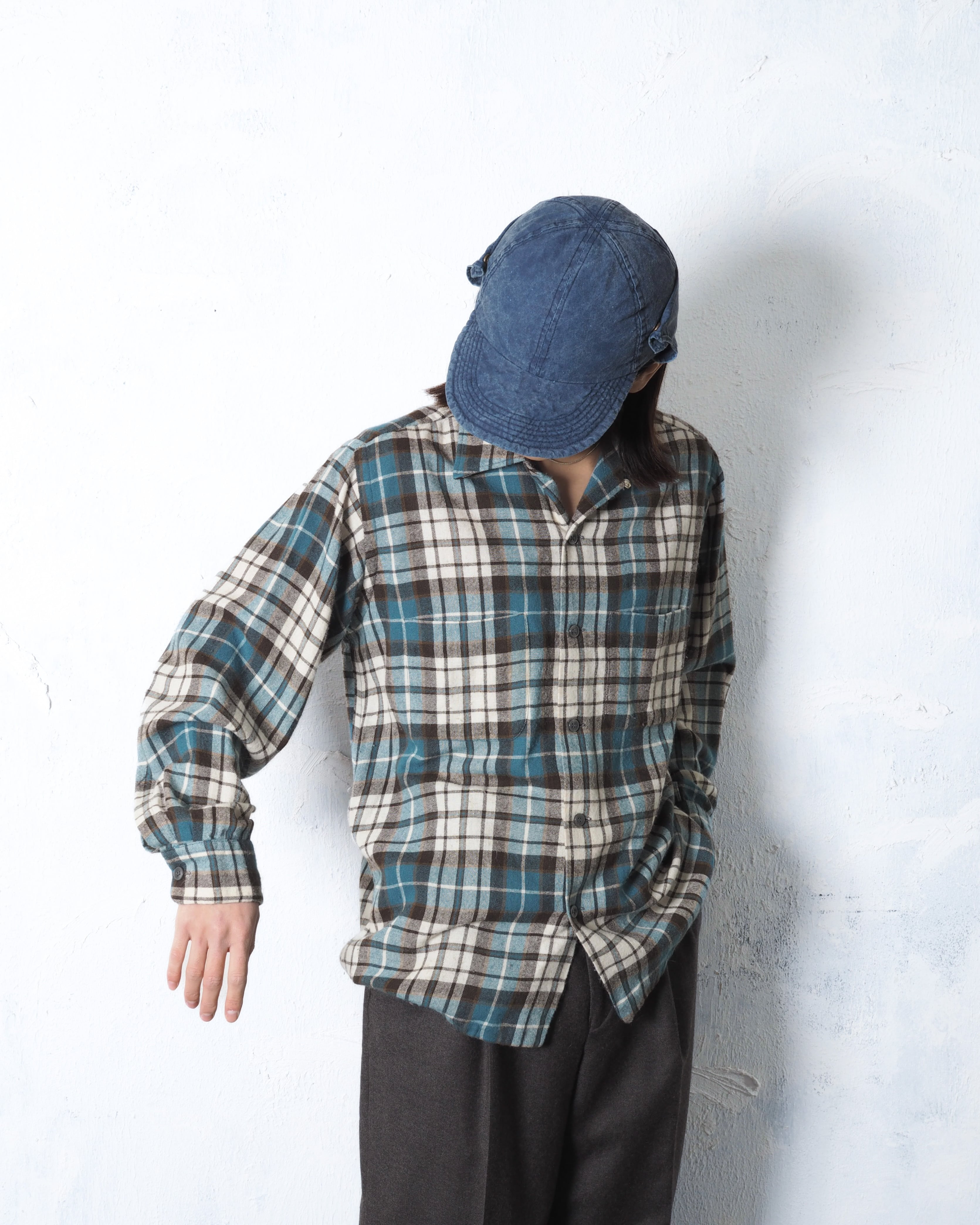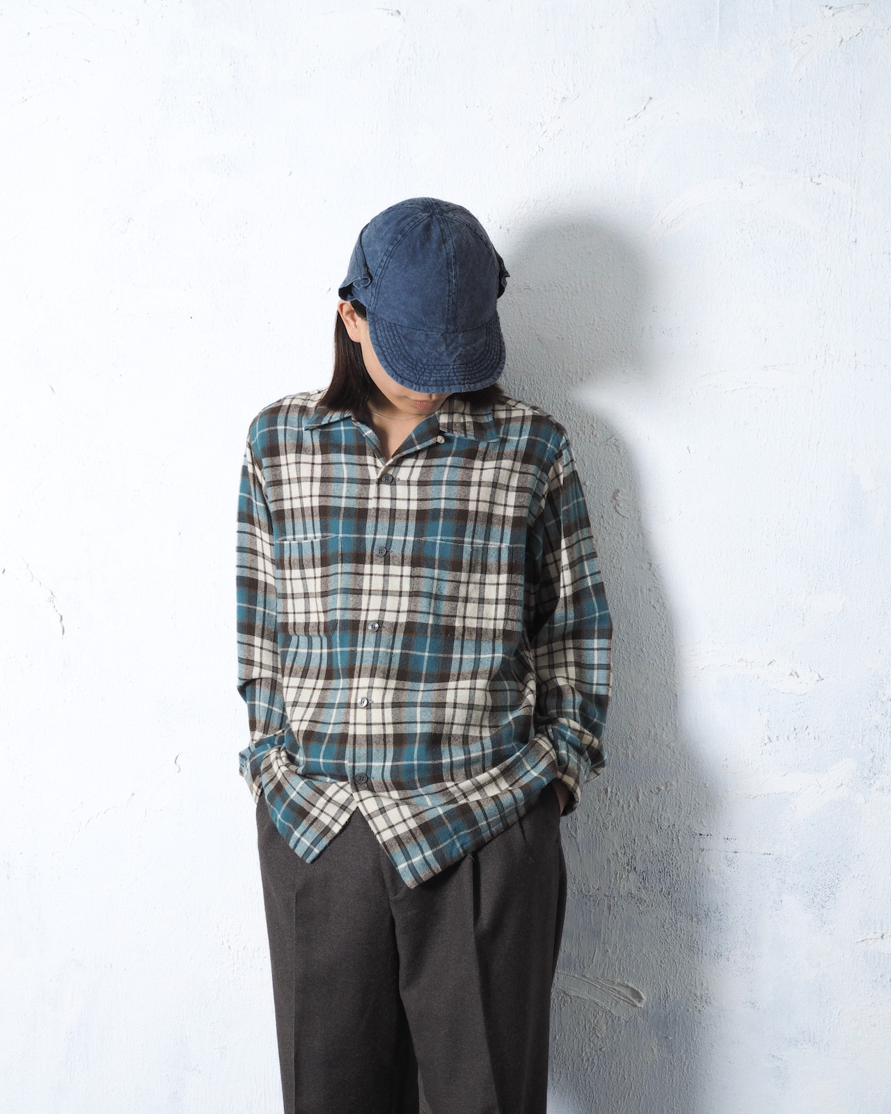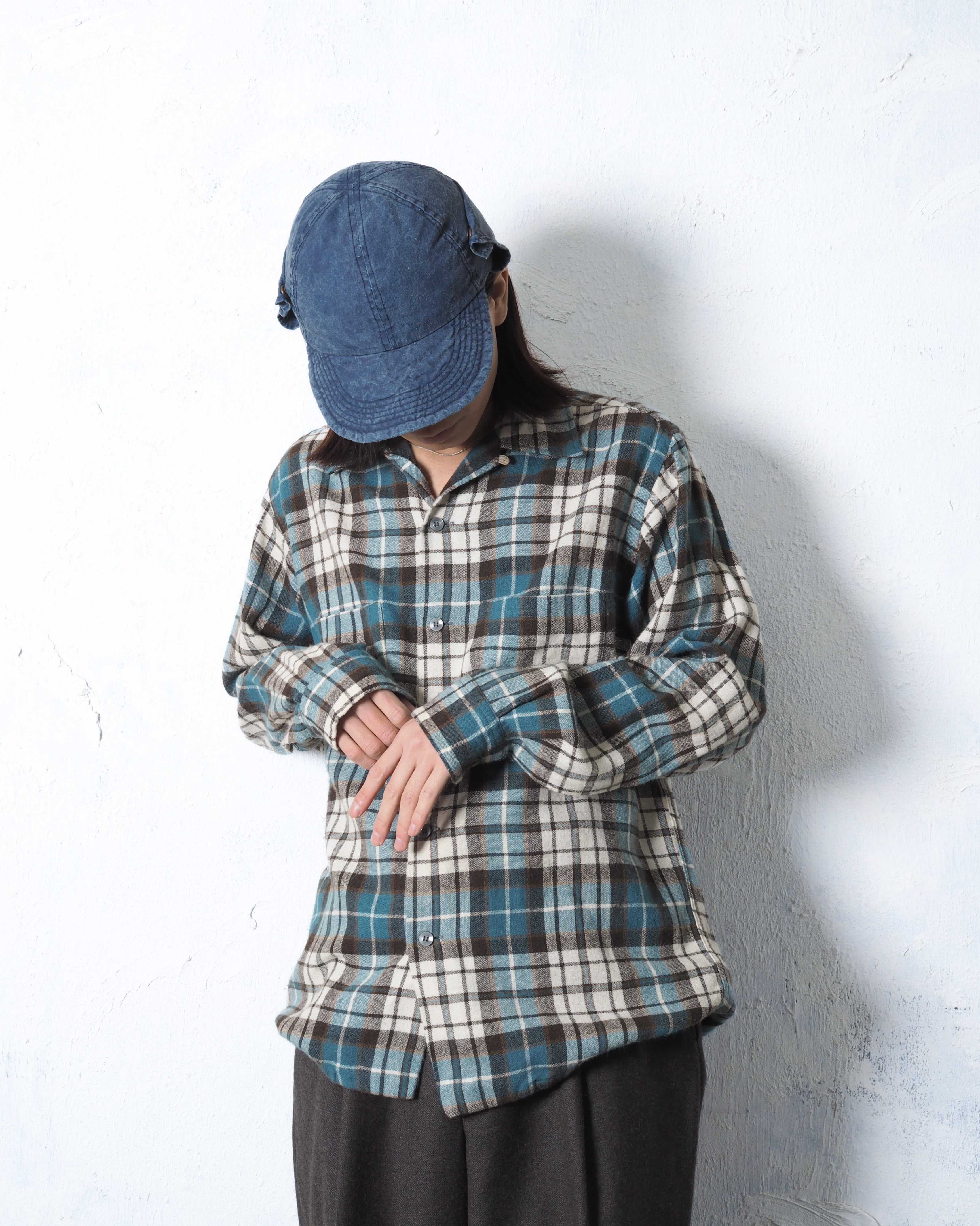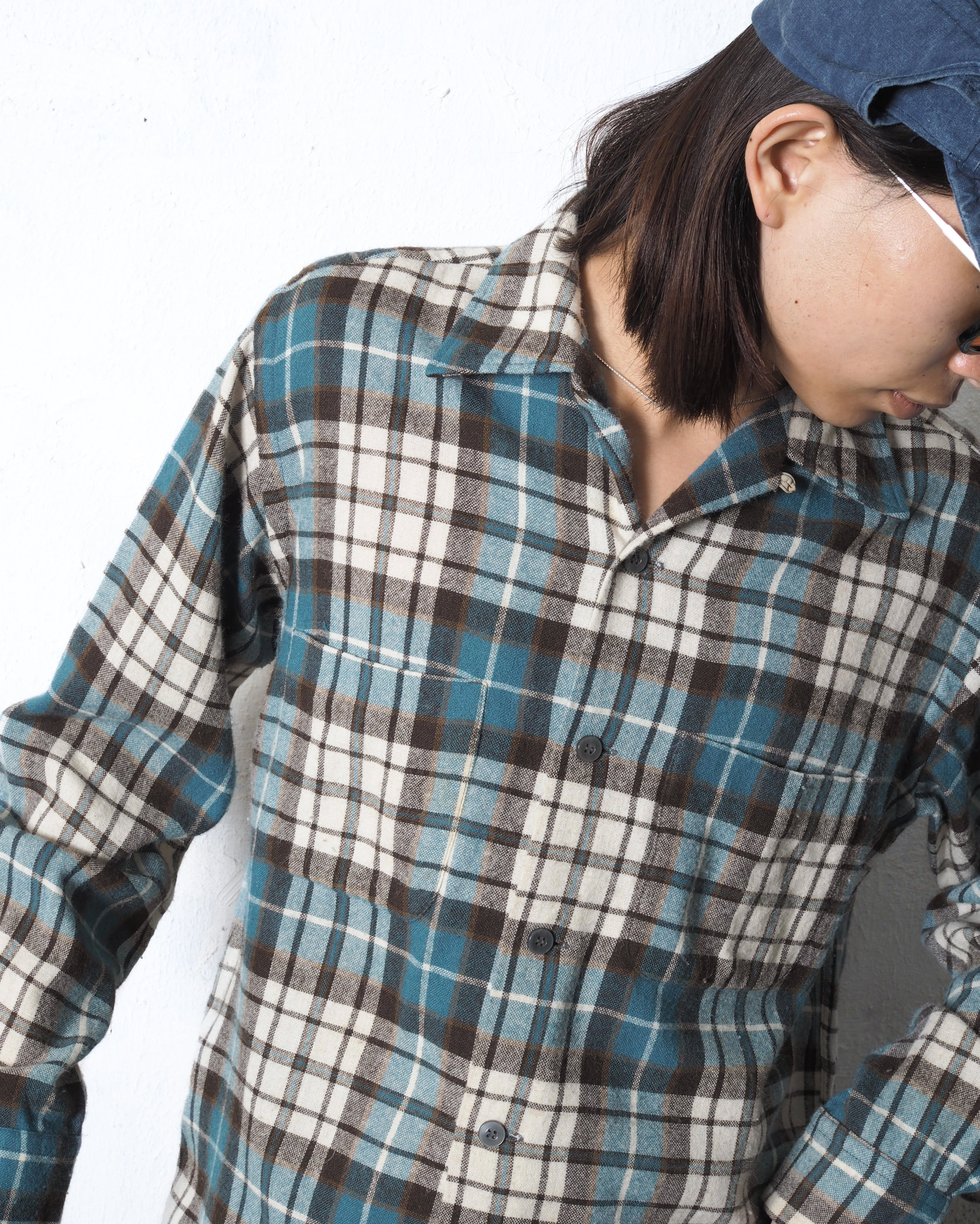 フロントは勿論オープンカラーで5つボタン仕様、暖色が多い印象のネルですが、ここでは寒色をピック