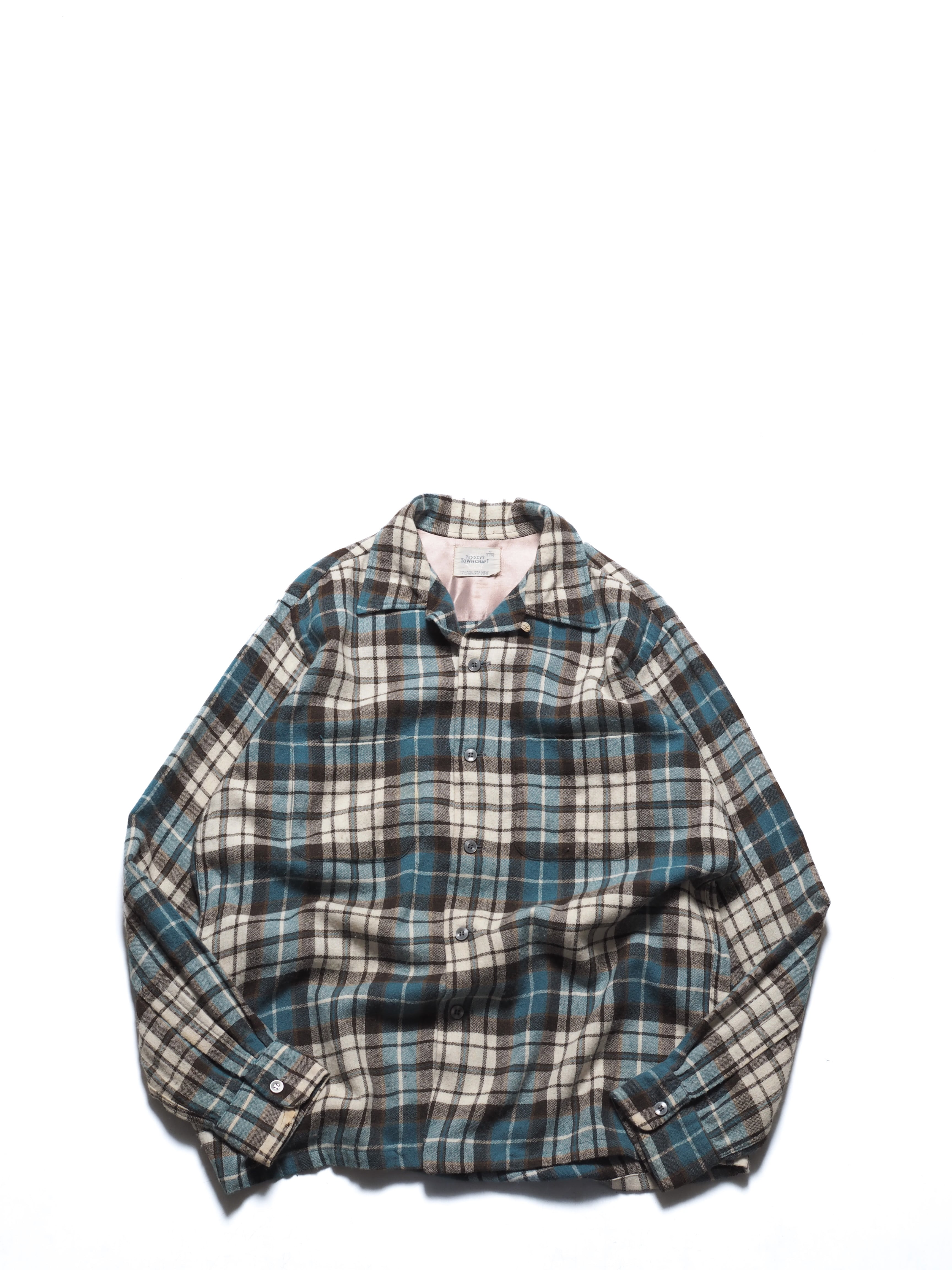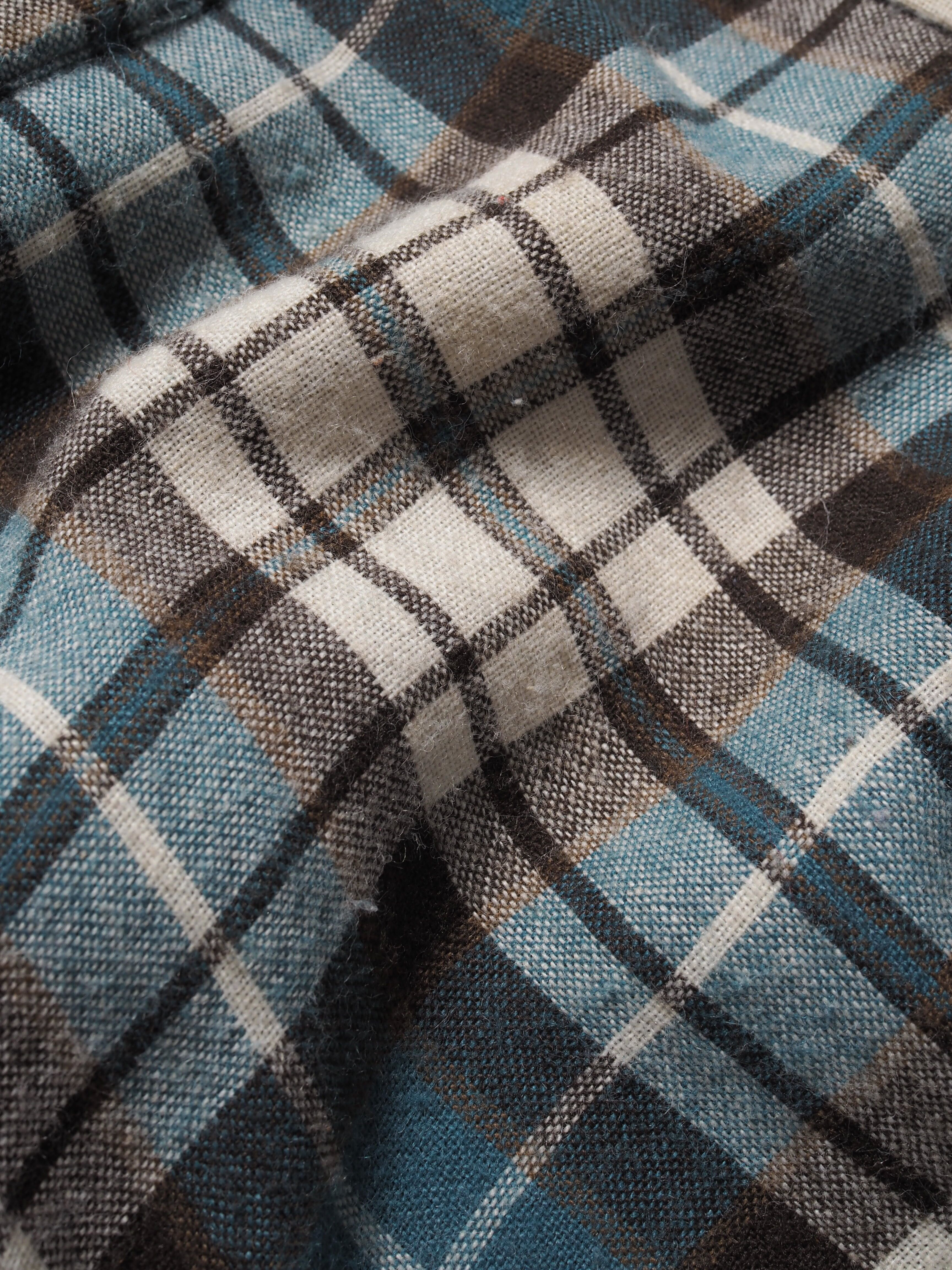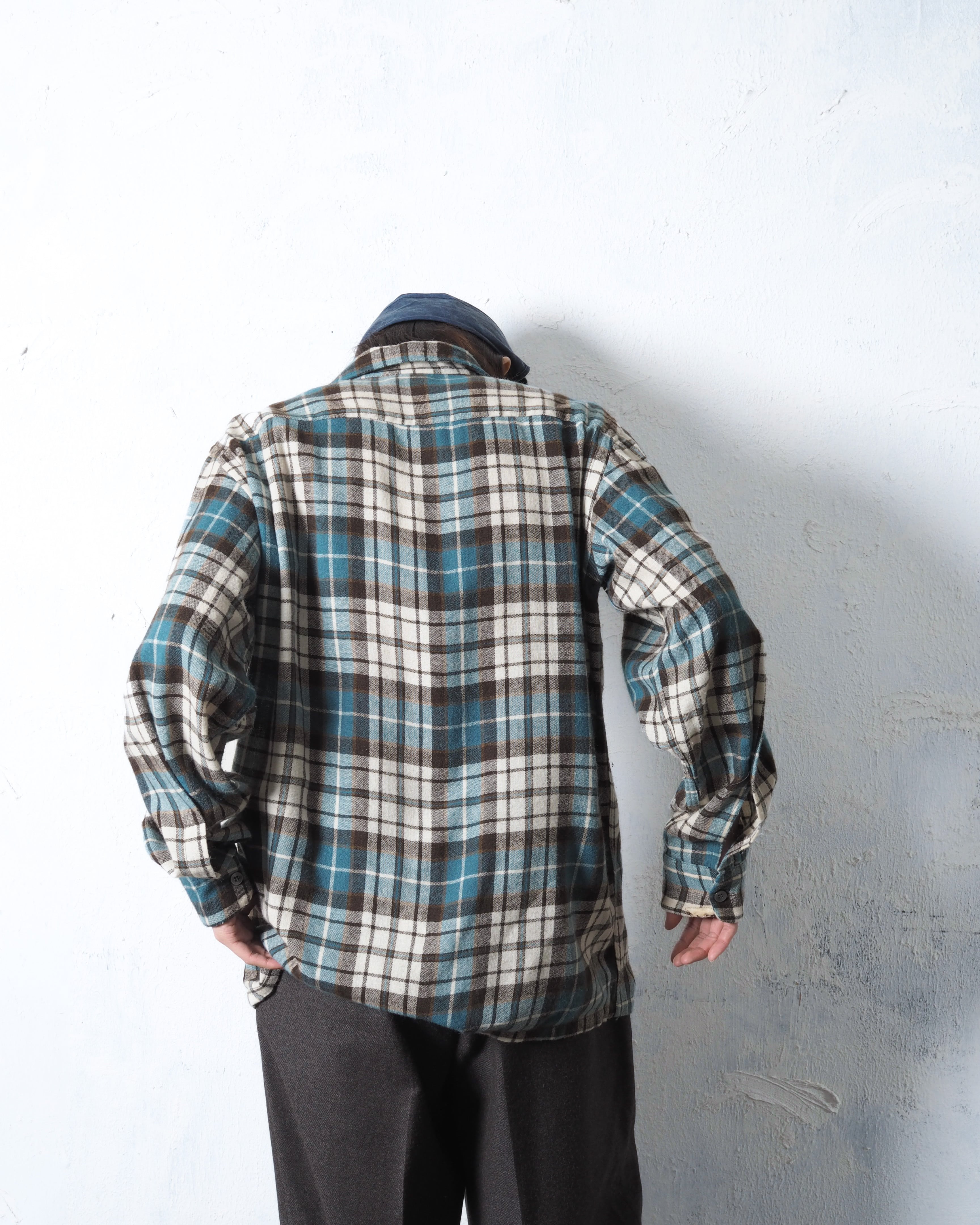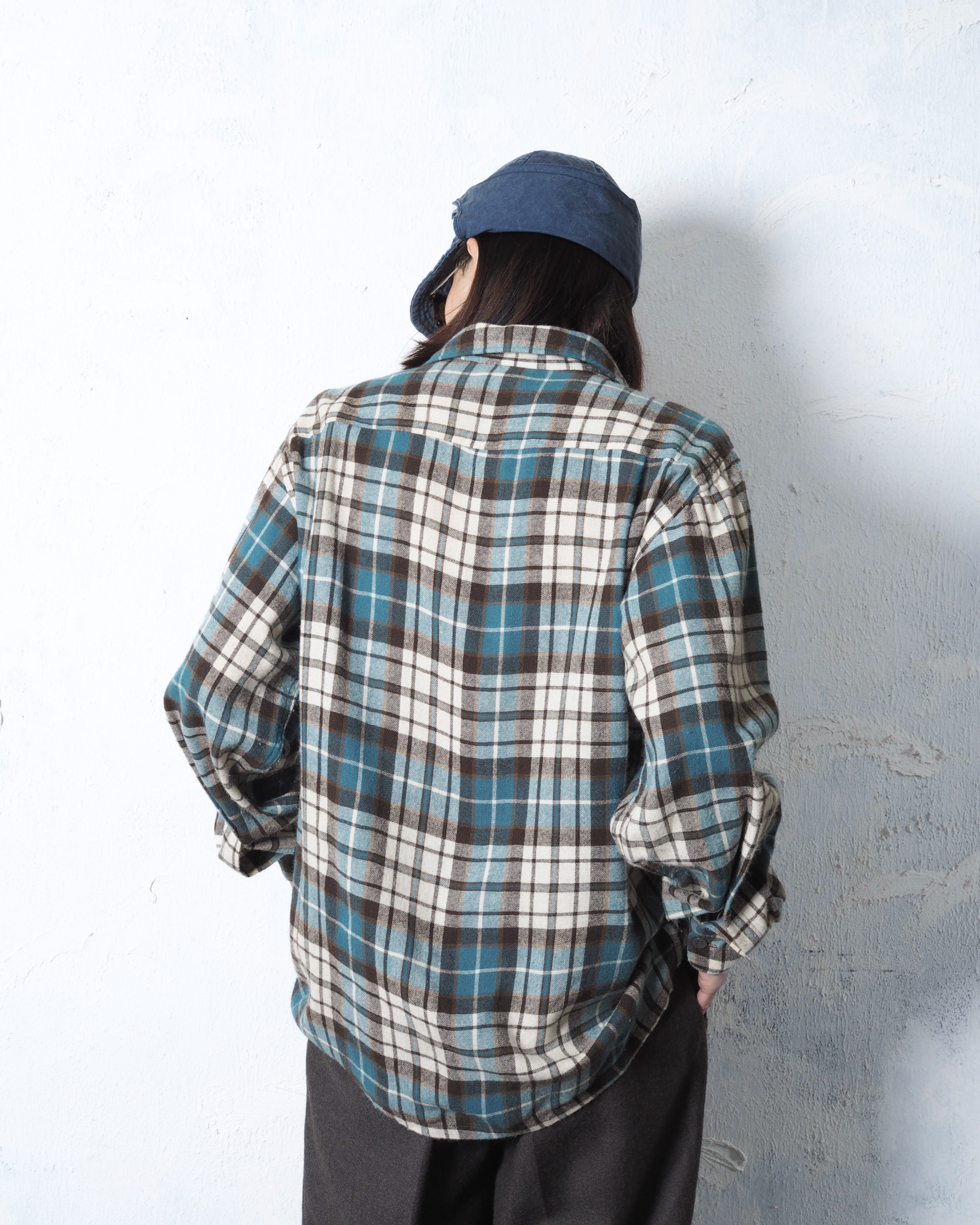 フロントは勿論オープンカラーで5つボタン仕様、暖色が多い印象のネルですが、ここでは寒色をピック
