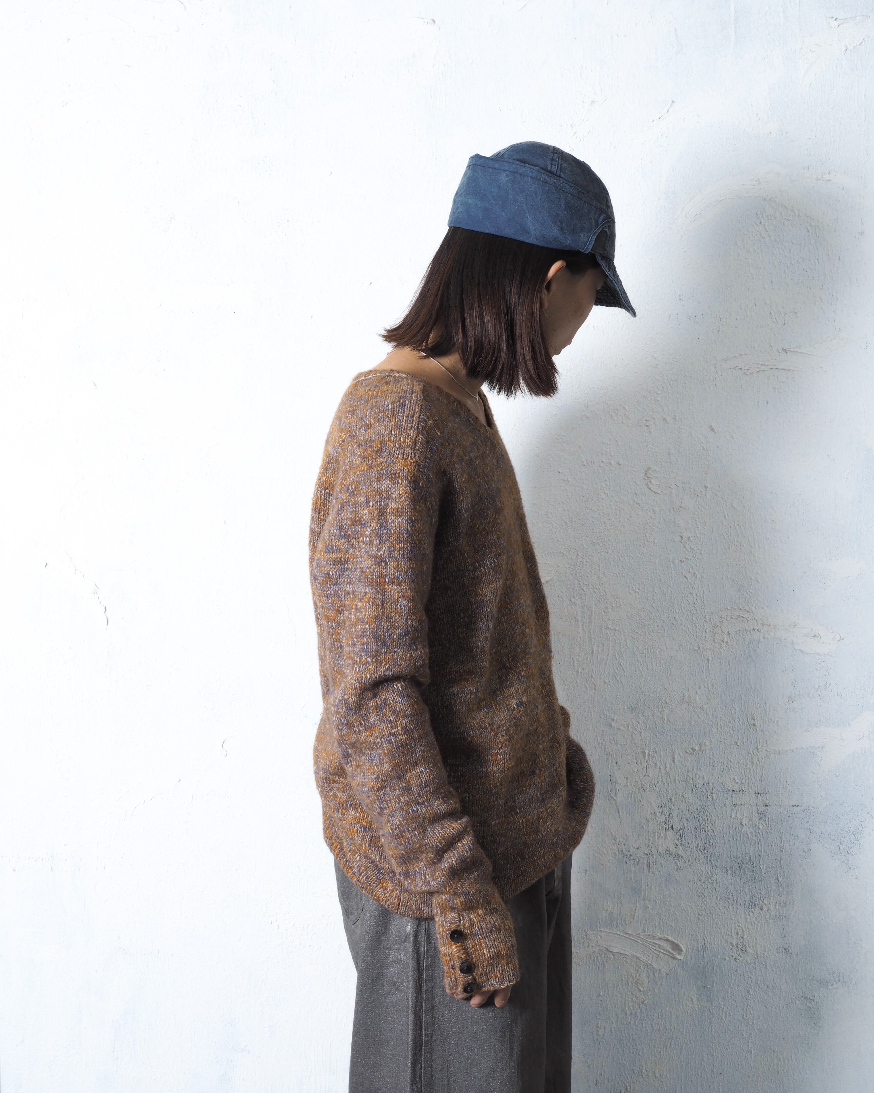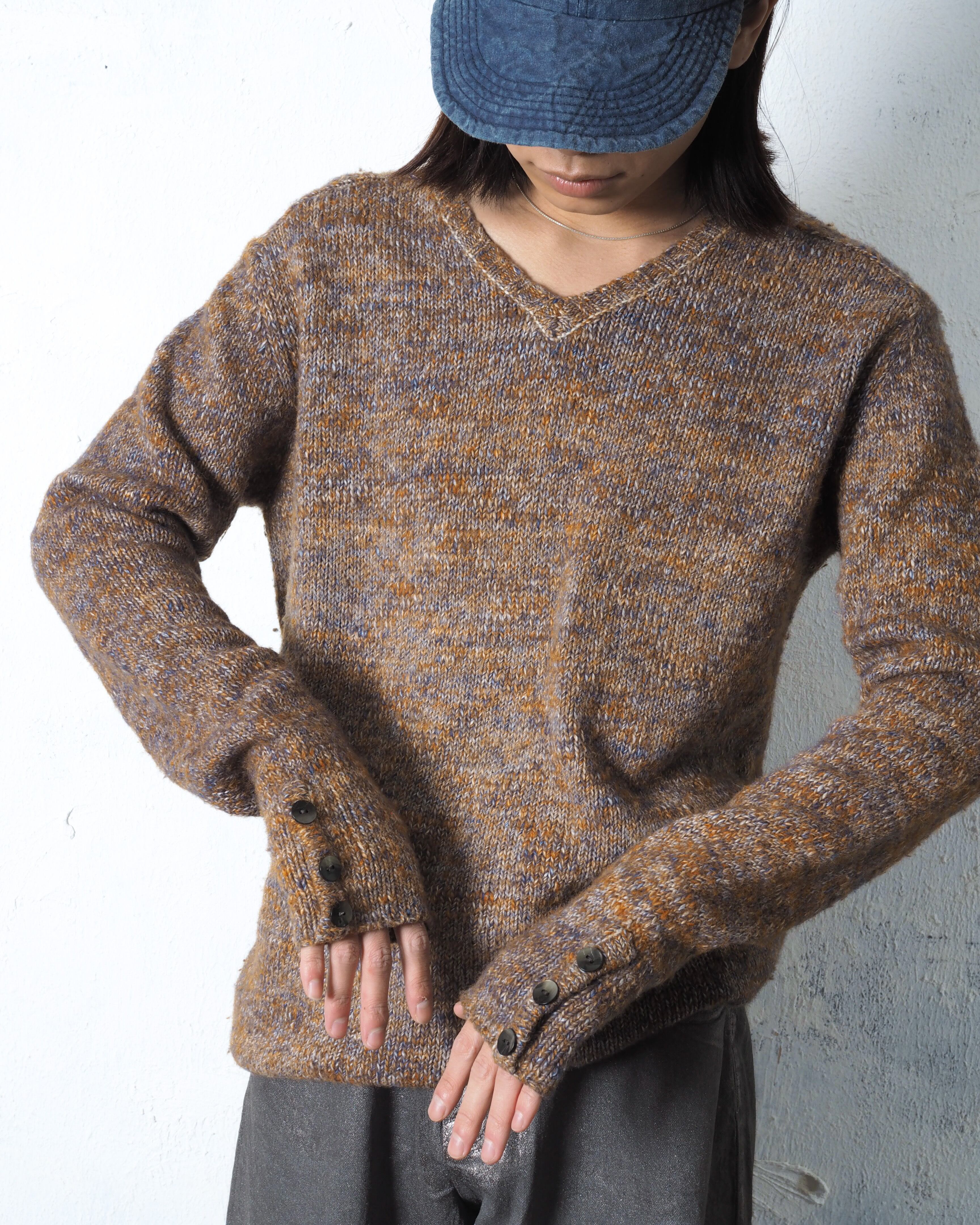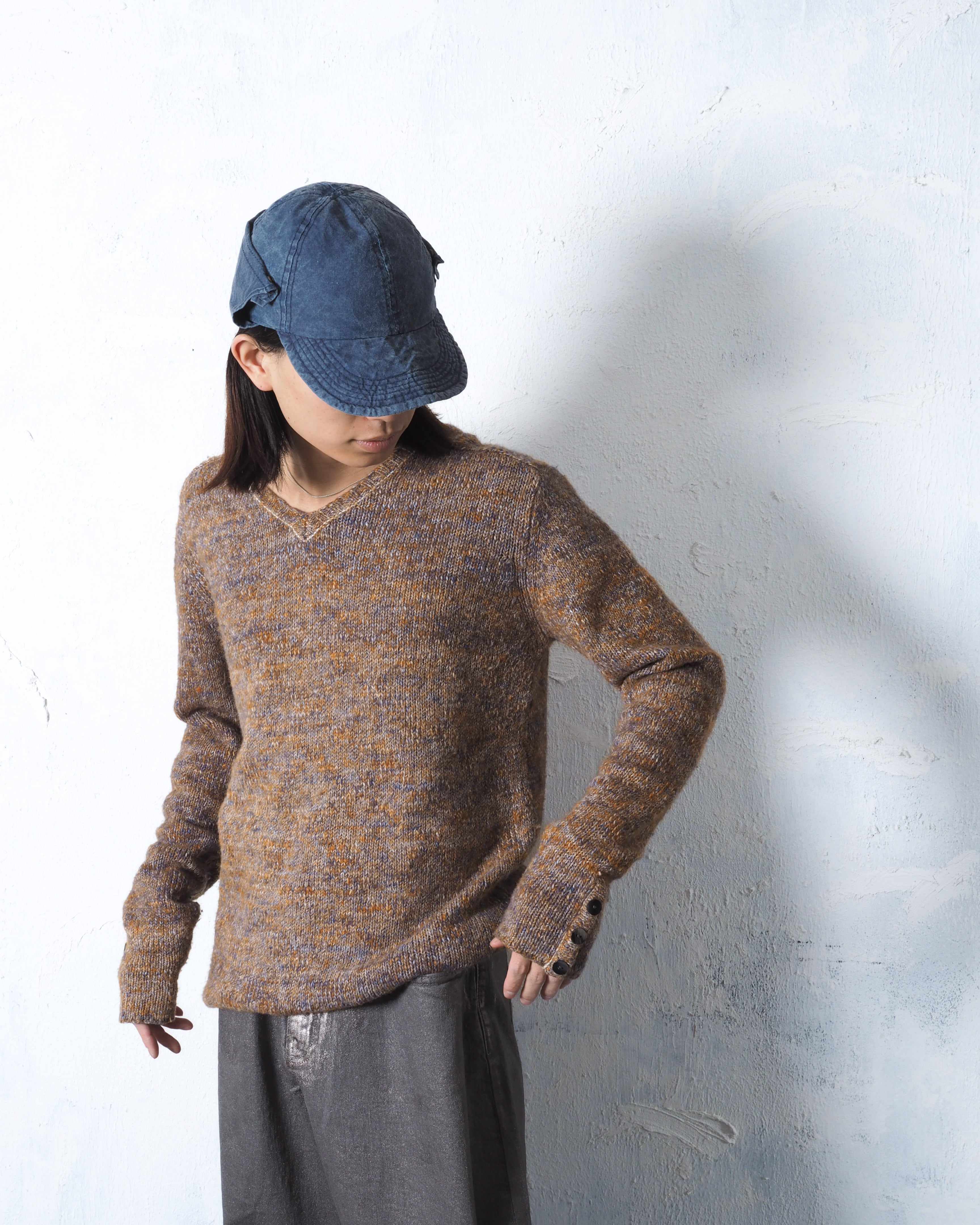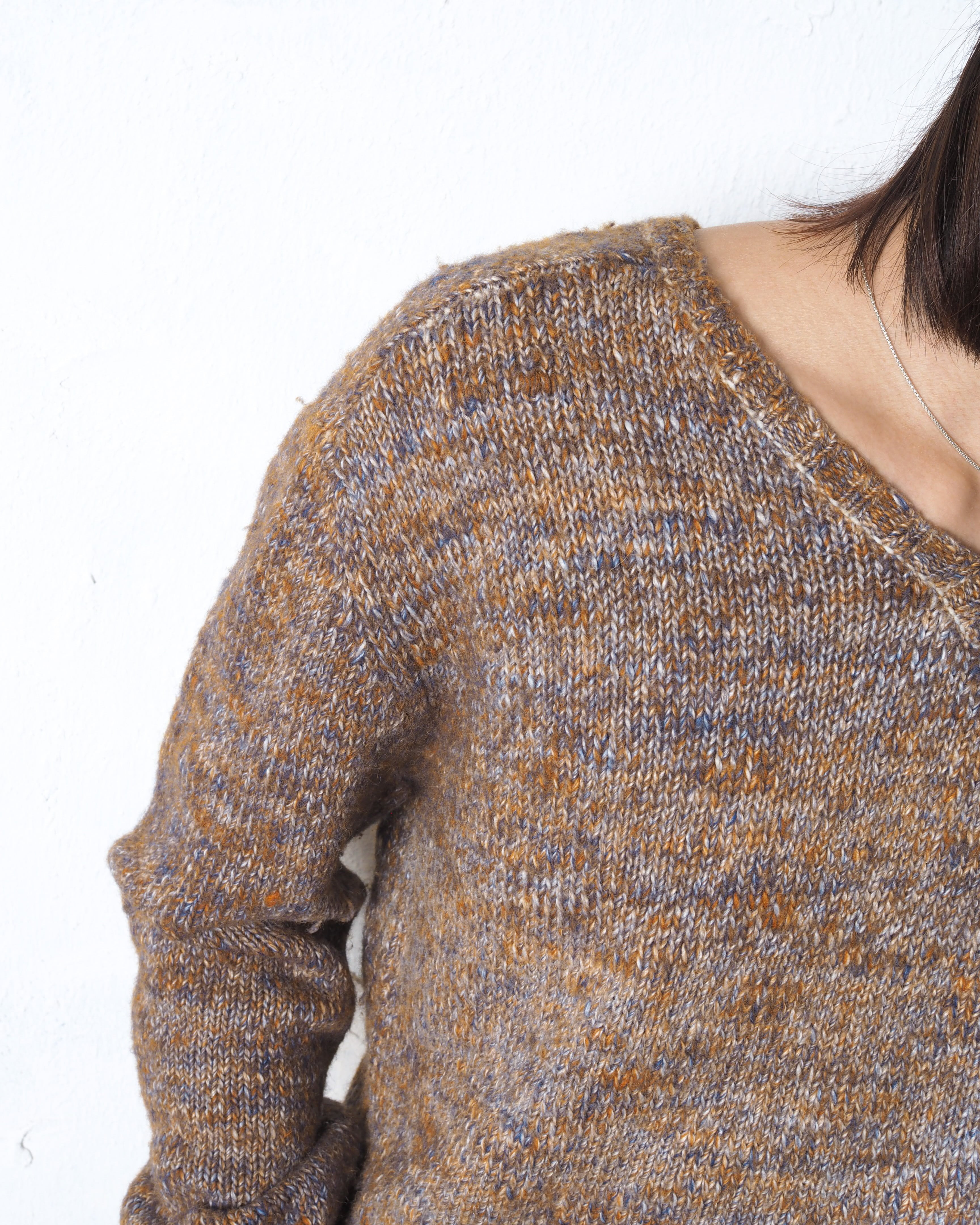Vの広がり具合やリブの長さ、アームの太さなどなどかなり計算されていて、こういう感じのシルエットで着て欲しいんだなとブランドの意図が分かるこのニット