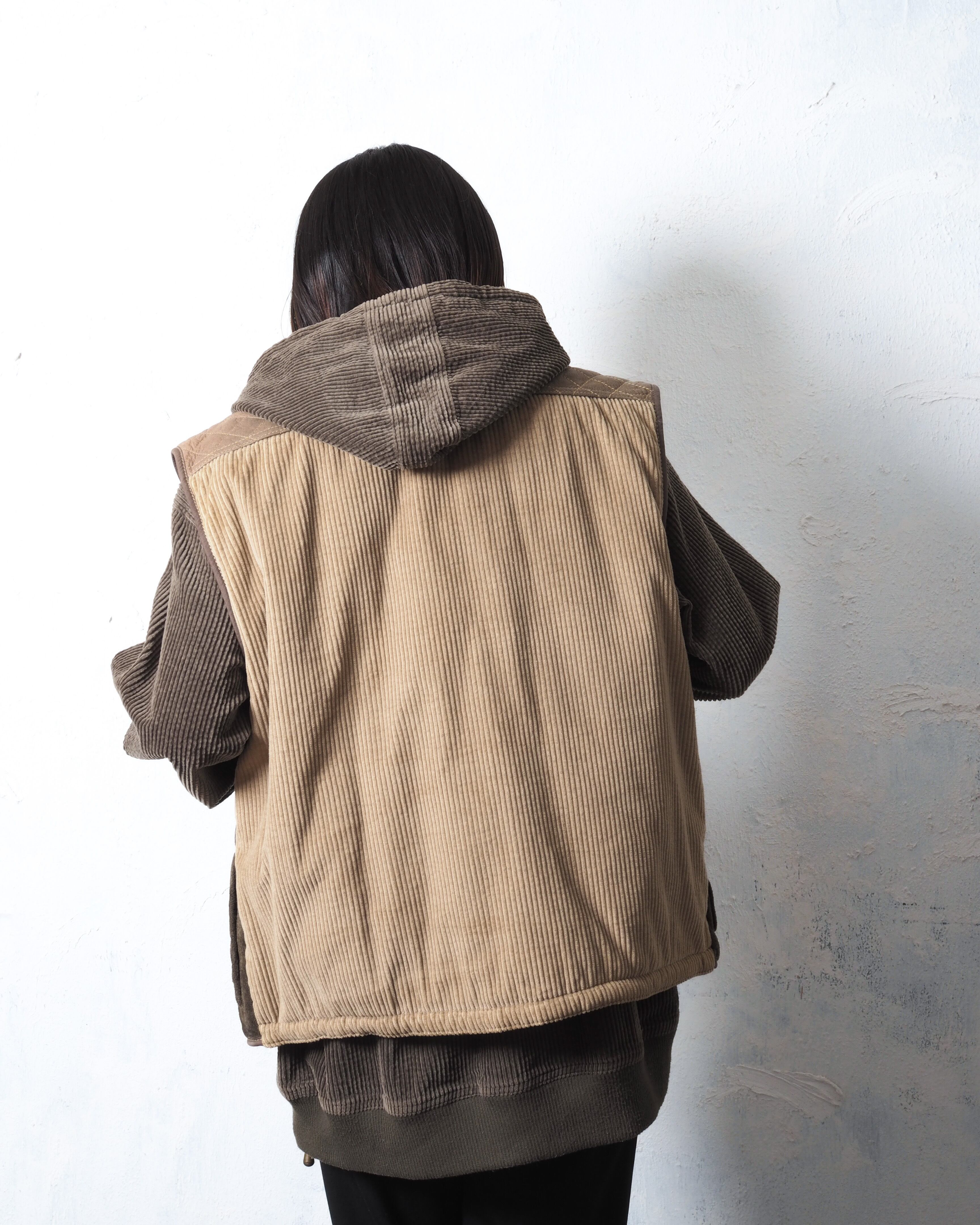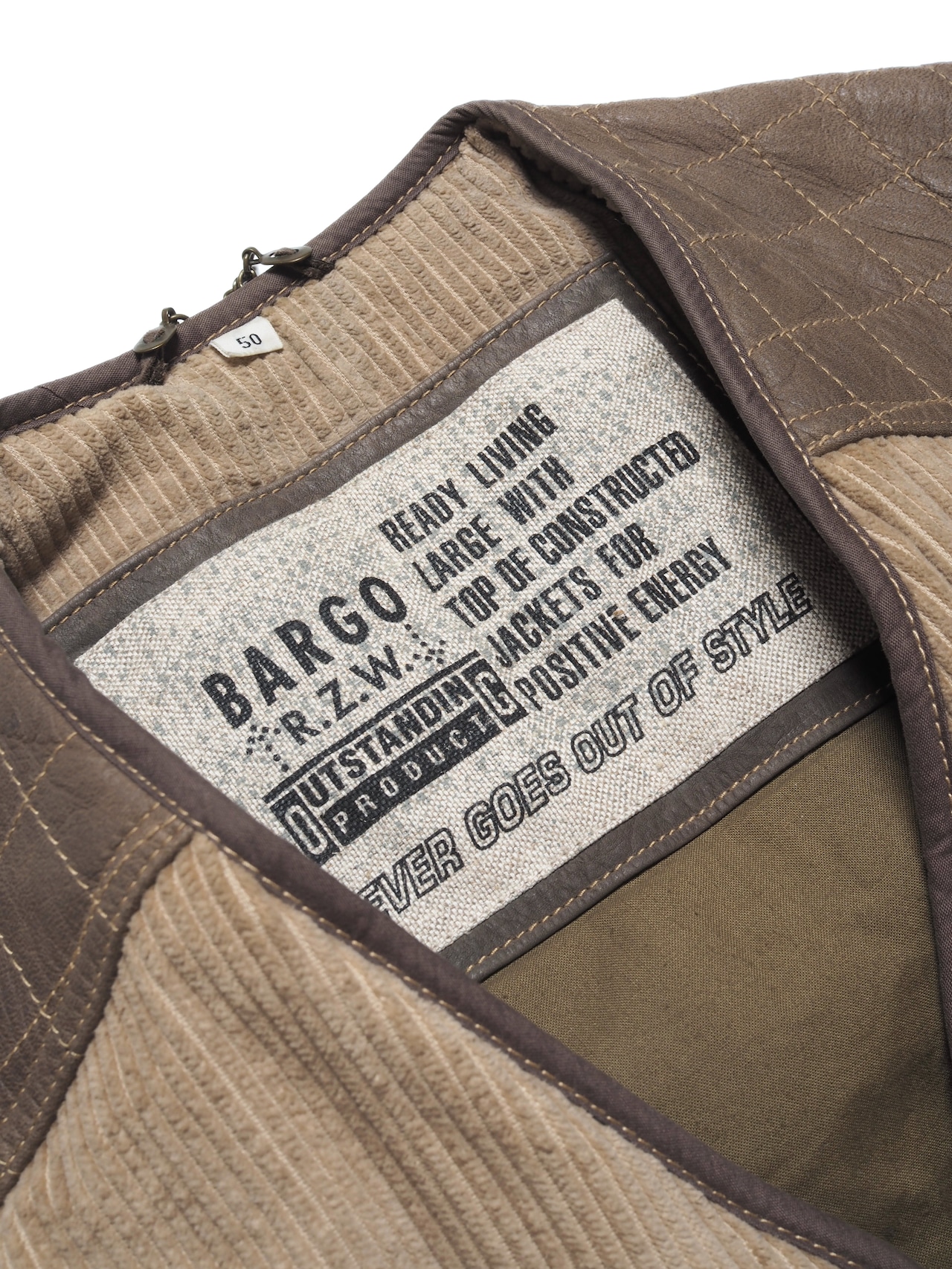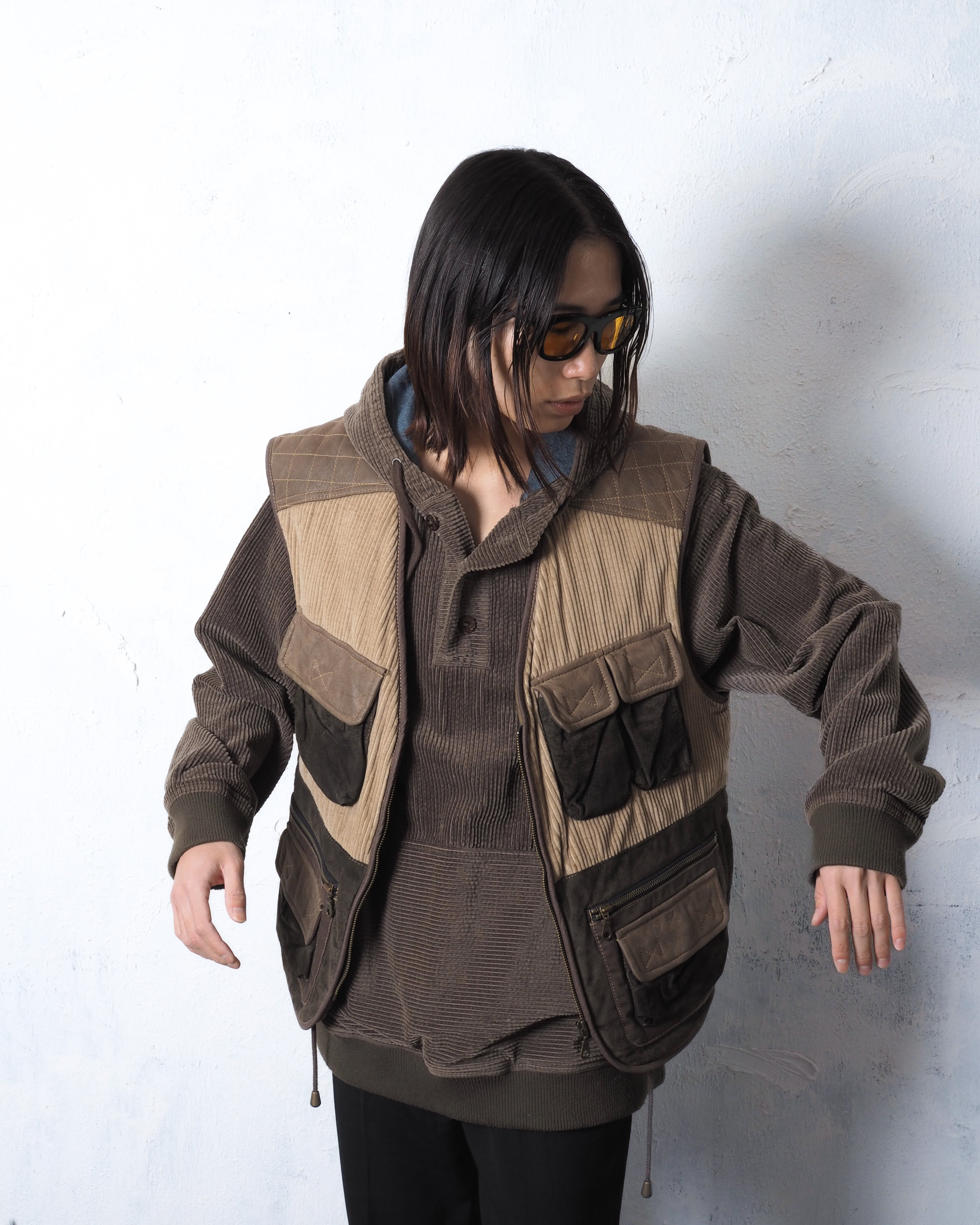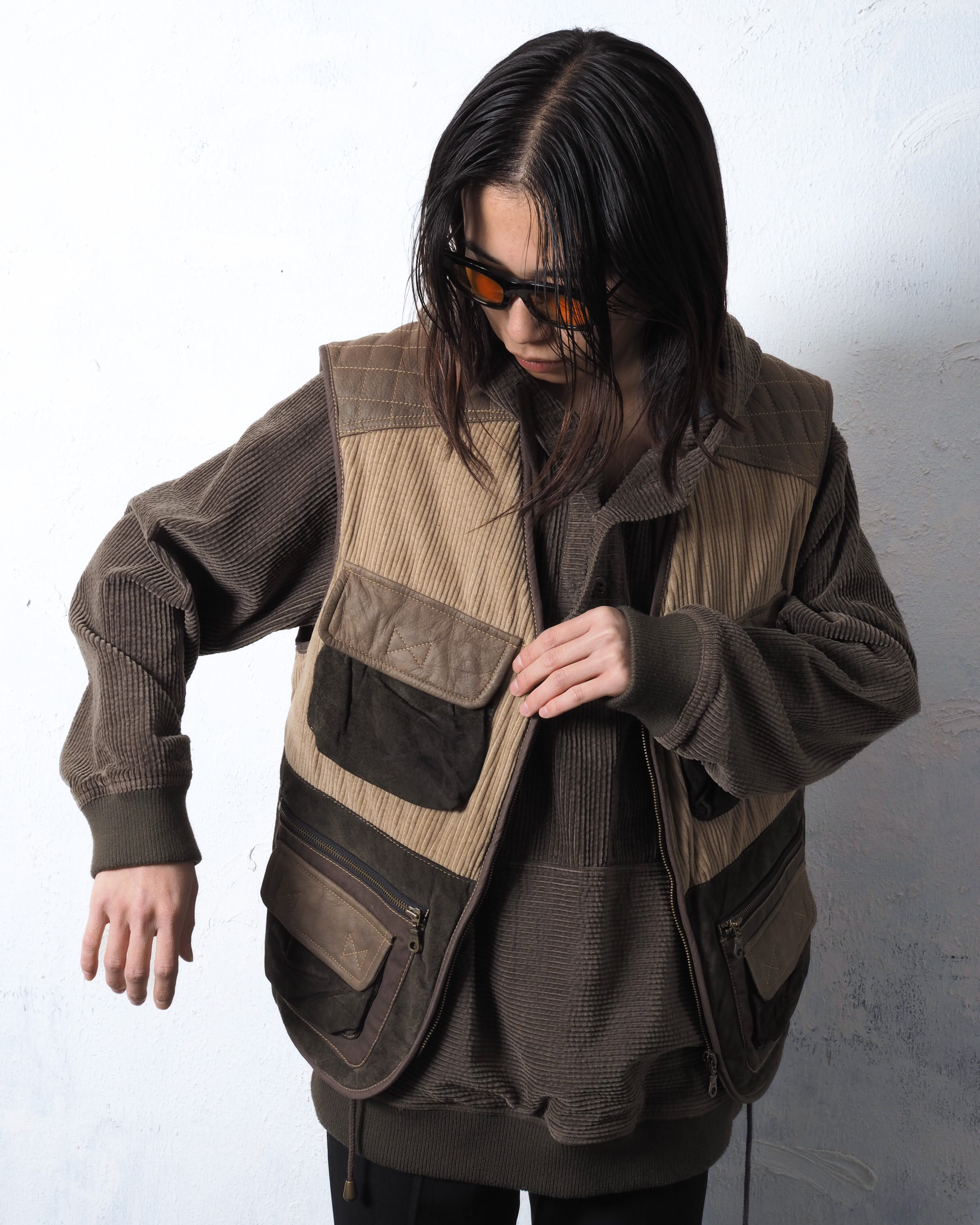 コーデュロイ、スウェード、シープレザーの贅沢な素材選びで裾にはドロストが付いたハンティングディテール