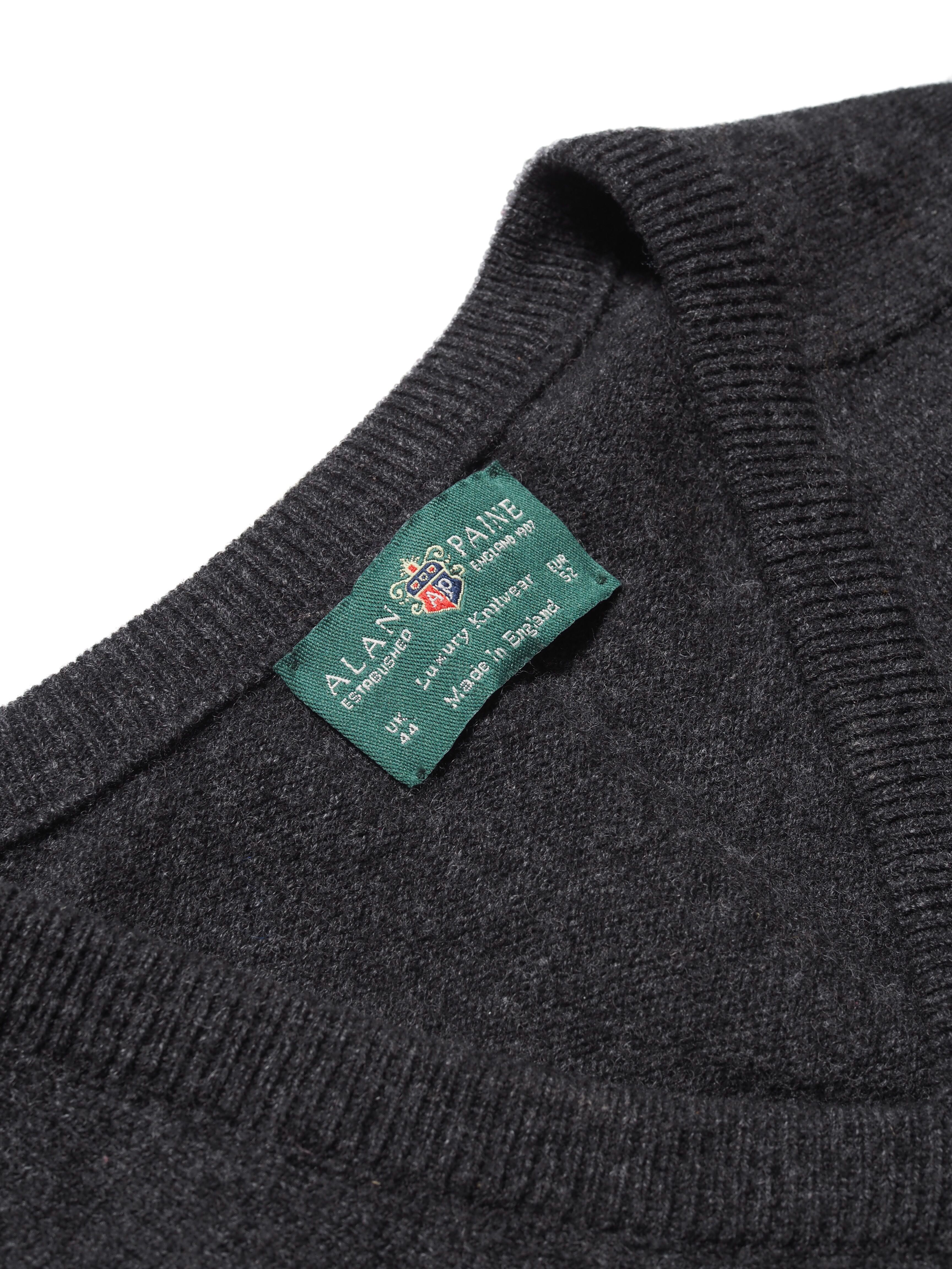 シンプルながらも程よい色気と洒落っ気が出るVネックニットから、イングランドメイドの質の高い一着をピック