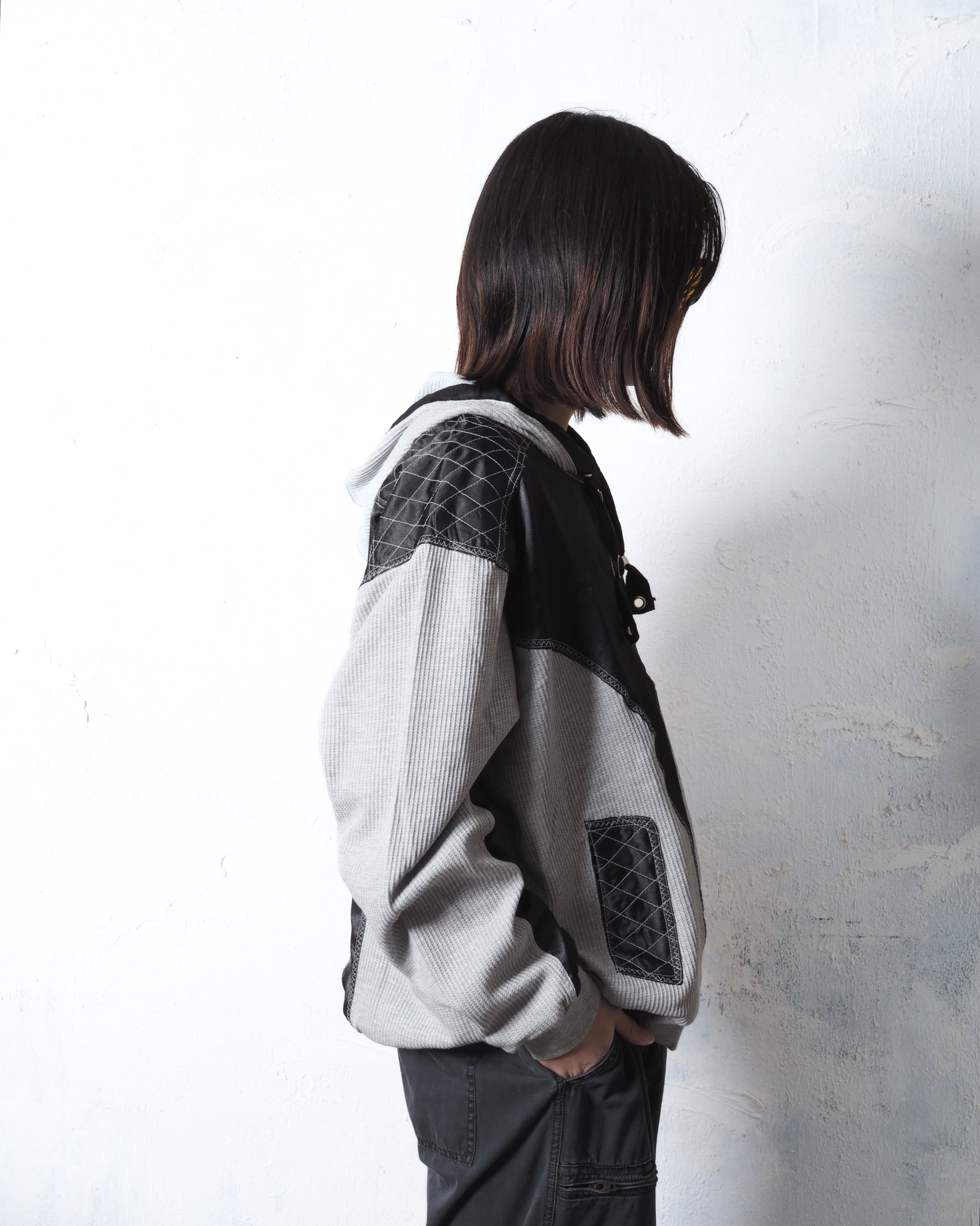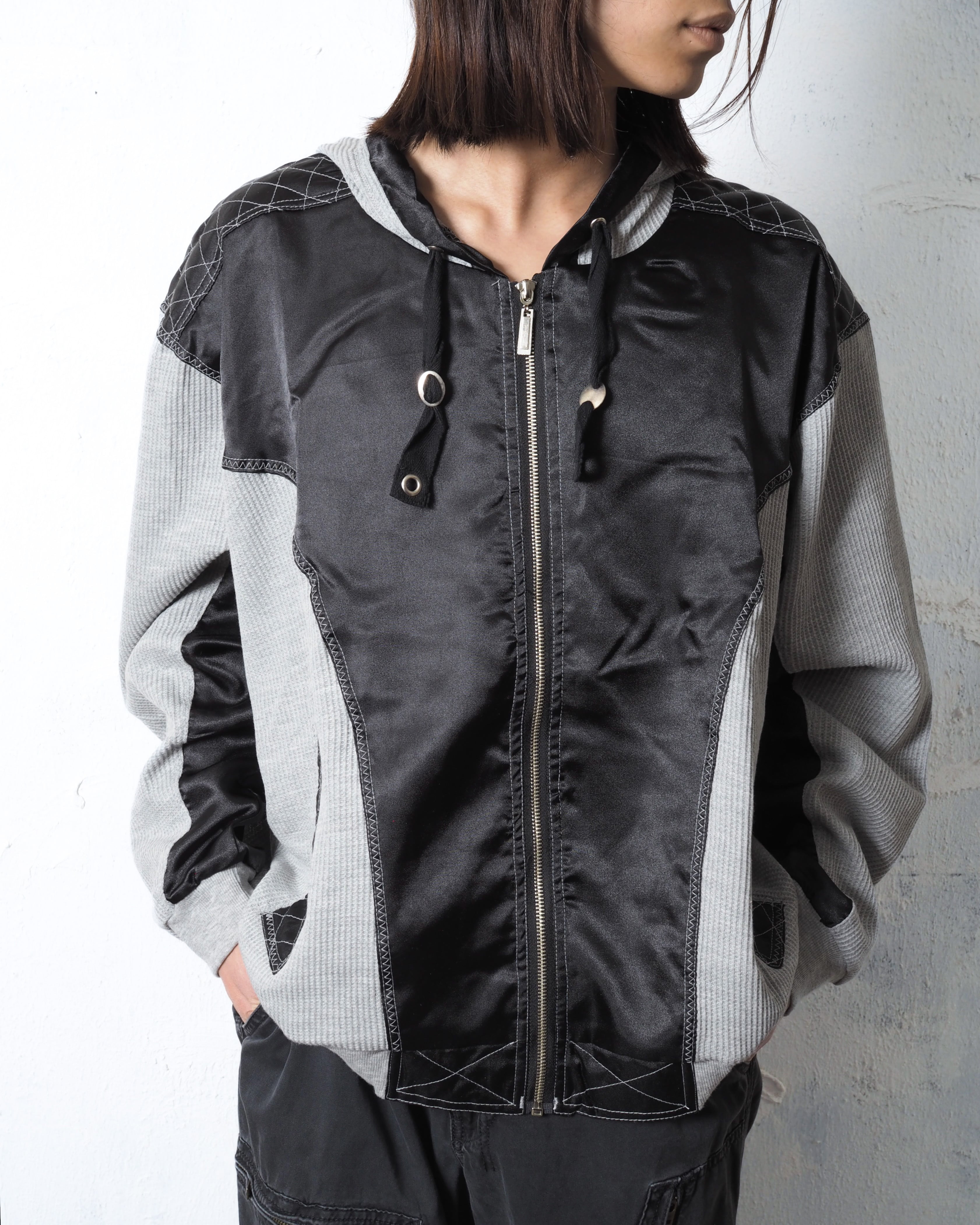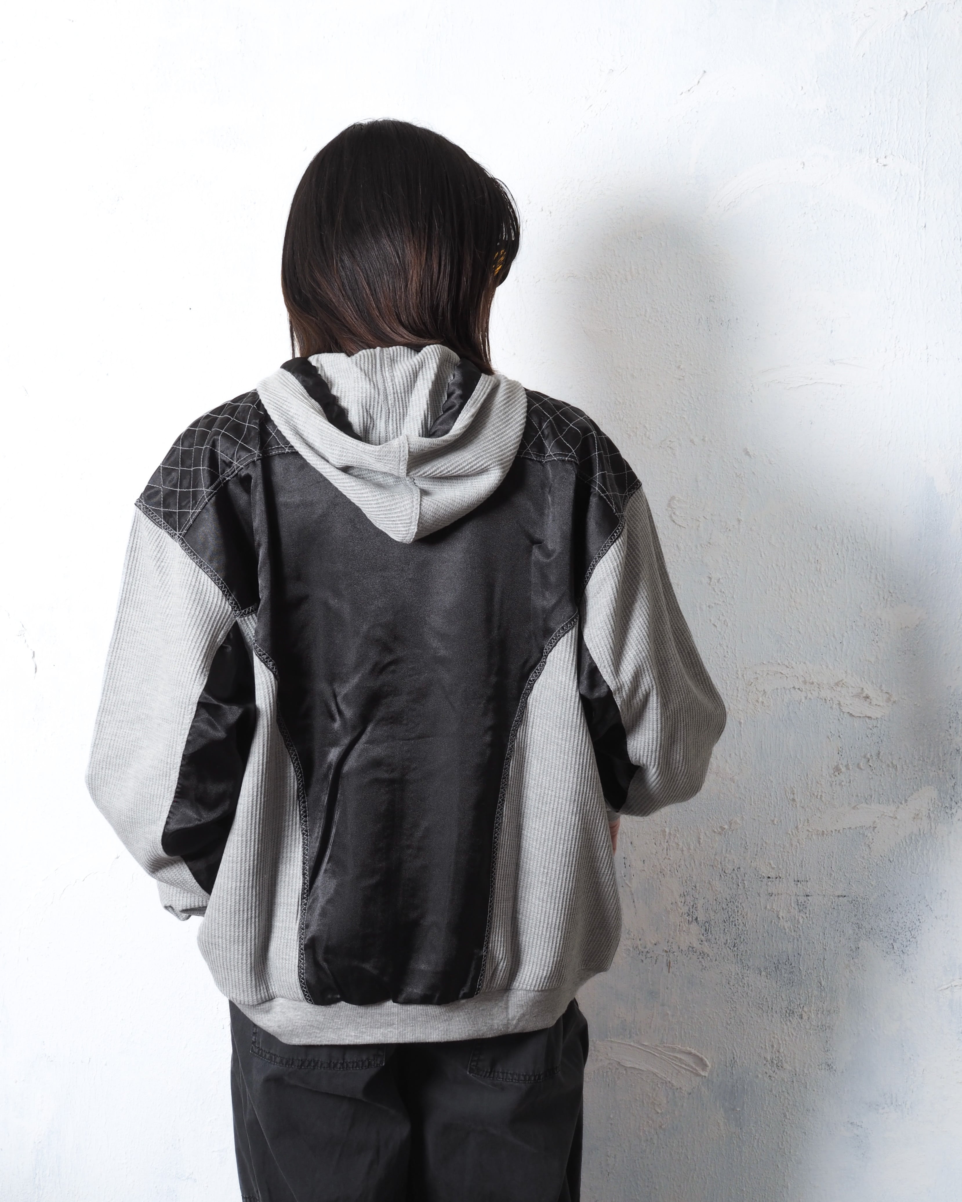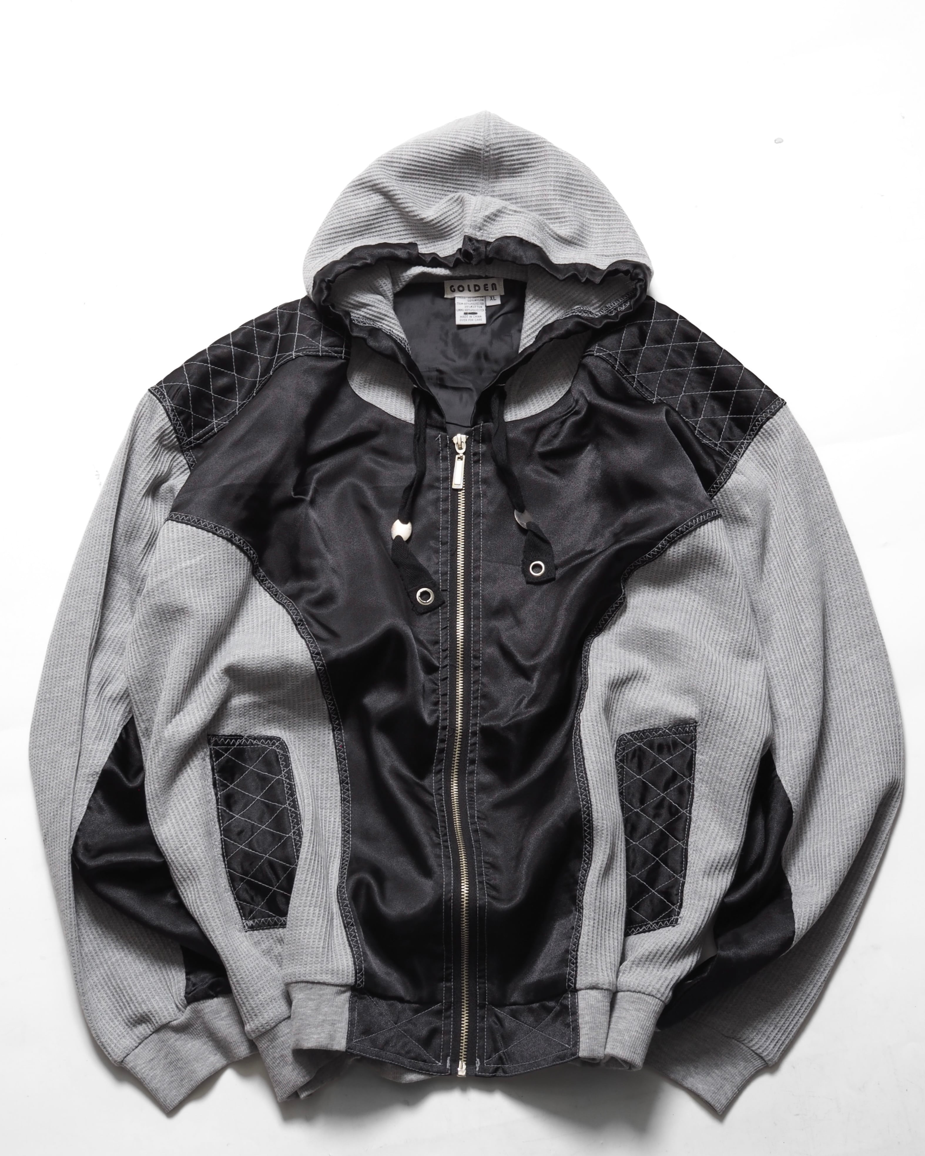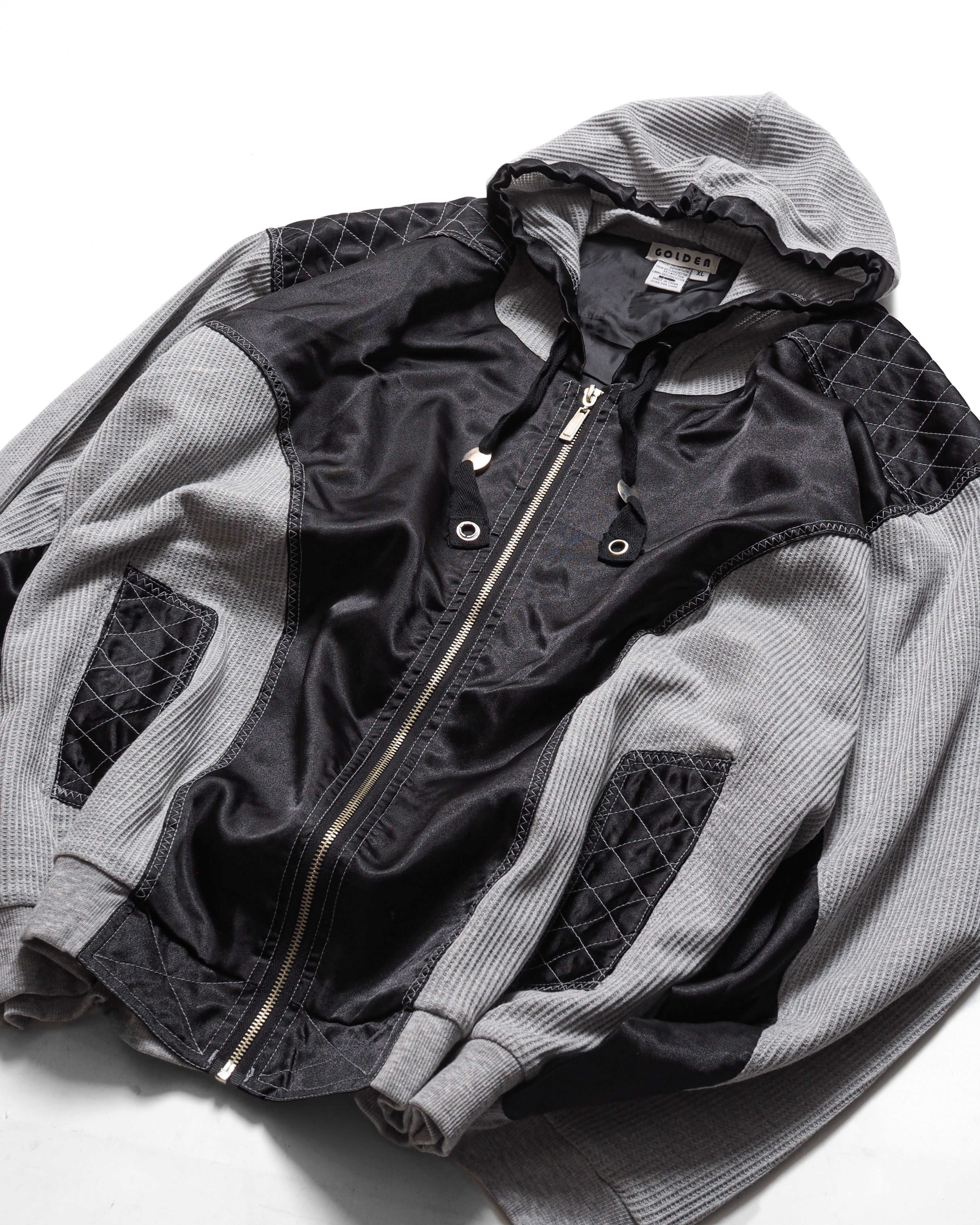 ナイロン、ワッフル、キルティング、興味を唆るスイッチングでジップアップのフーディ