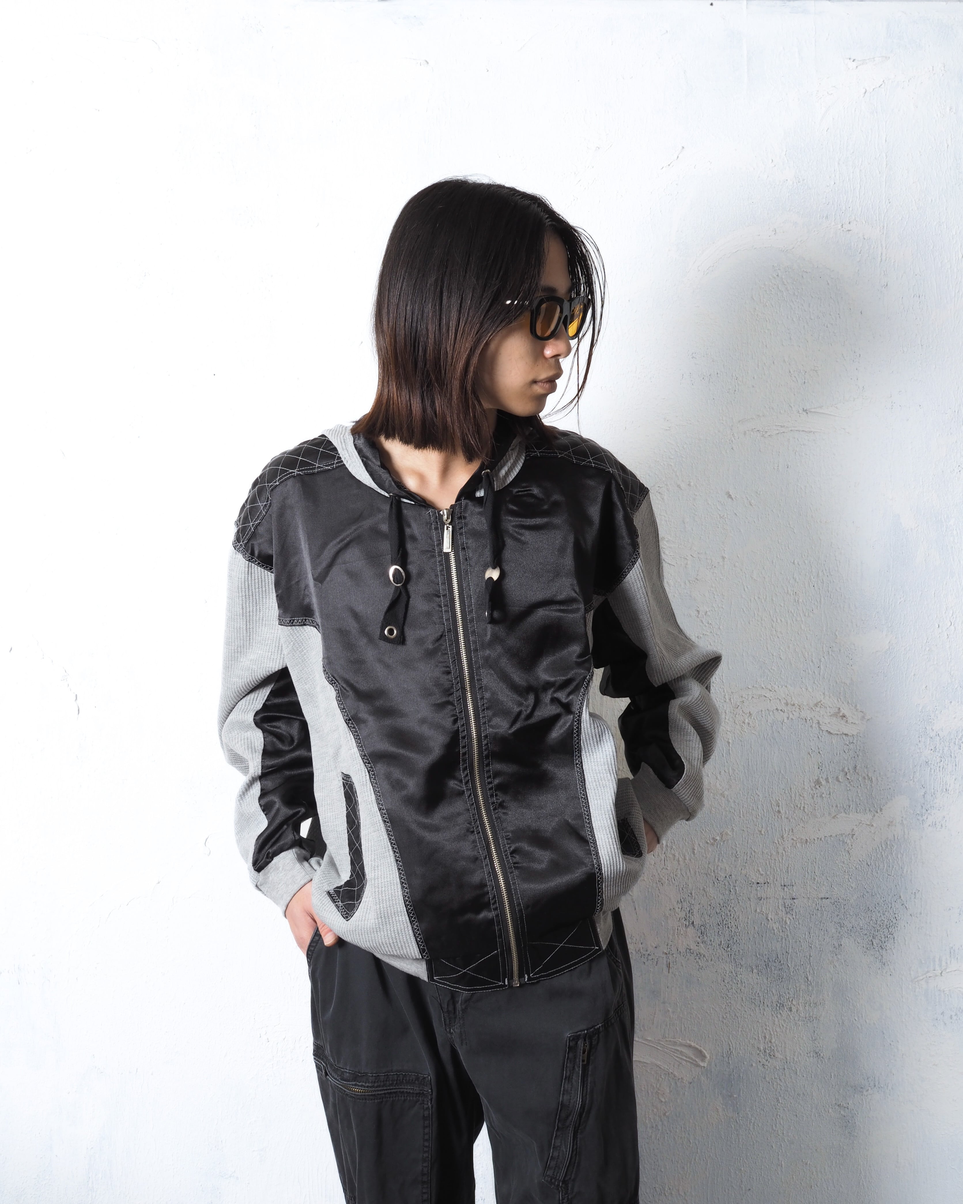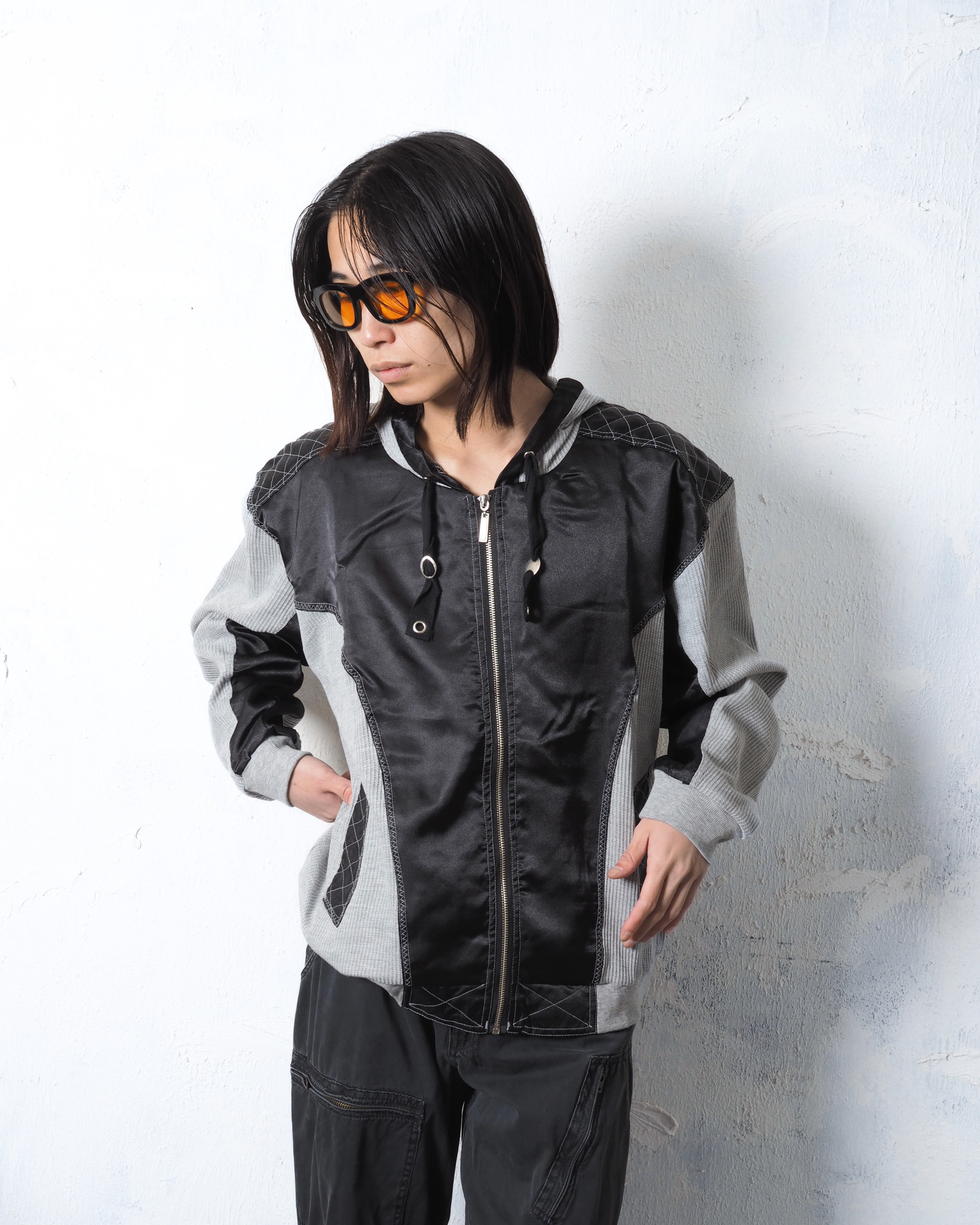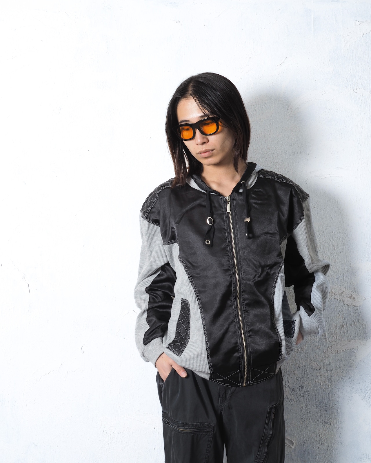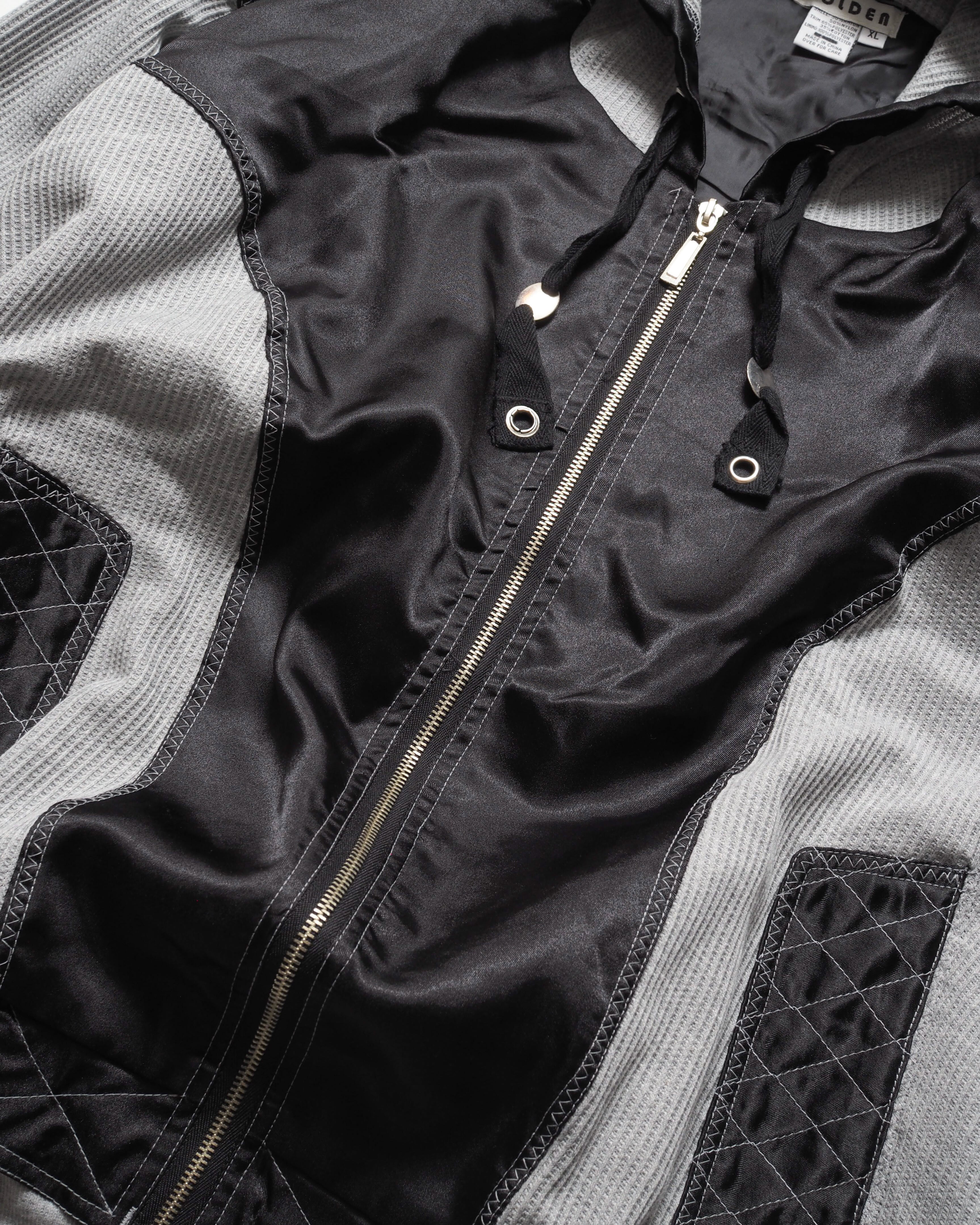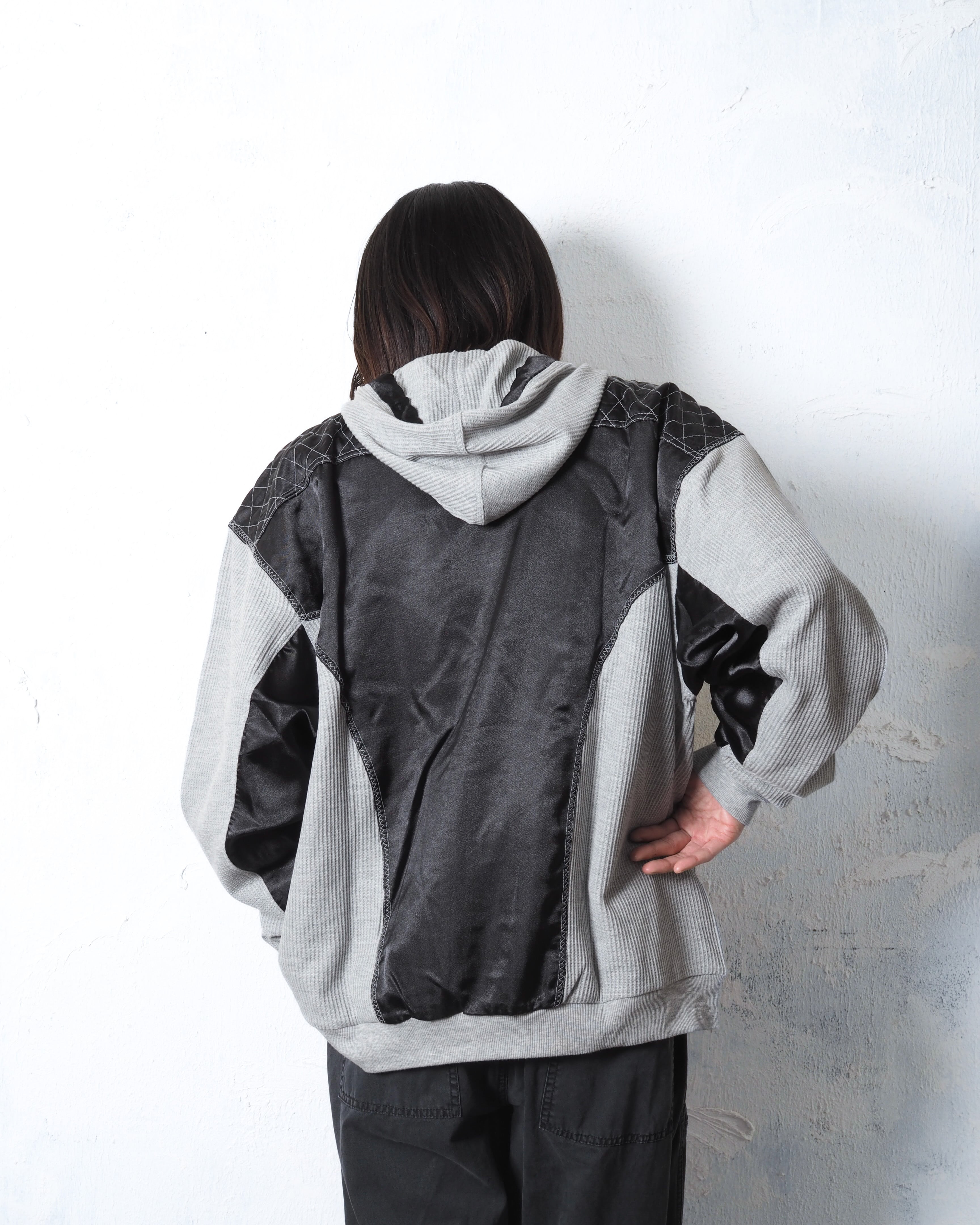 ナイロン、ワッフル、キルティング、興味を唆るスイッチングでジップアップのフーディ