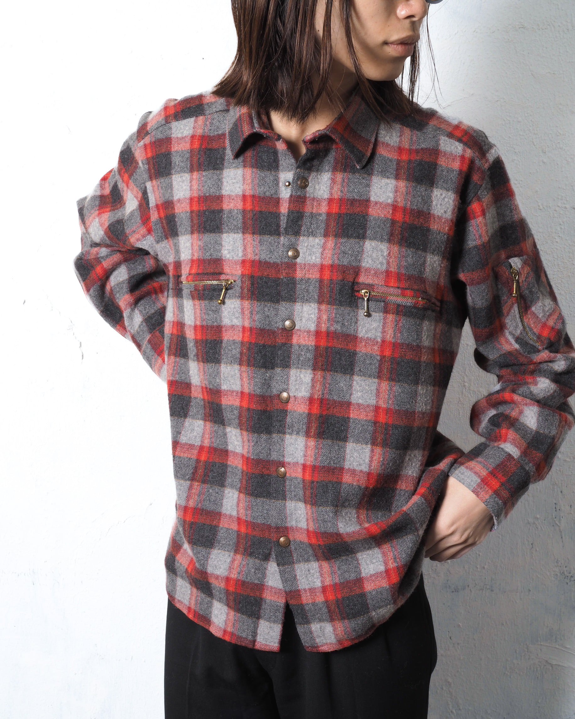イタリアメイド、ウールにプラスでビスコースがミックスされたネルシャツ