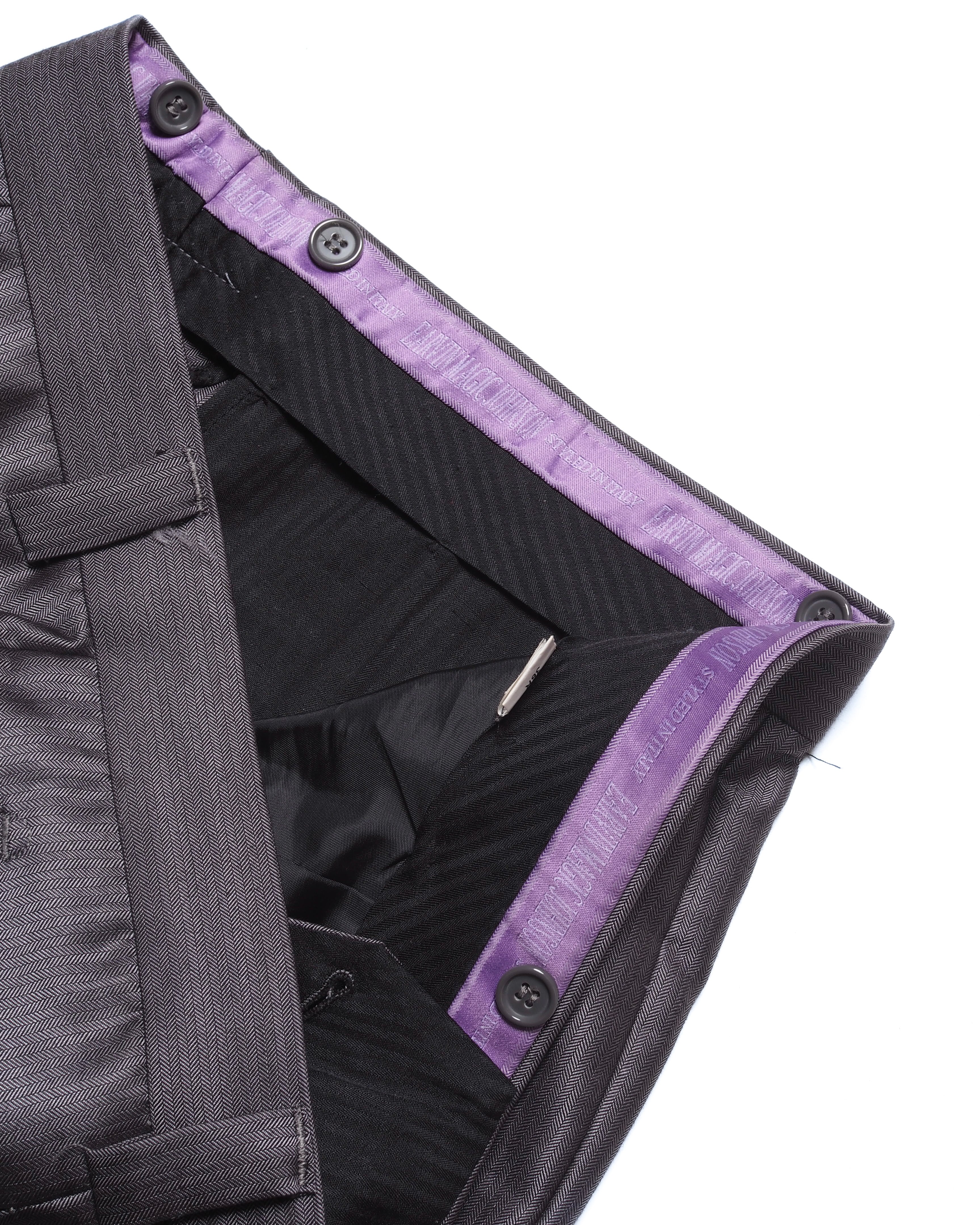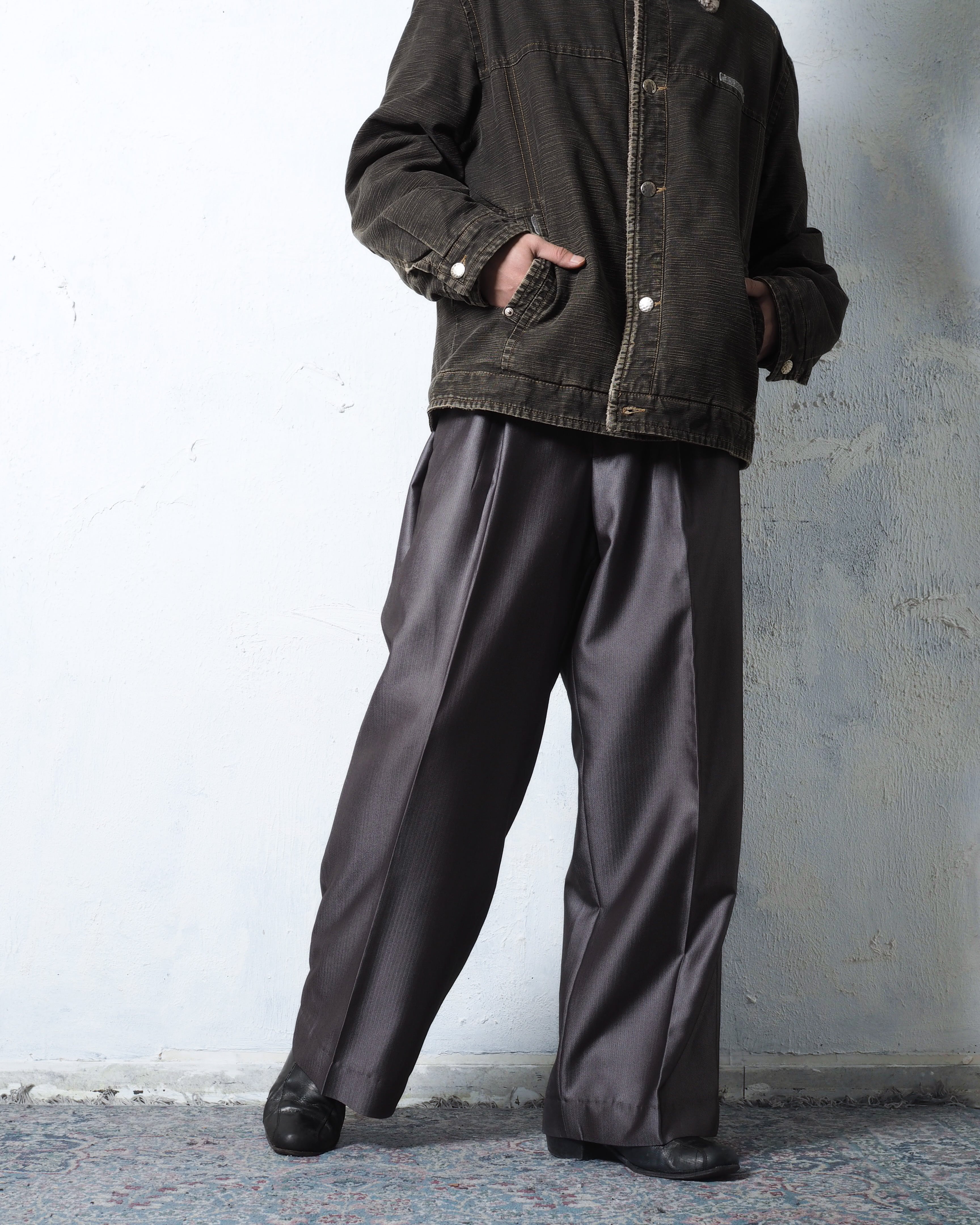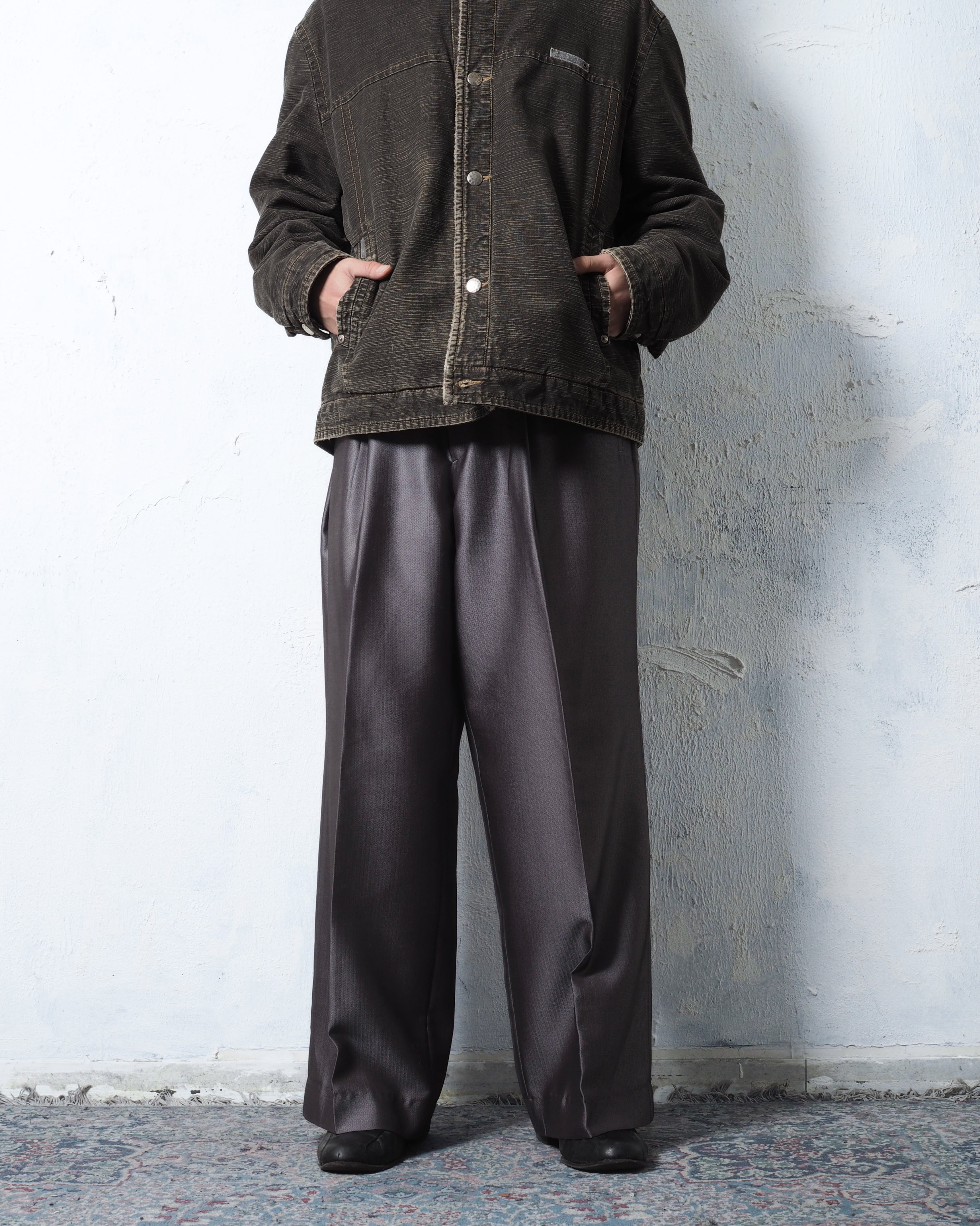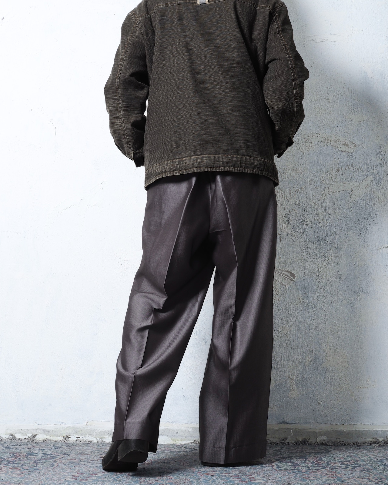 こちらは裾幅30cmでワンタックとセンタープレス、ヘリンボーン織なのでまじまじと見たらストライプにも見える一本
