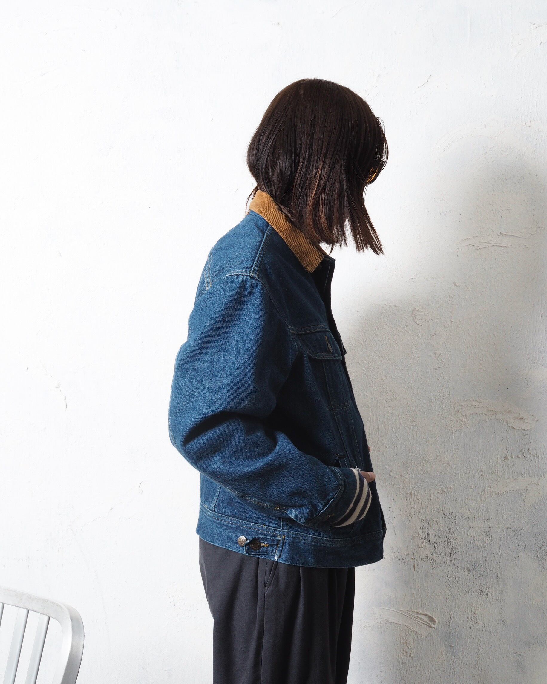 デニムジャケットの代表作の一つでもあるストームライダー、裏地は起毛のブランケットがライニング、襟はコーデュロイ