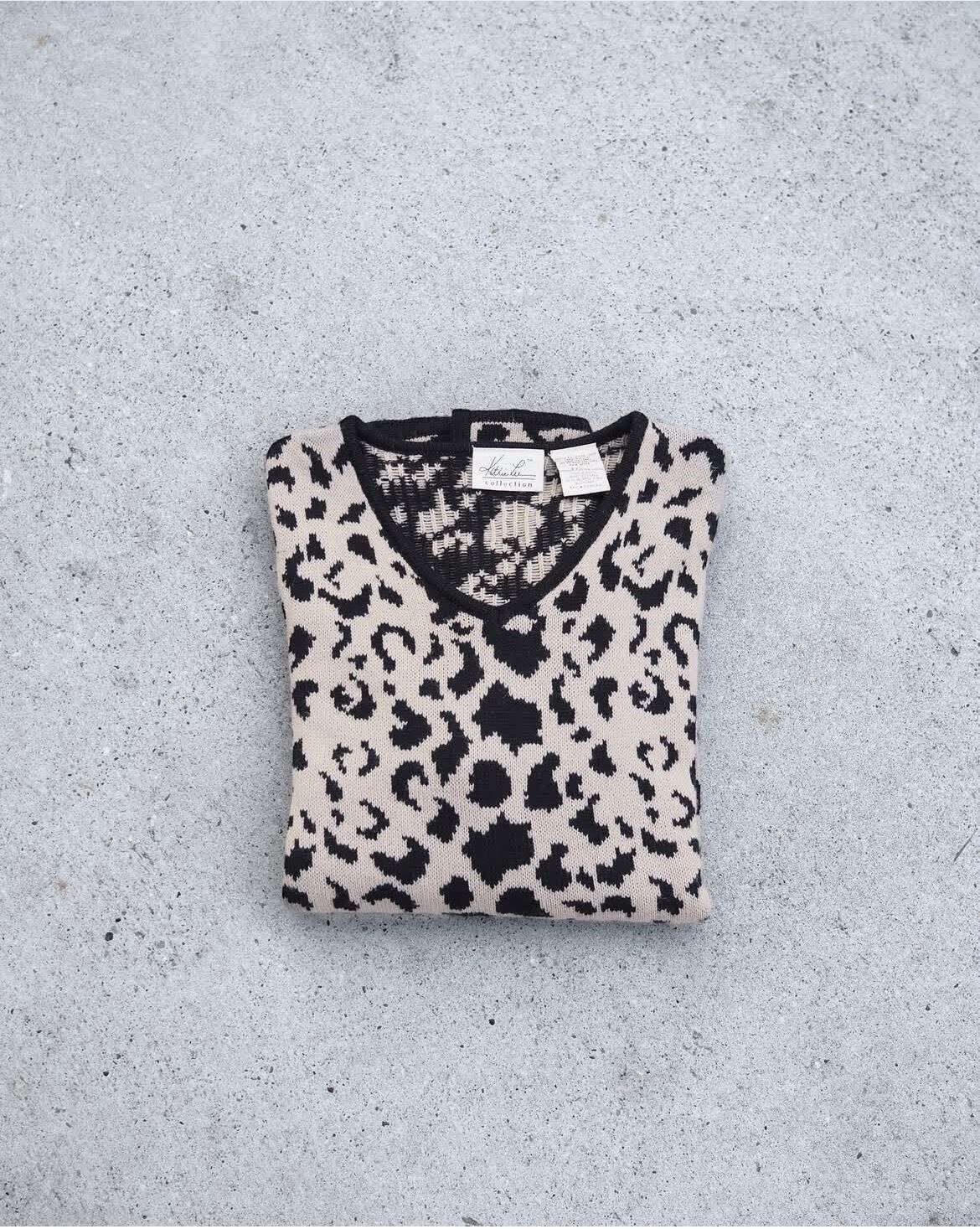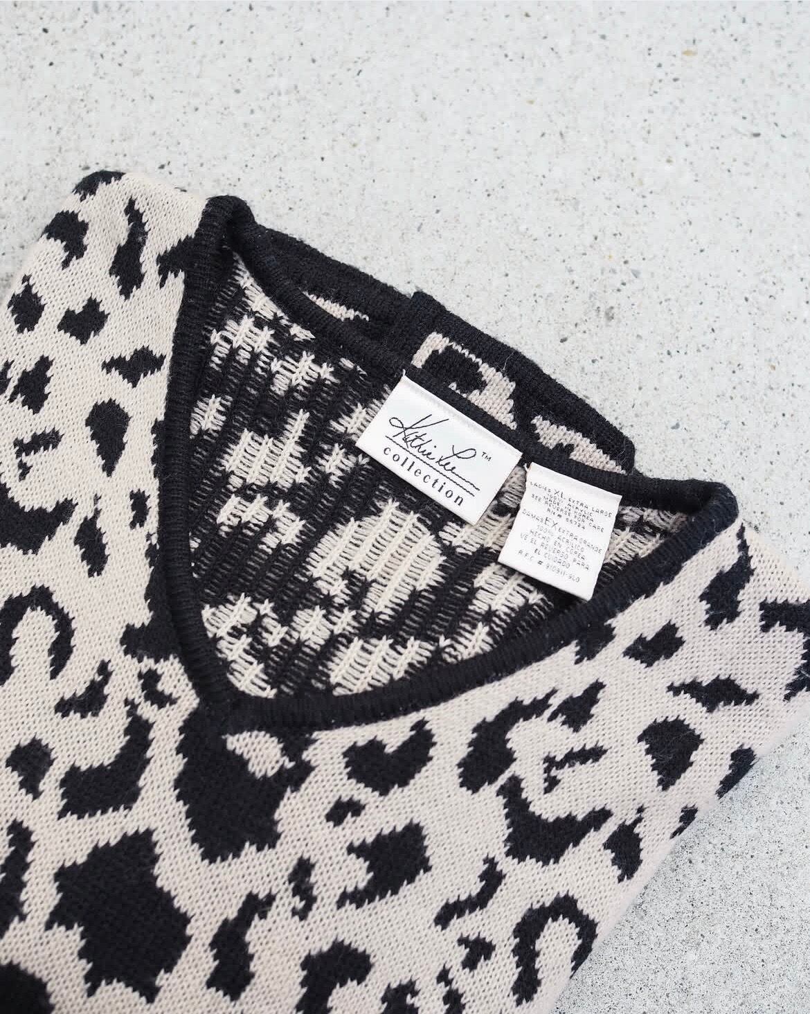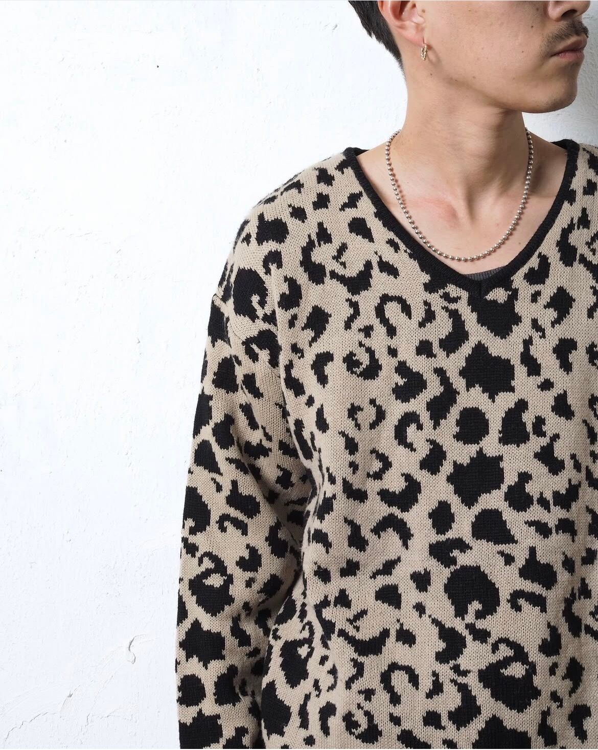 レディース仕立ての少しチャラめなレオパードパターンVネックニット