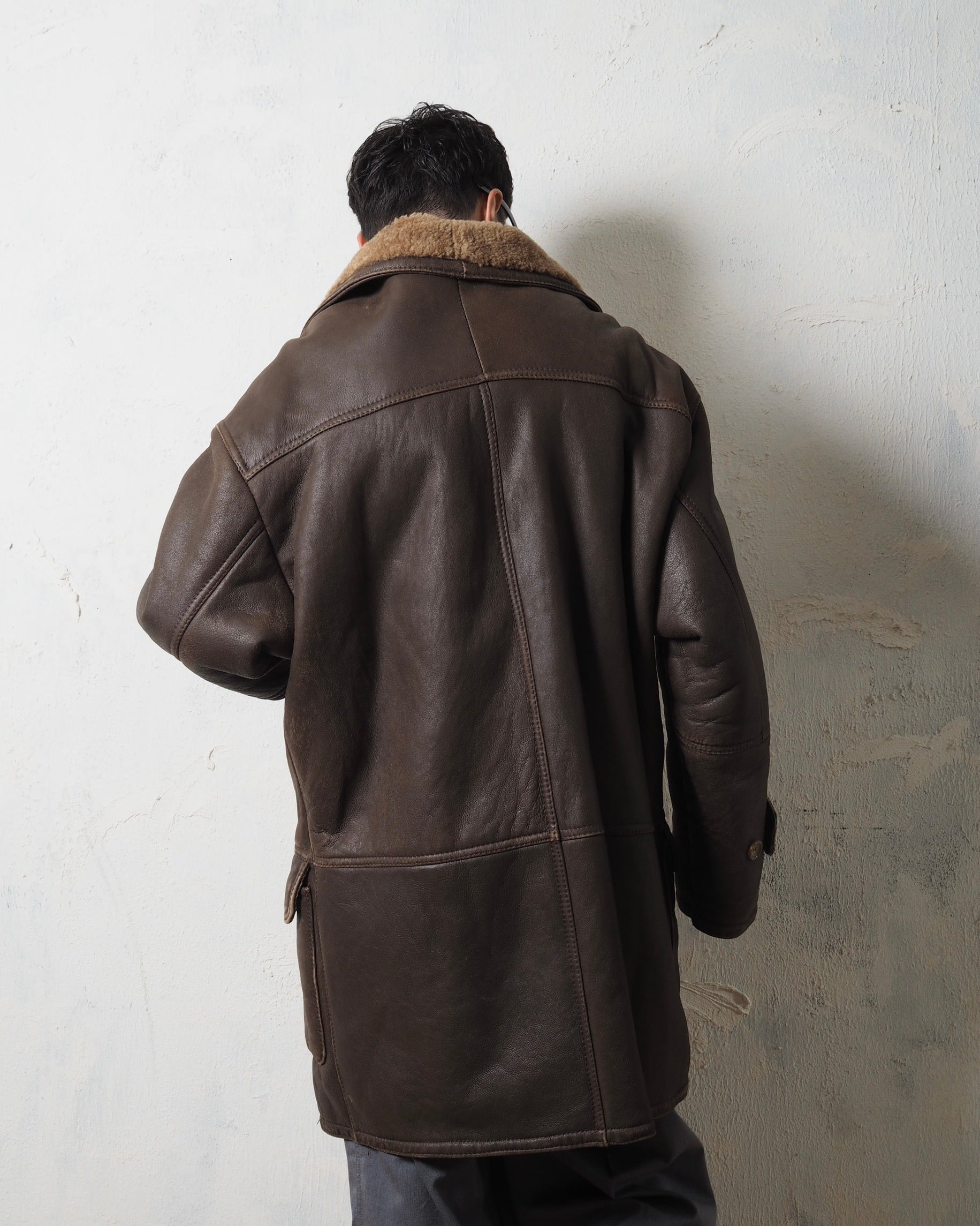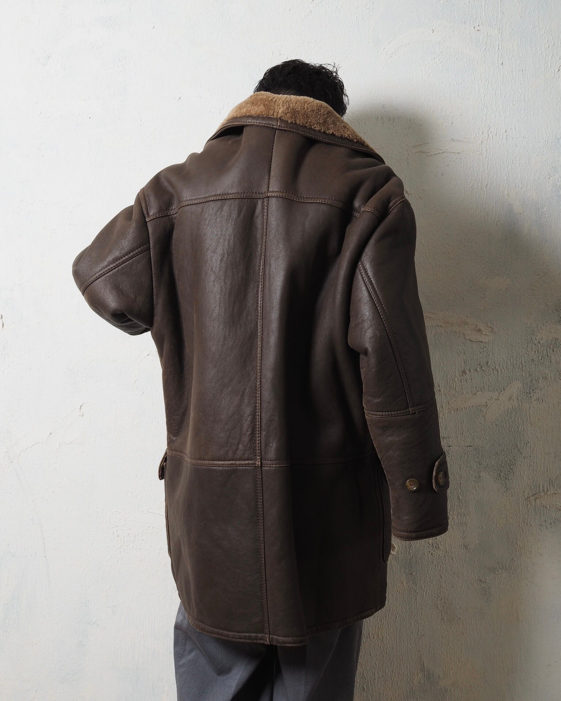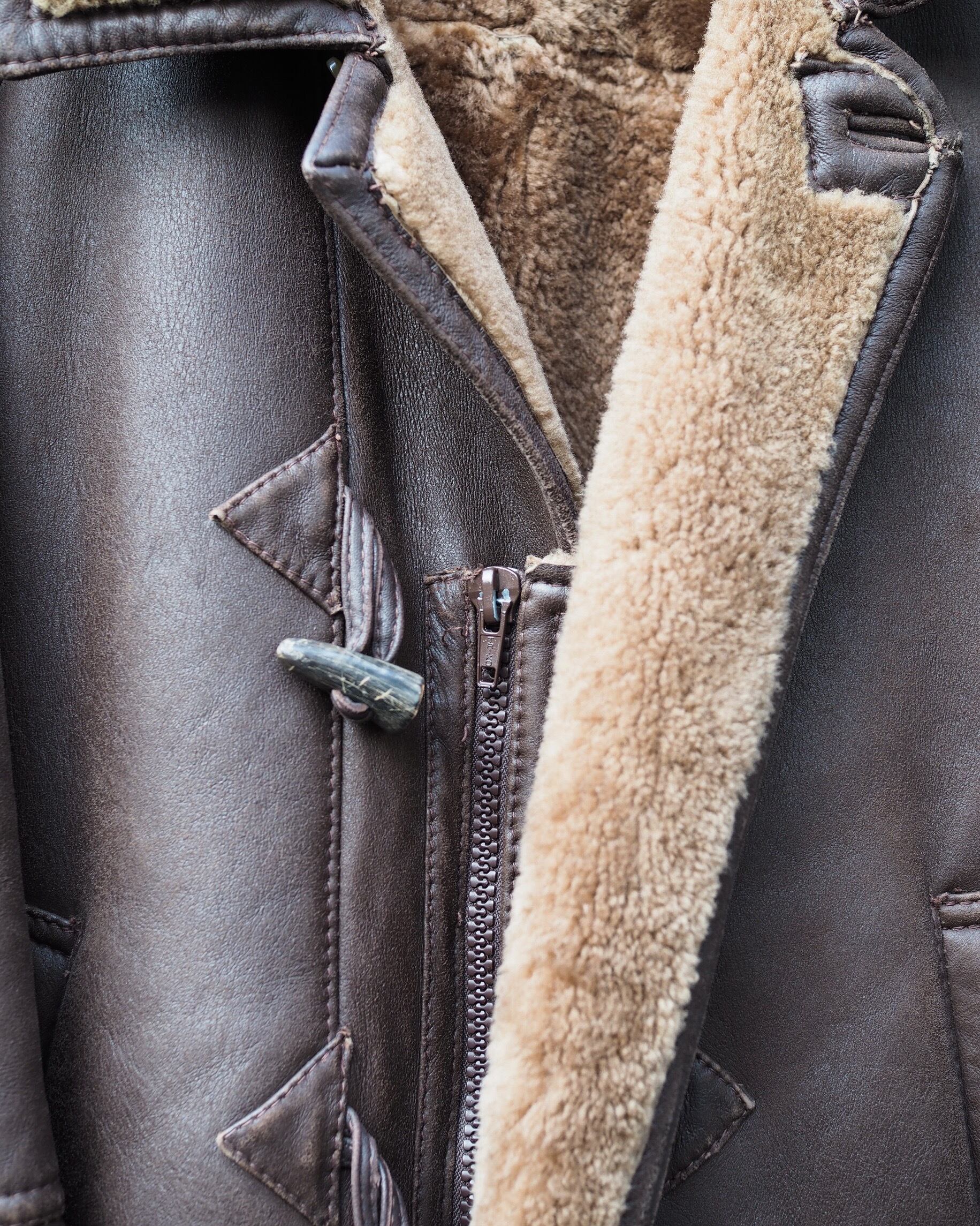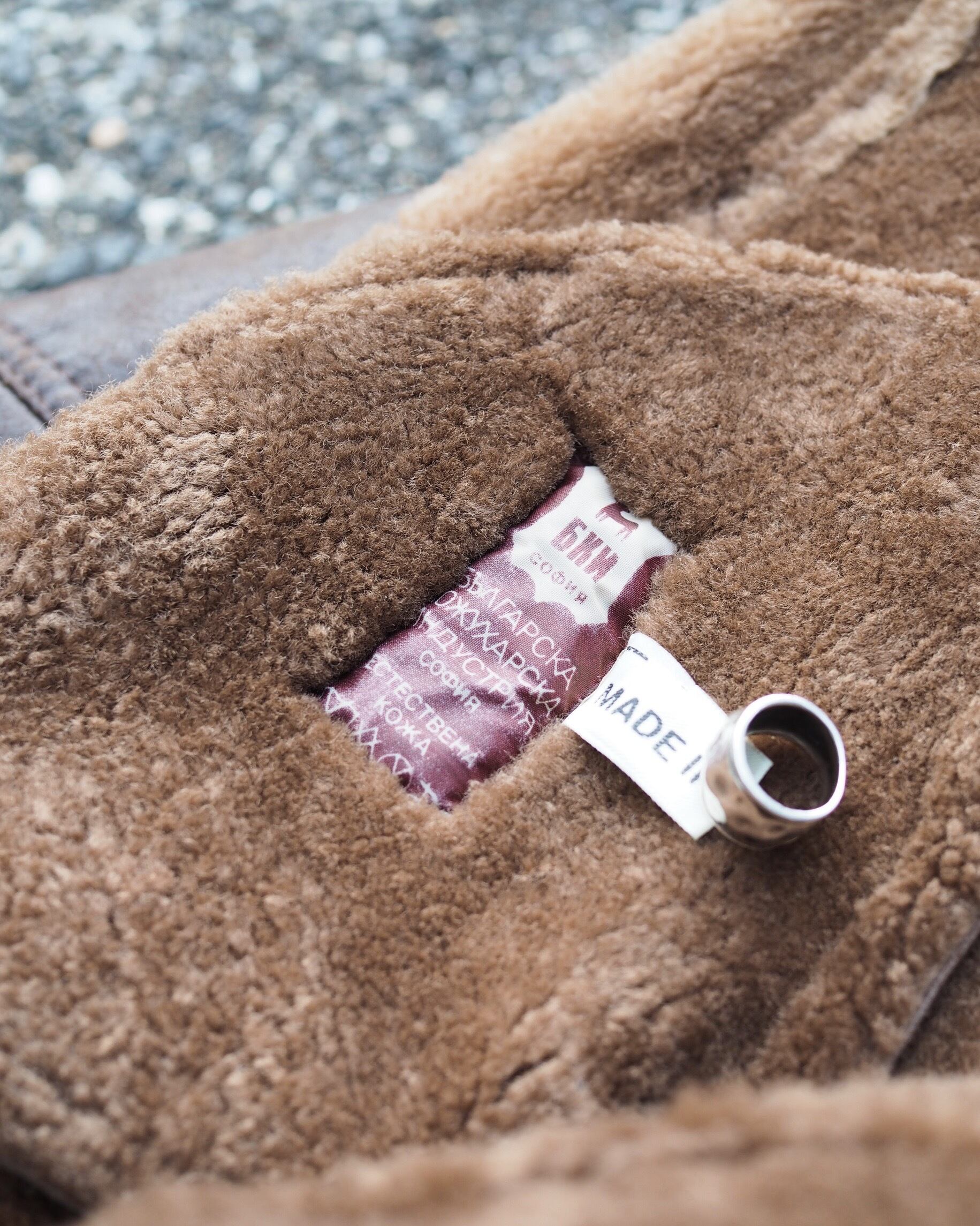 ブルガリアメイドの個体で、程よいエイジングがかかった状態の良いリアルレザー、裏地はモコモコリアルファーで、気分が上がるミドル丈