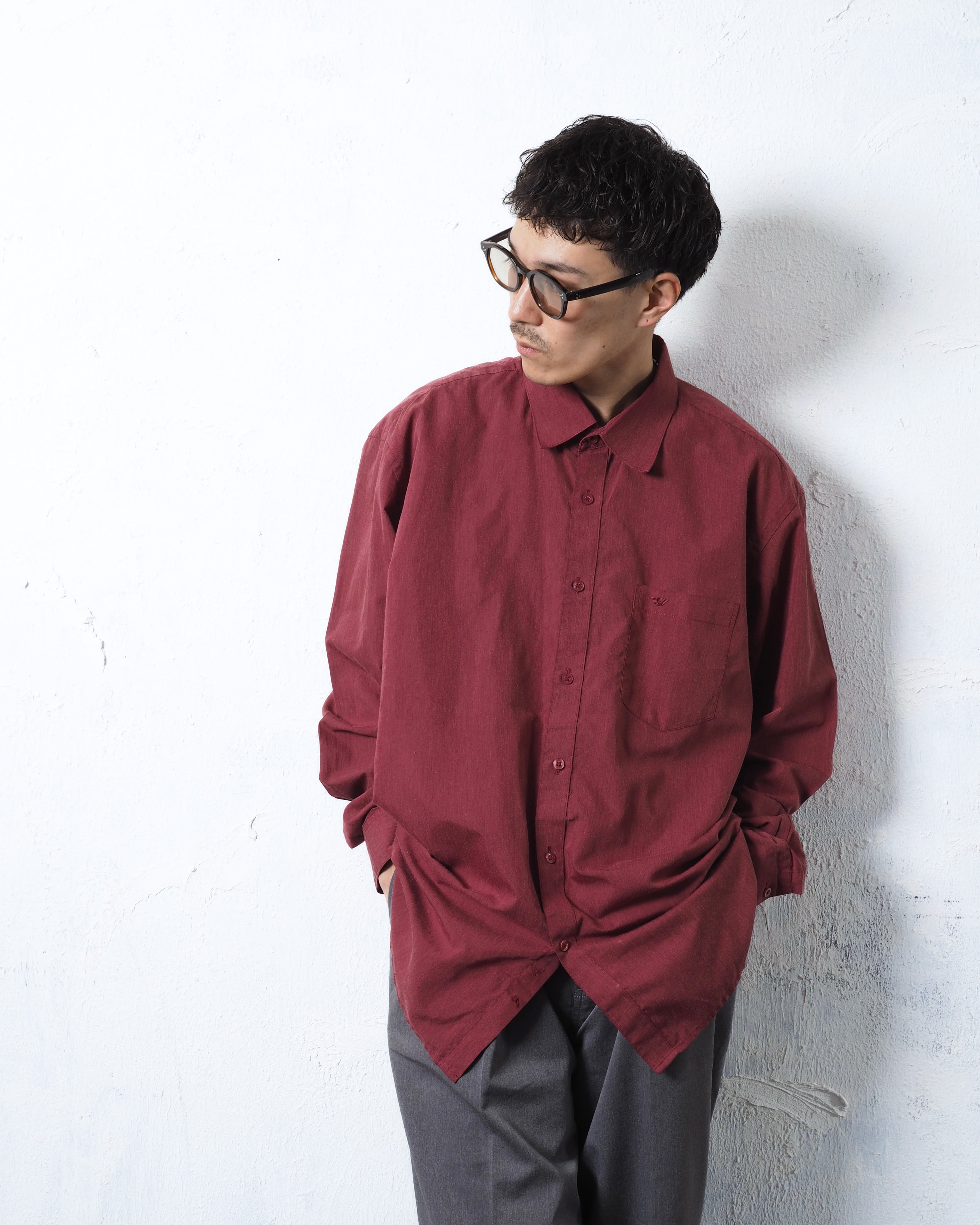 ジョルジオアルマーニから深みのあるワインレッドに加えて絣デザインの一枚