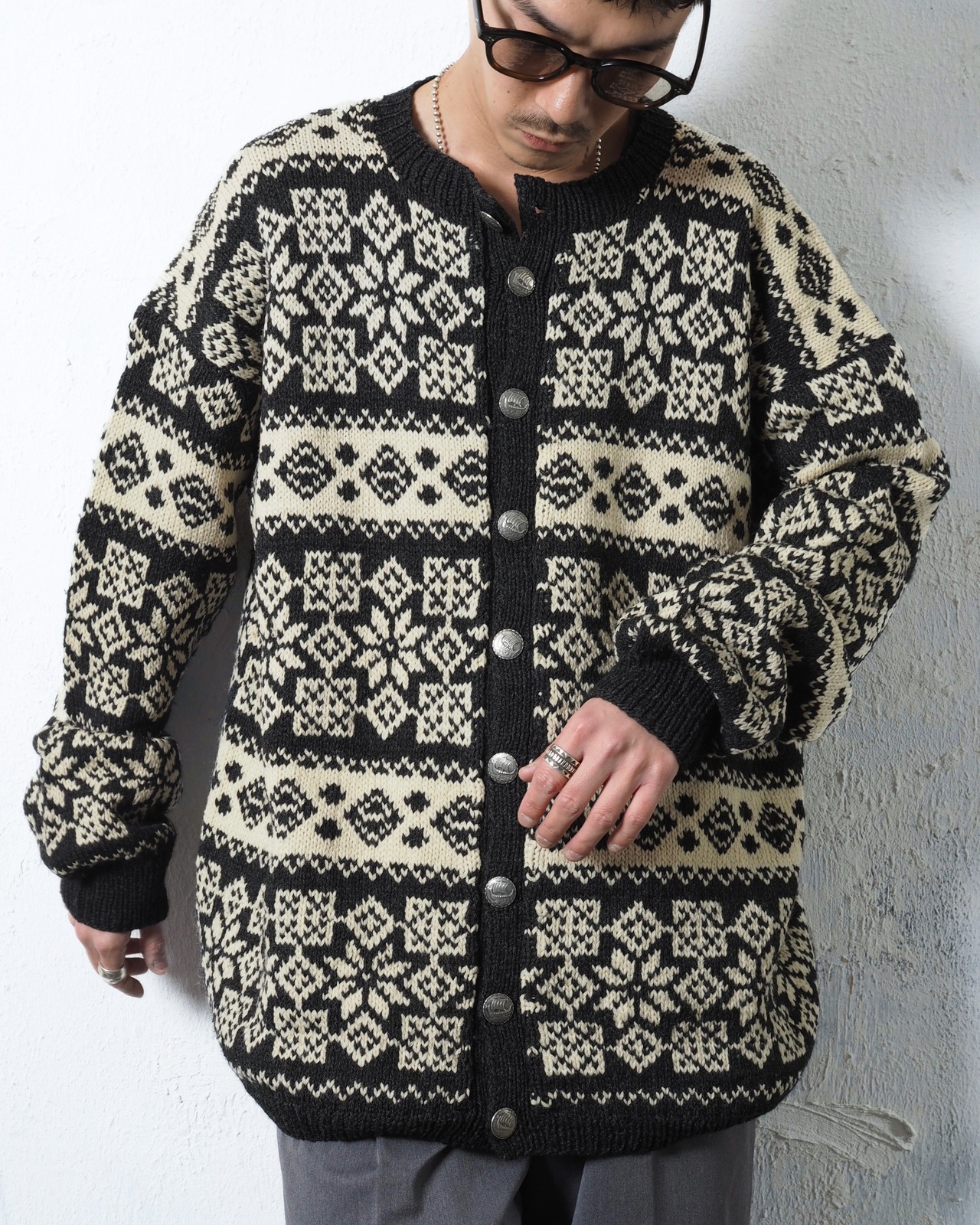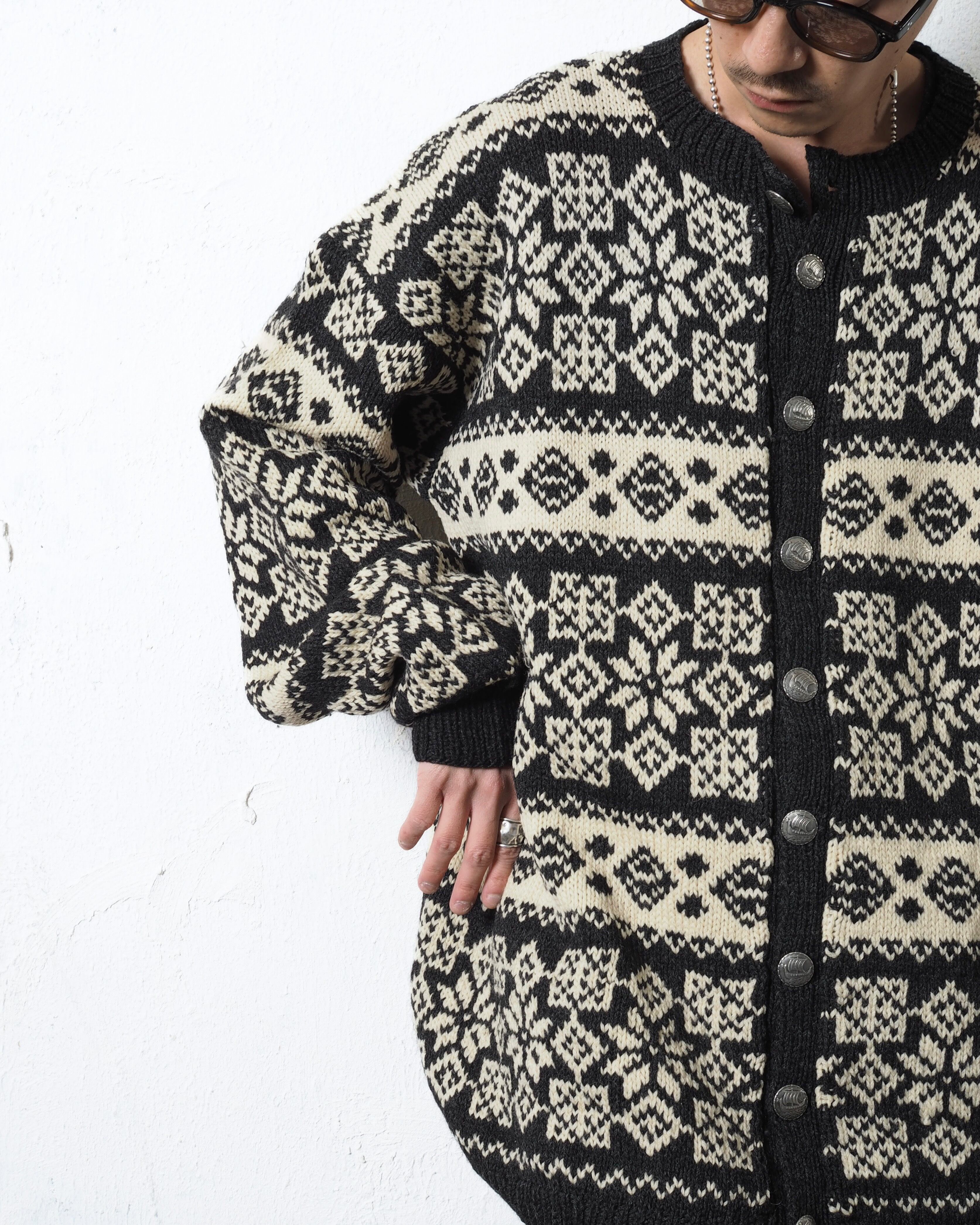Nordic Pattern Hand Knit Tyrolean Cardigan