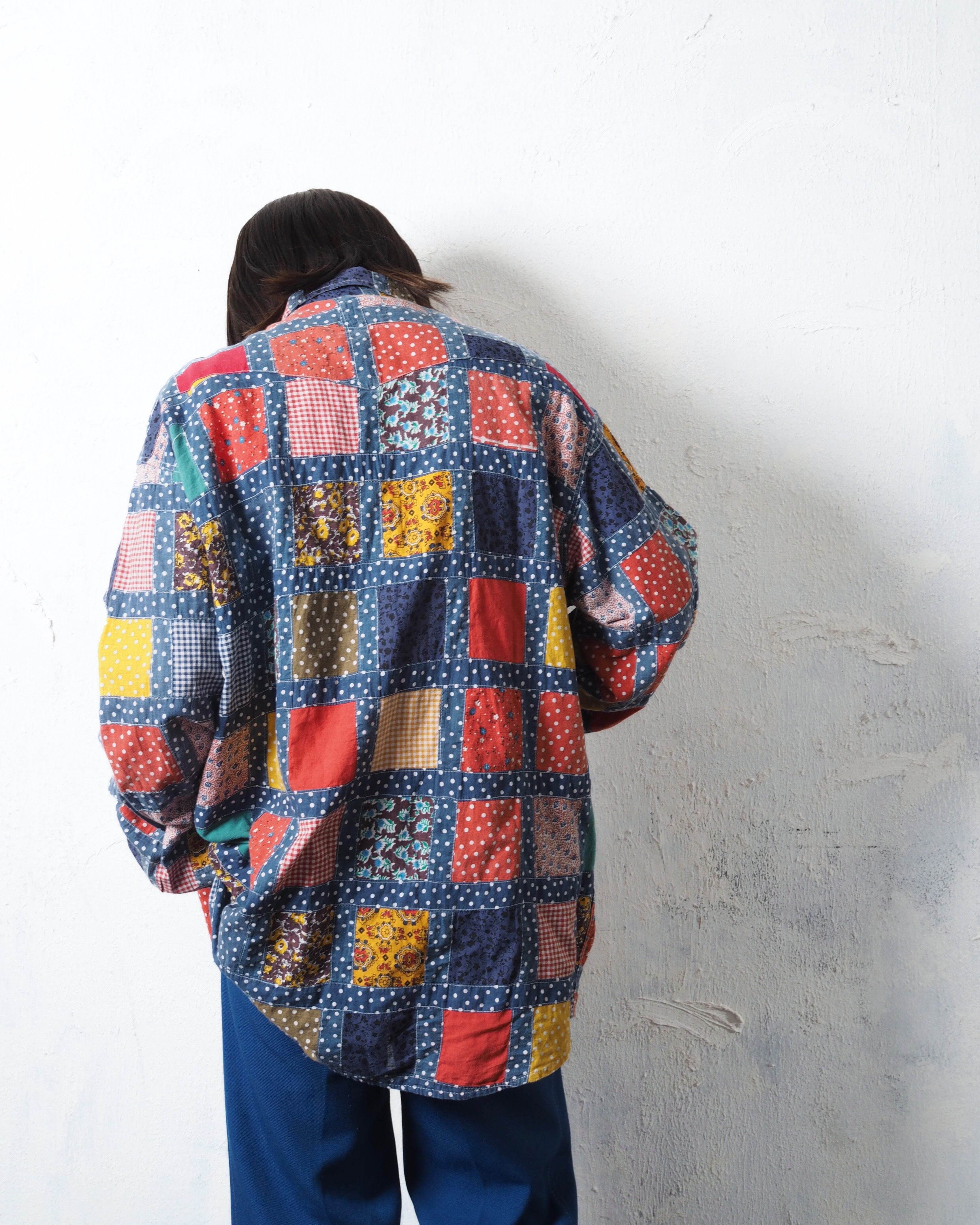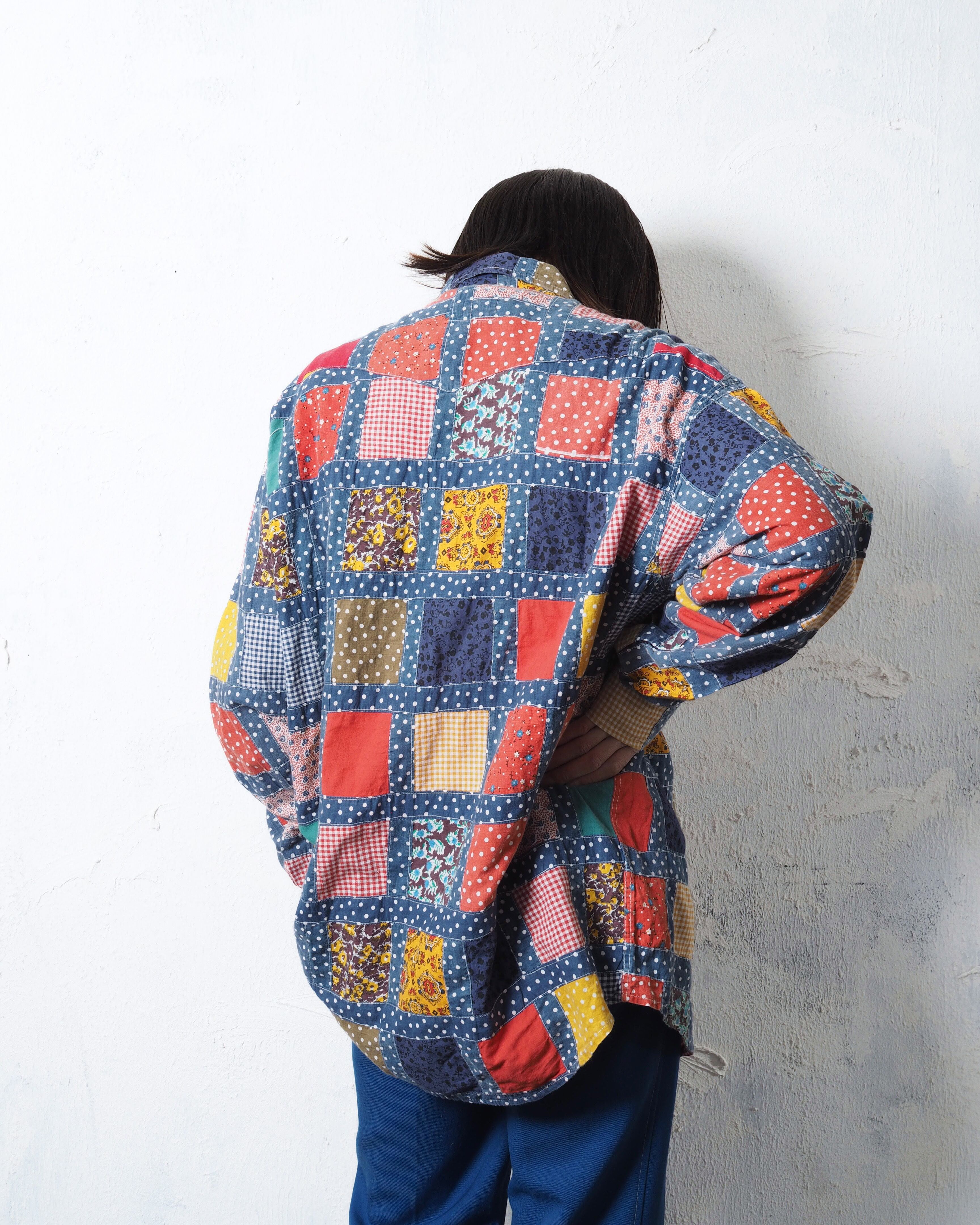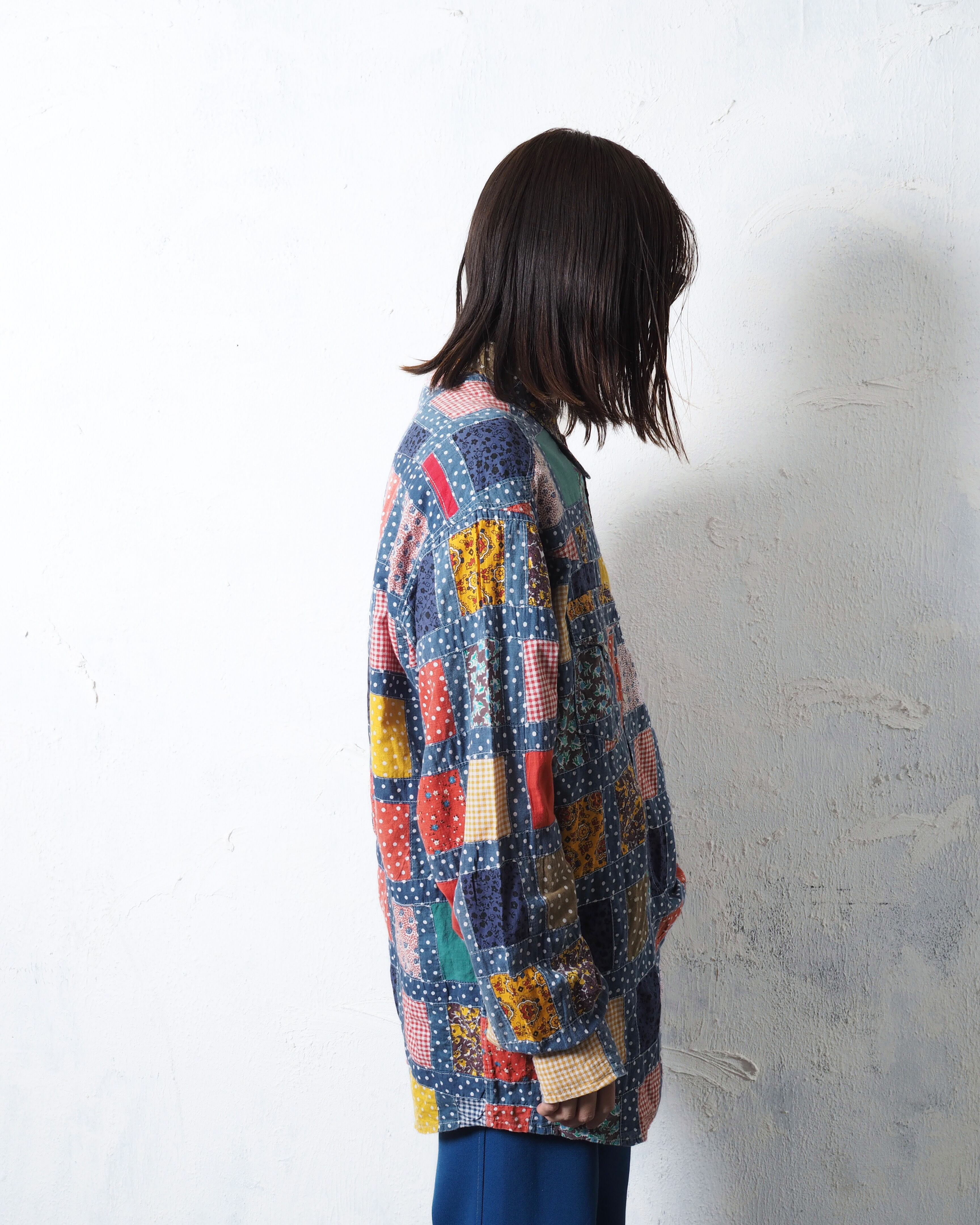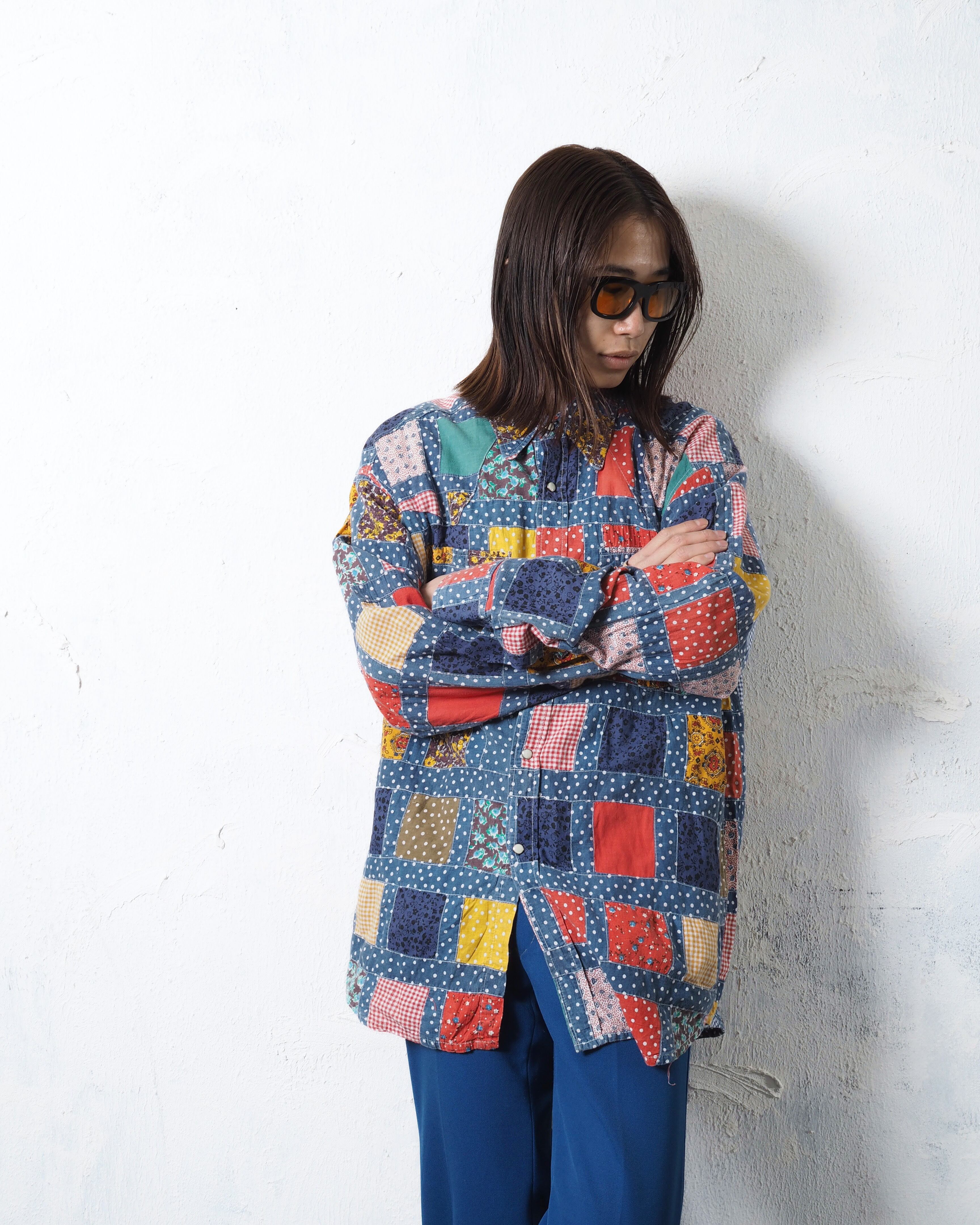 70年代頃のアイテムで、襟やシルエットは時代ドストライクの作り、に加えてパッチワークなのもめちゃくちゃタイプ