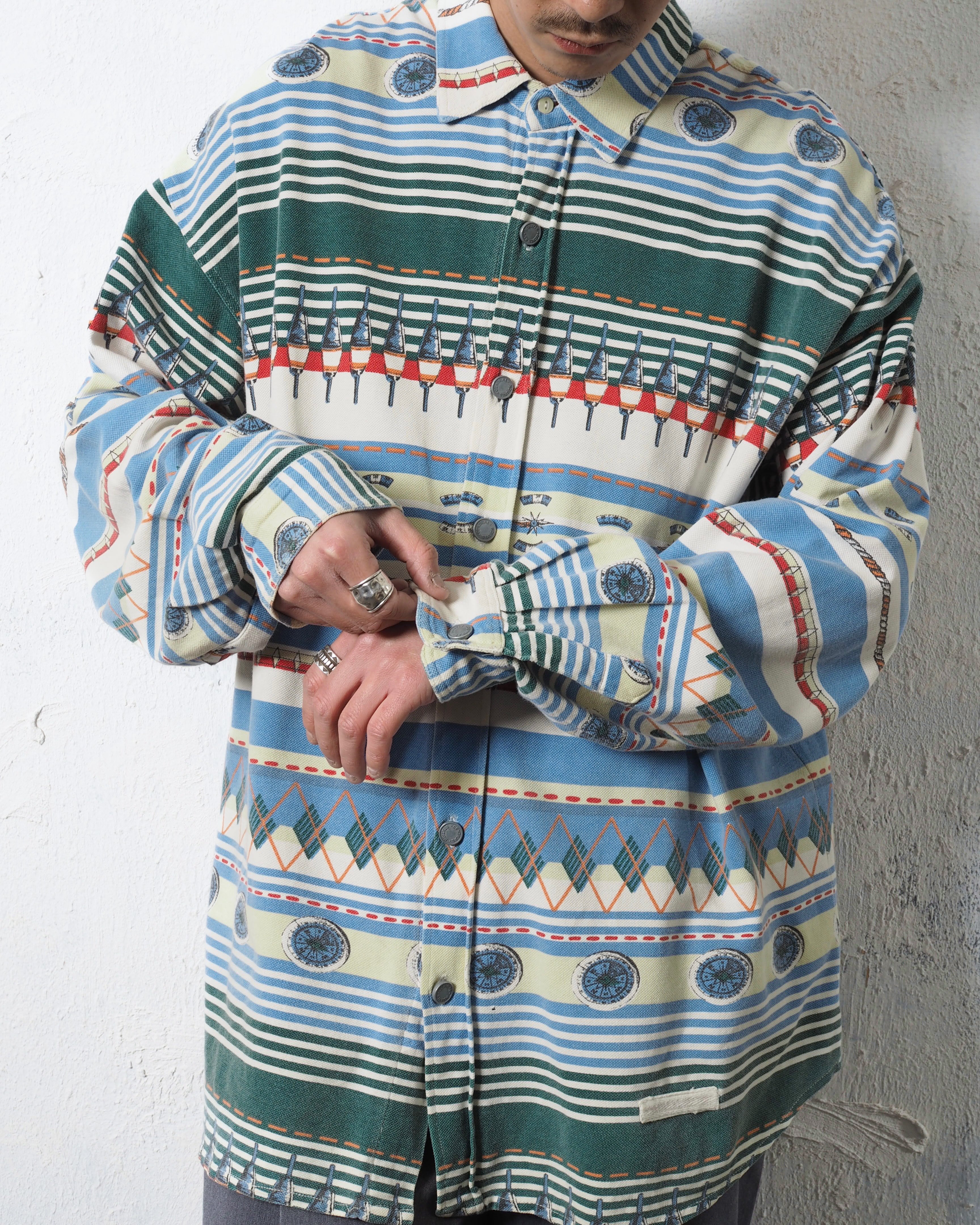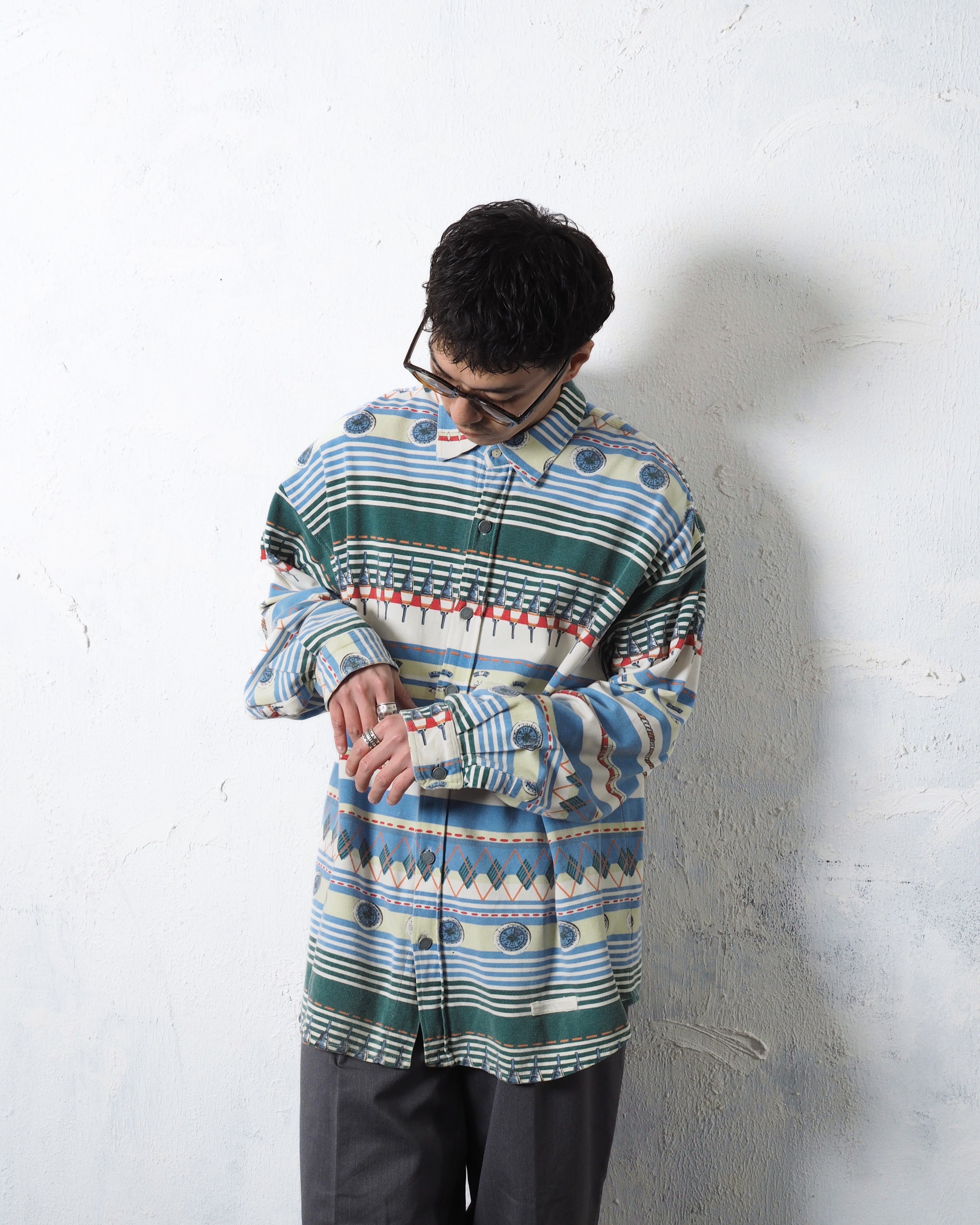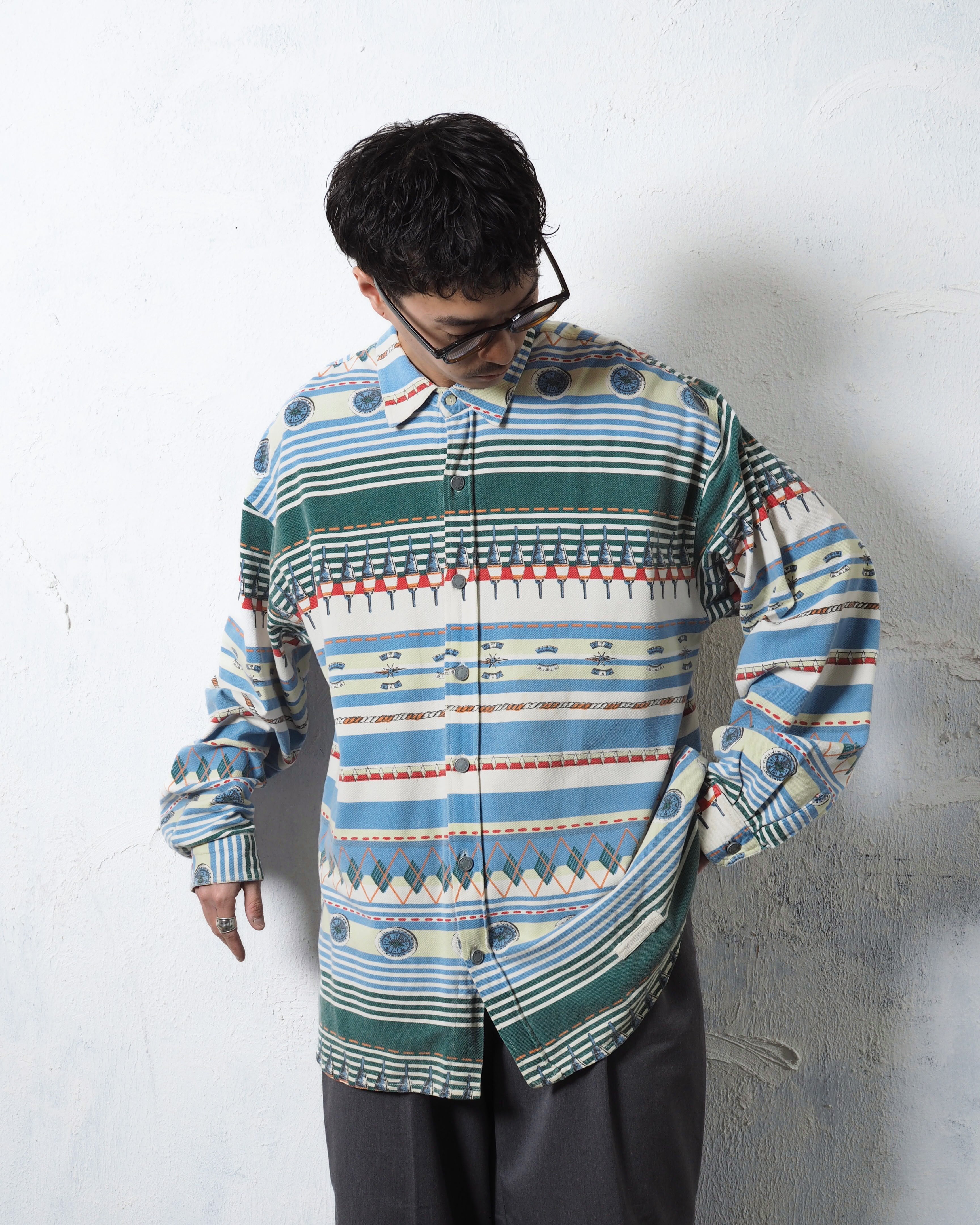 90s CENTRAL STATION Crazy Pattern Metal Button Shirts