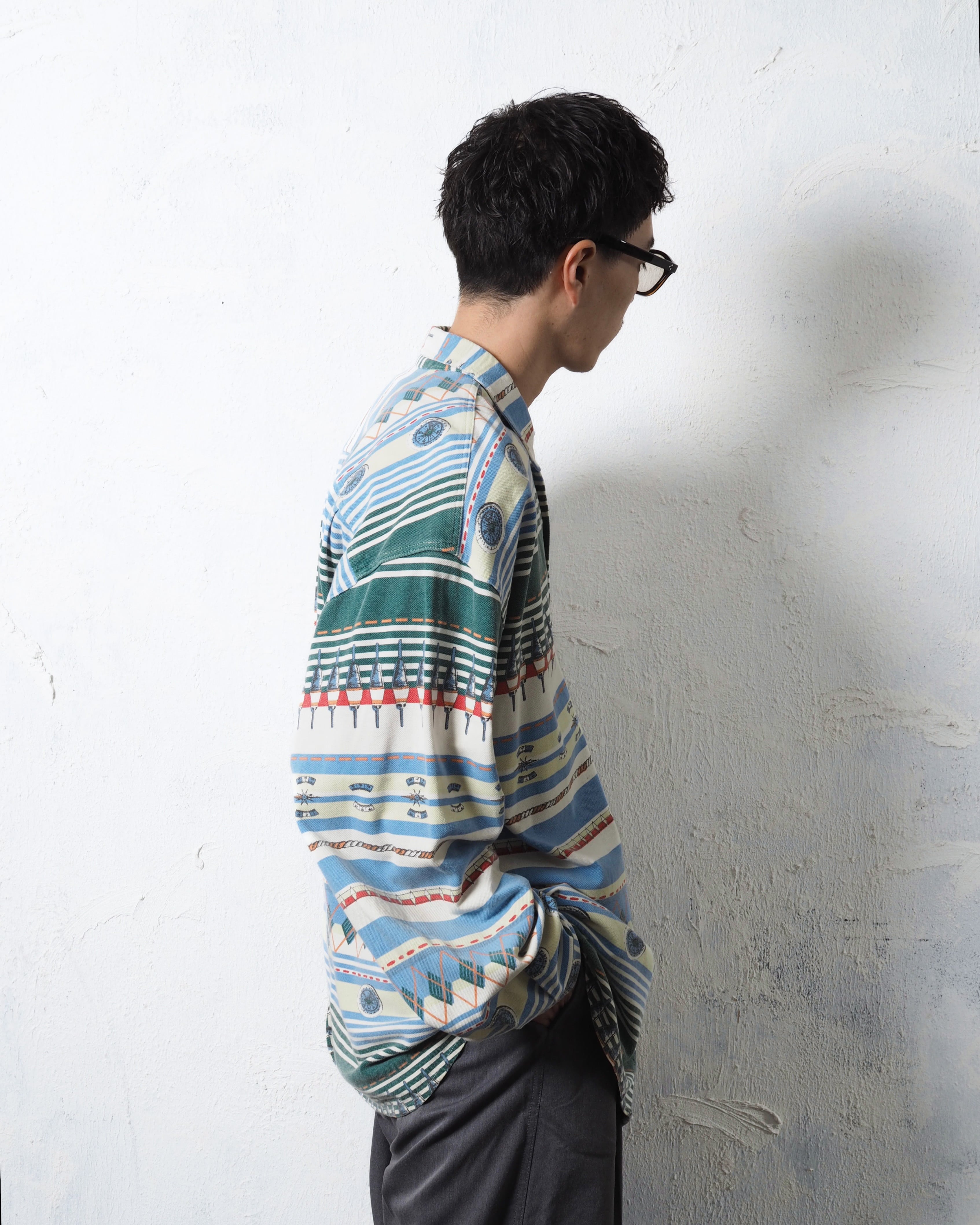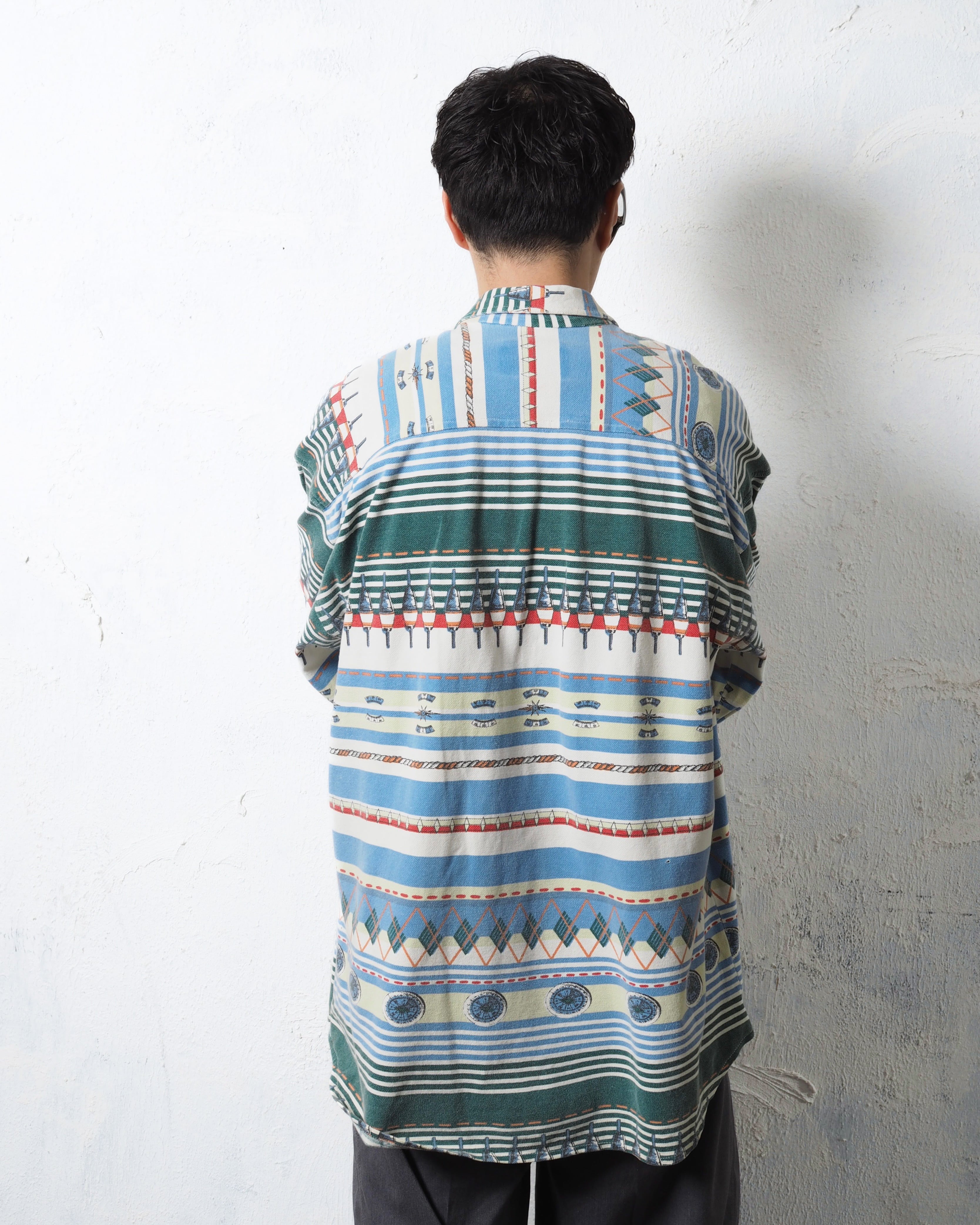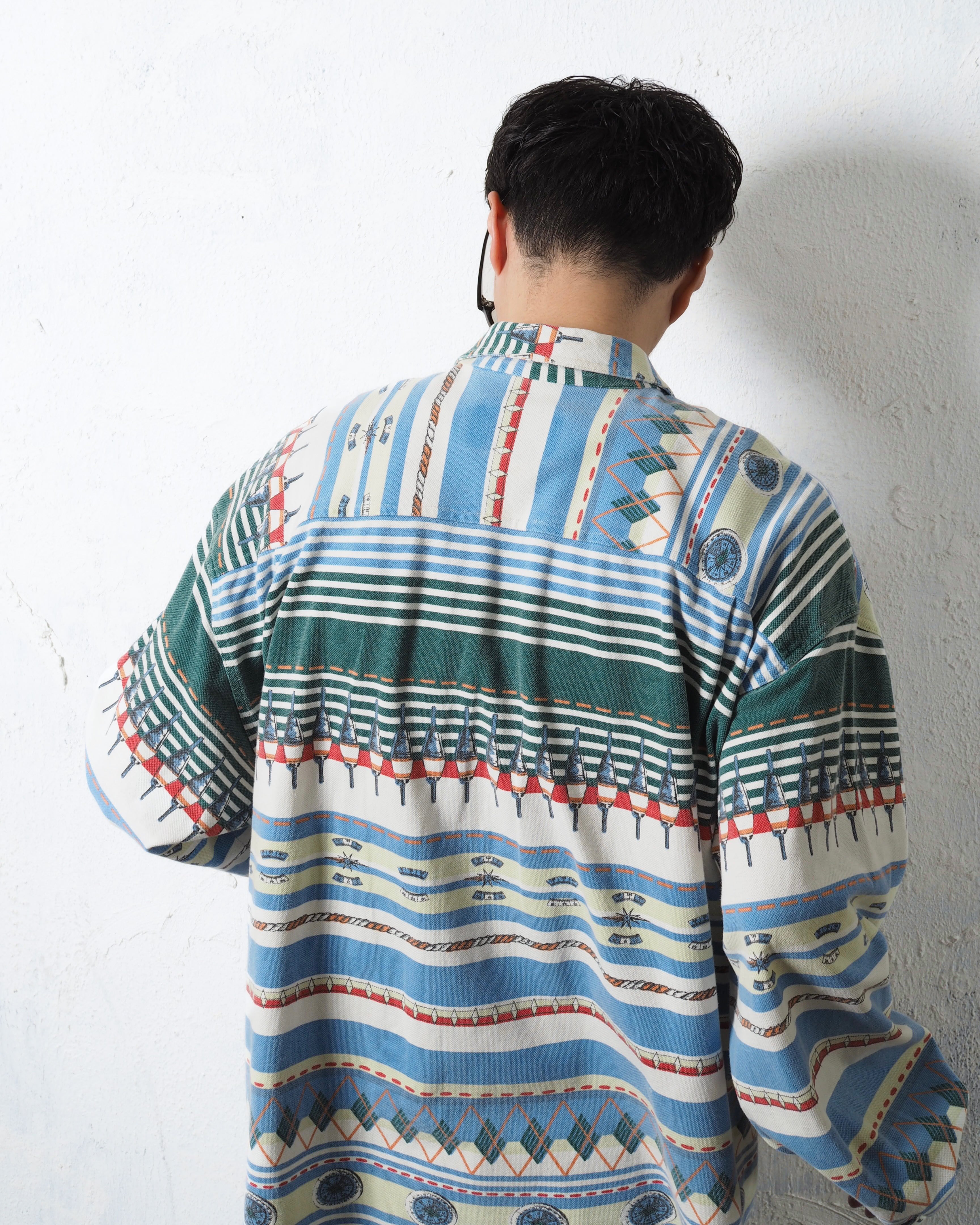 90s CENTRAL STATION Crazy Pattern Metal Button Shirts