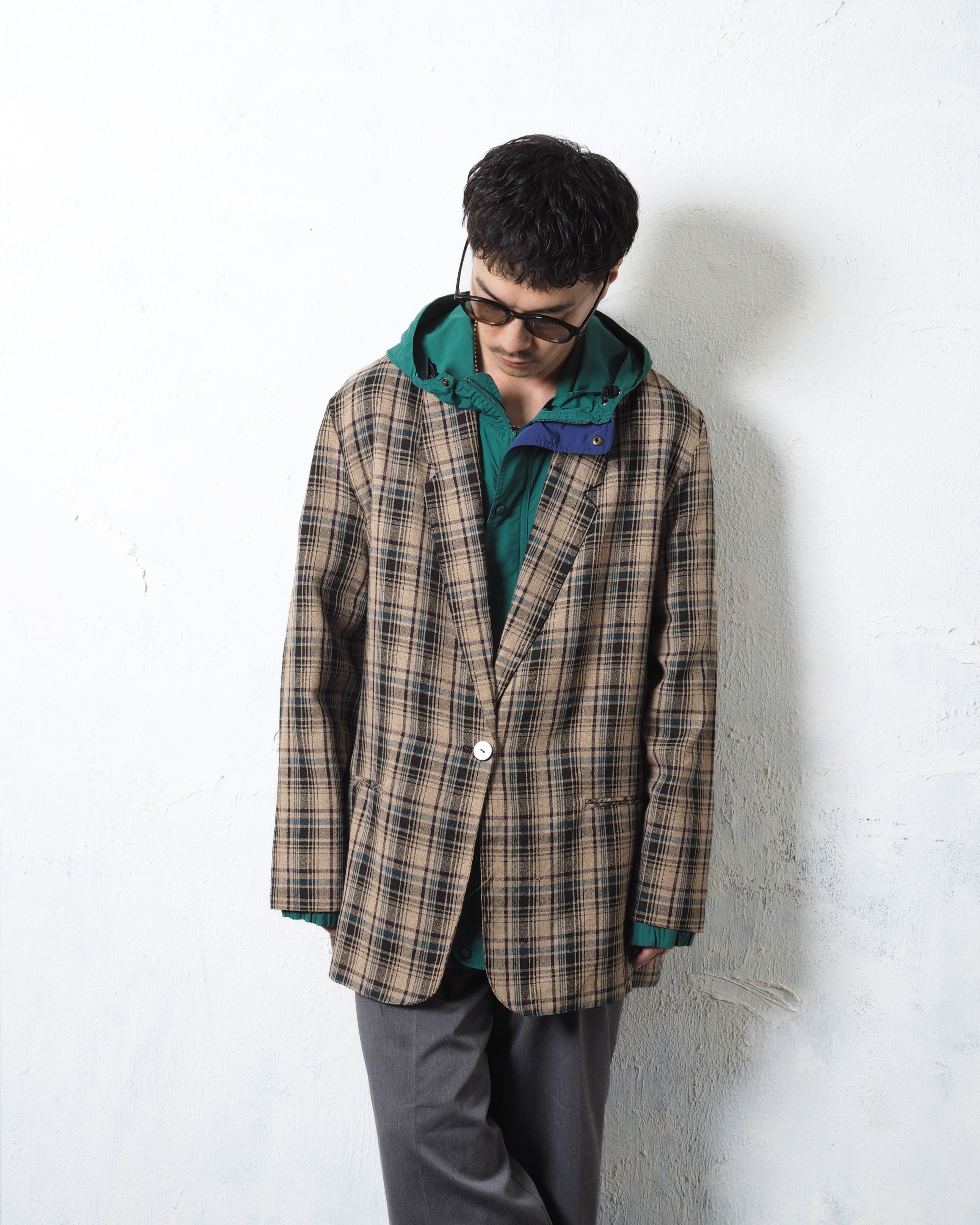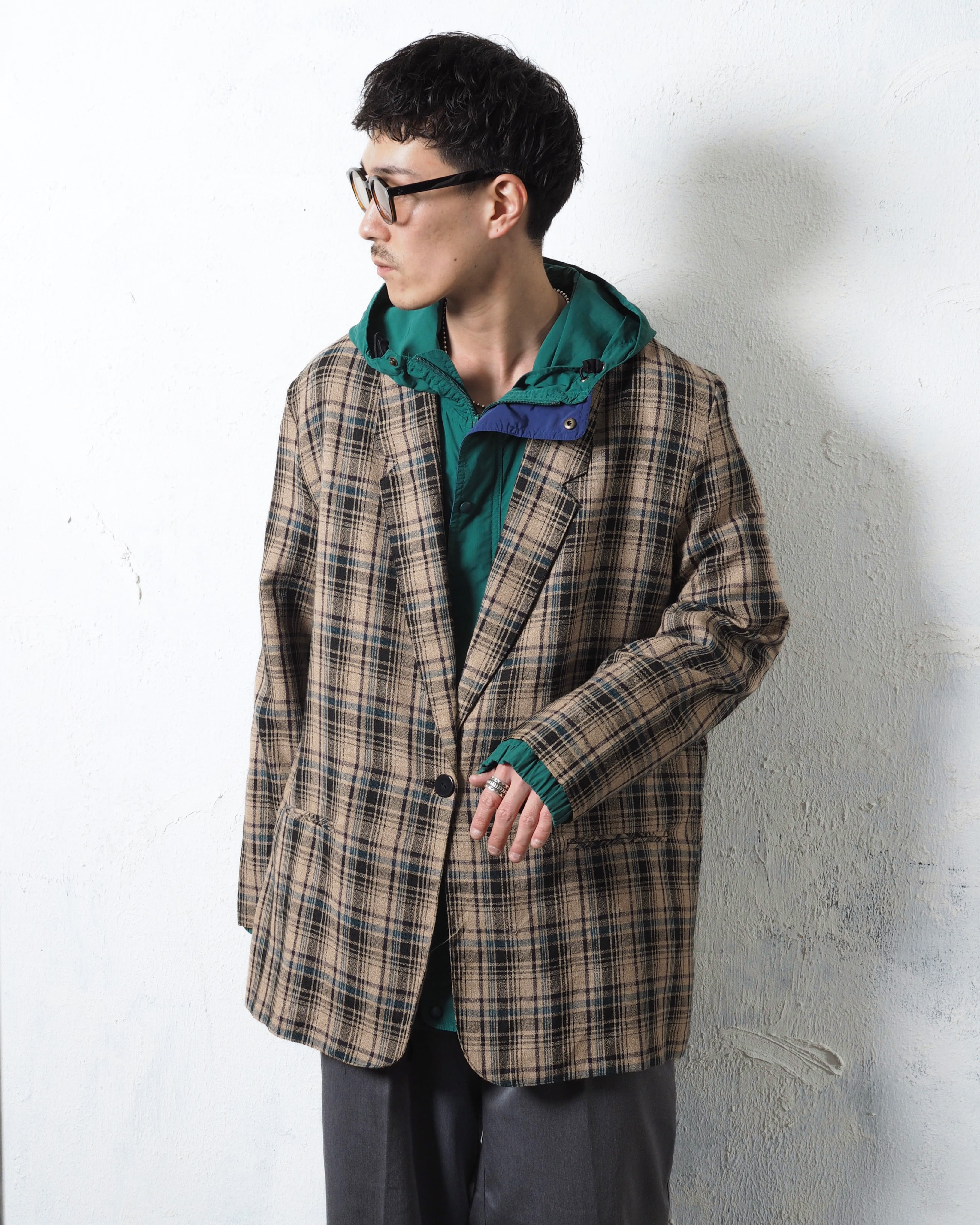 春に向けて一発目、ポリレーヨンのチェックイージーテーラードジャケット
