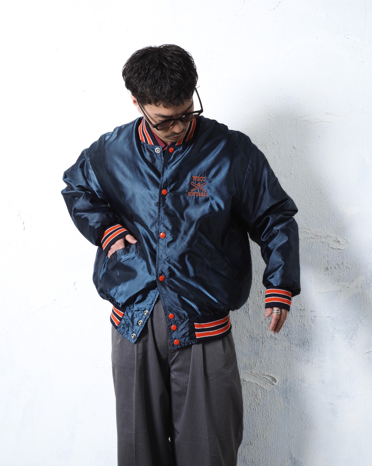 ナイロンサテン素材のスタジャン